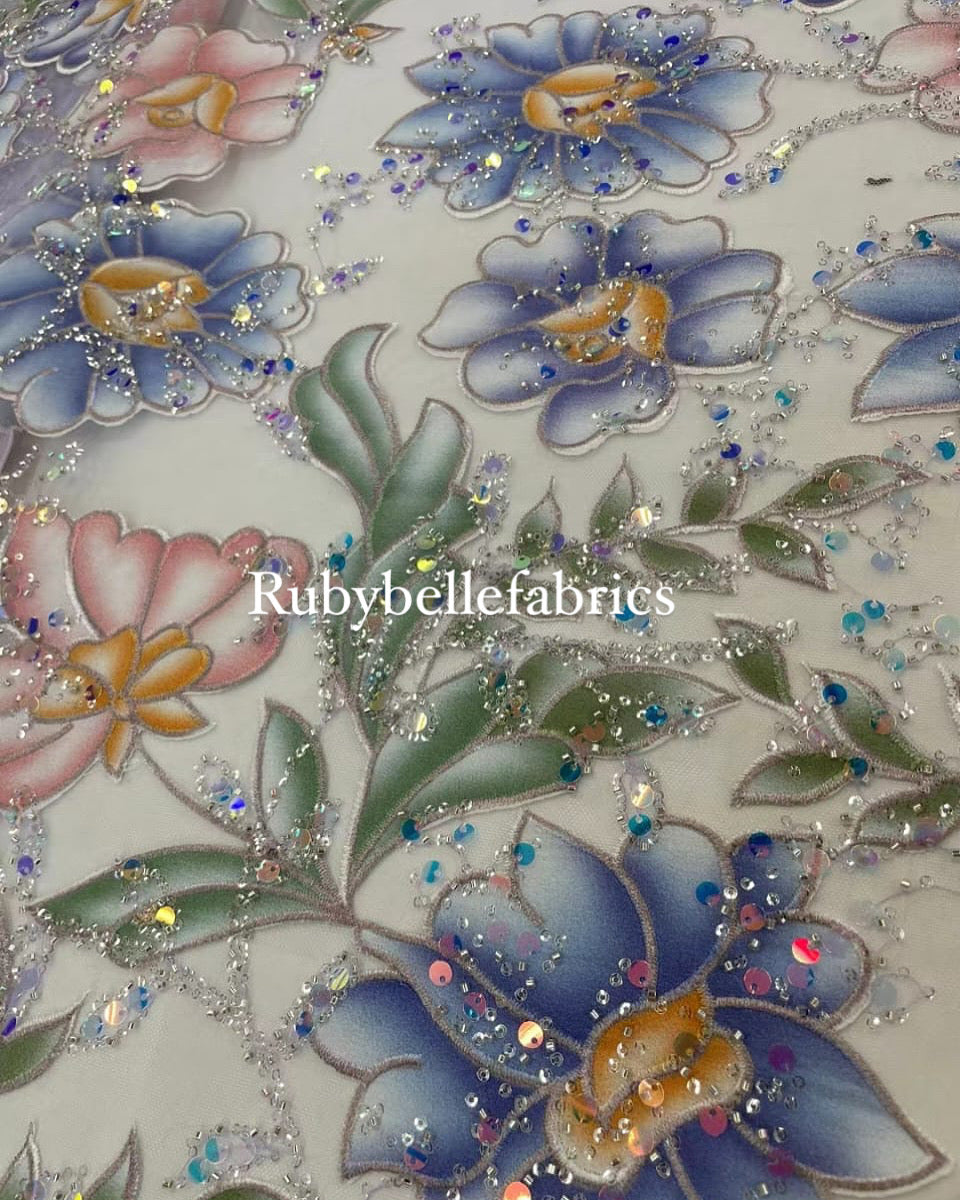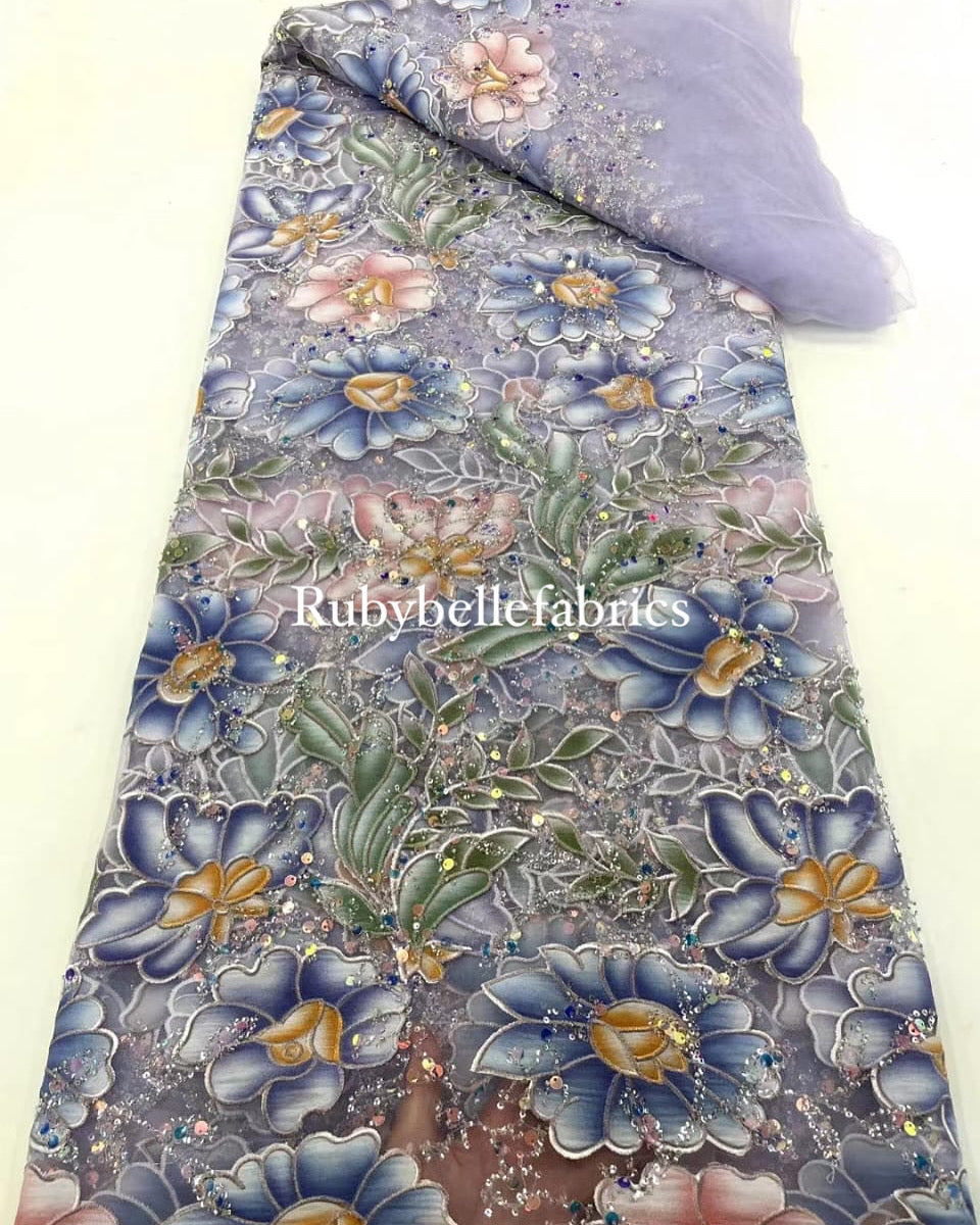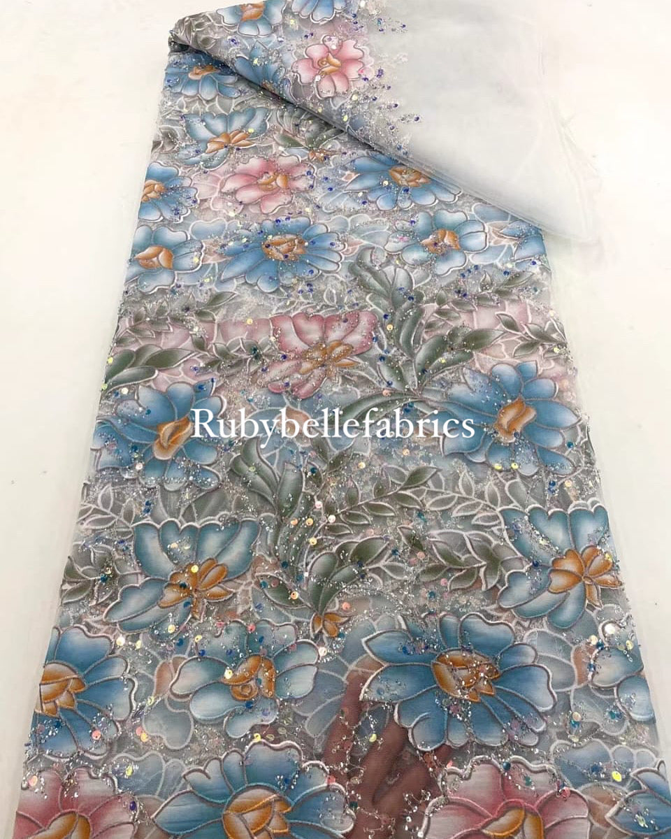 This high quality Fabric is measured in 5 Yards With Embroidered Beading and Sequin. It is soft, very delicate and beautiful.
