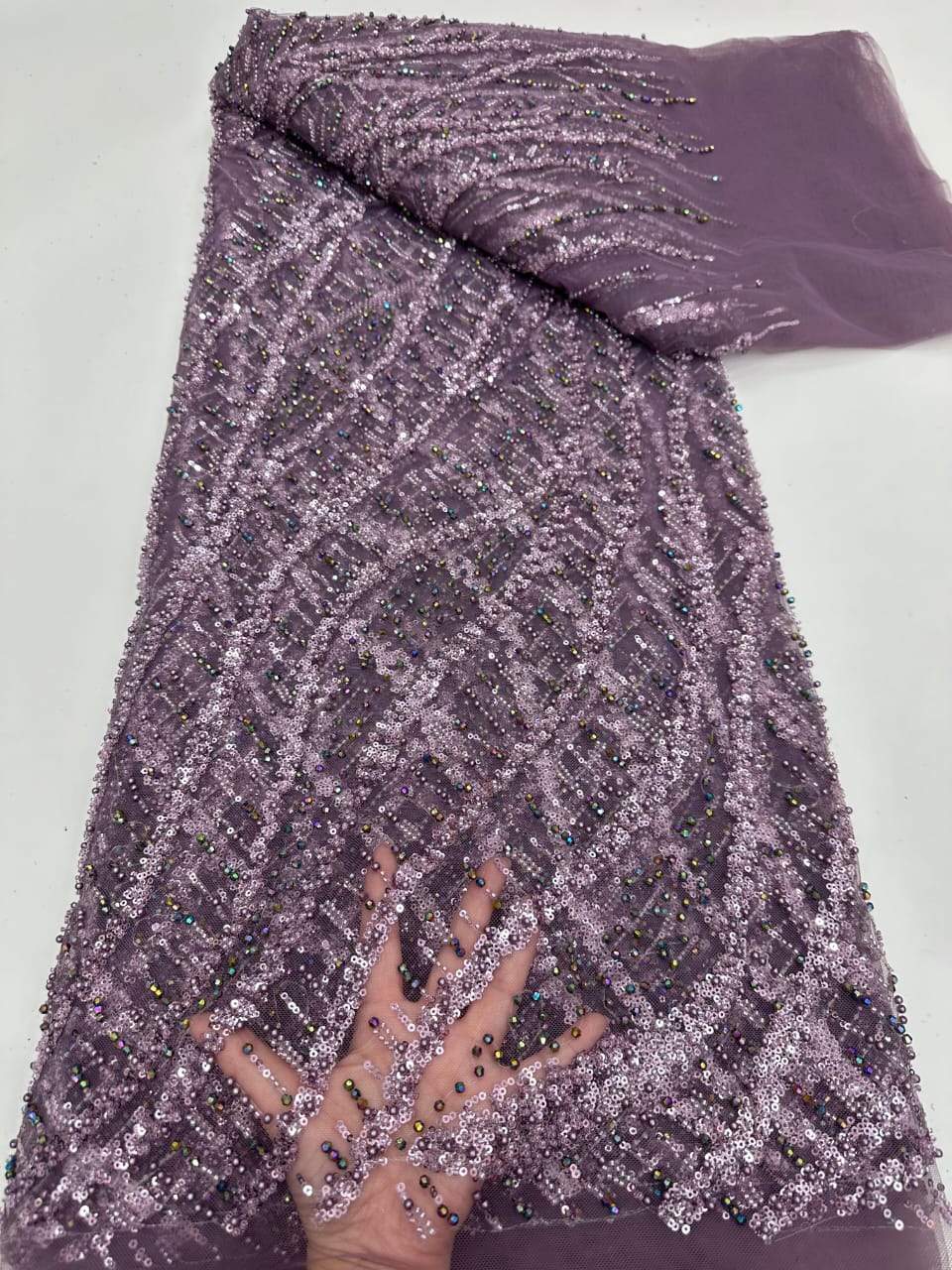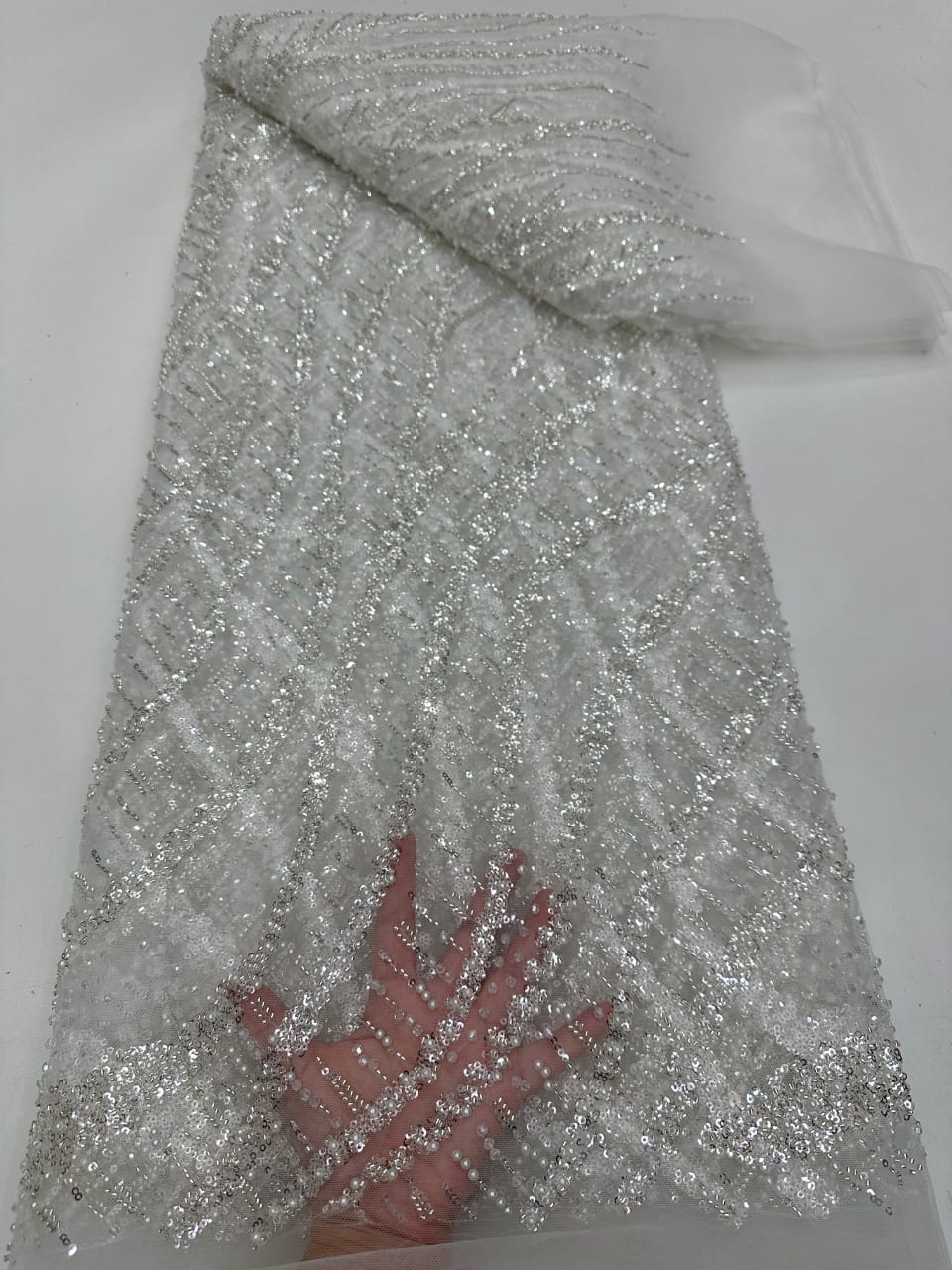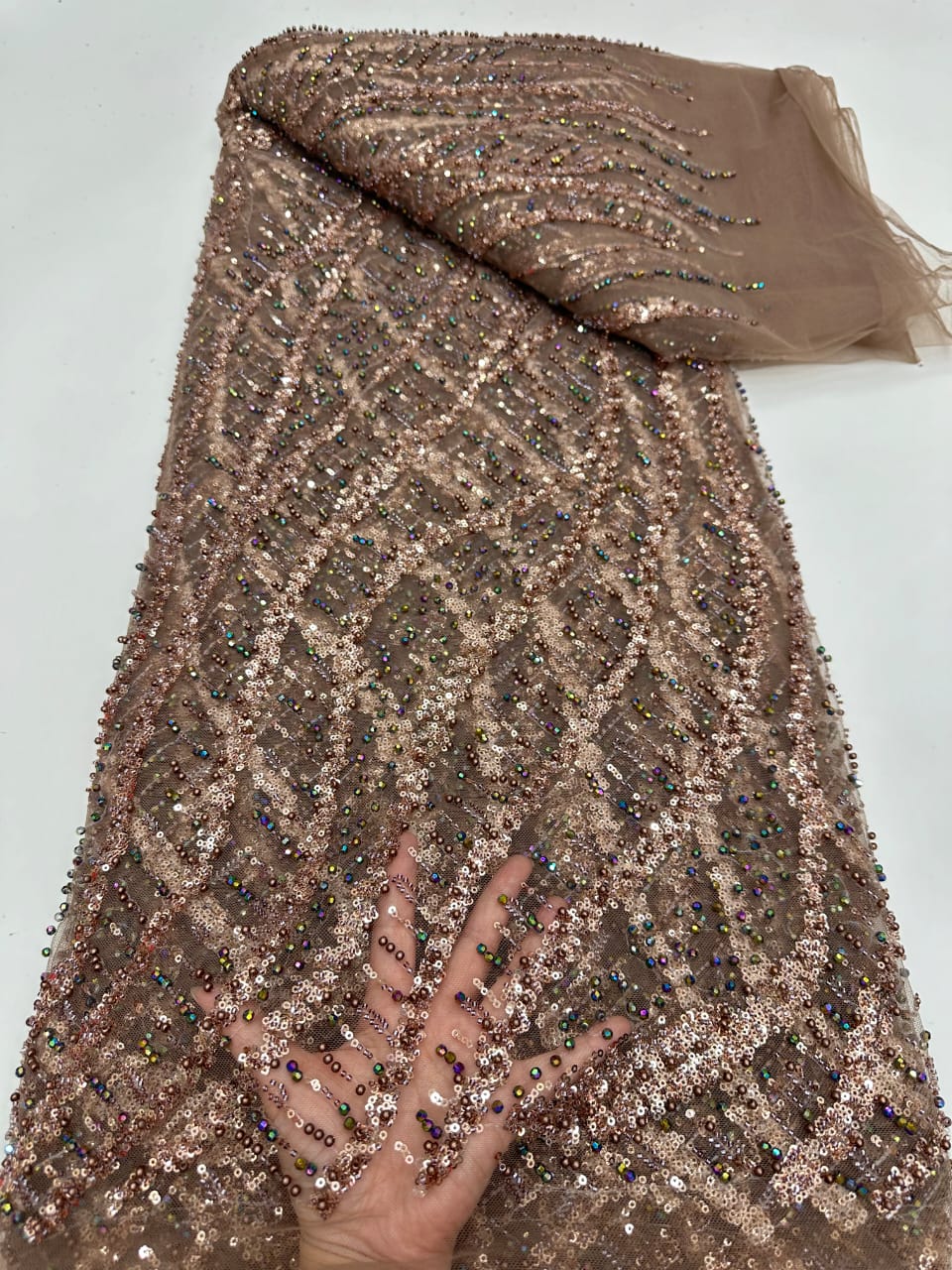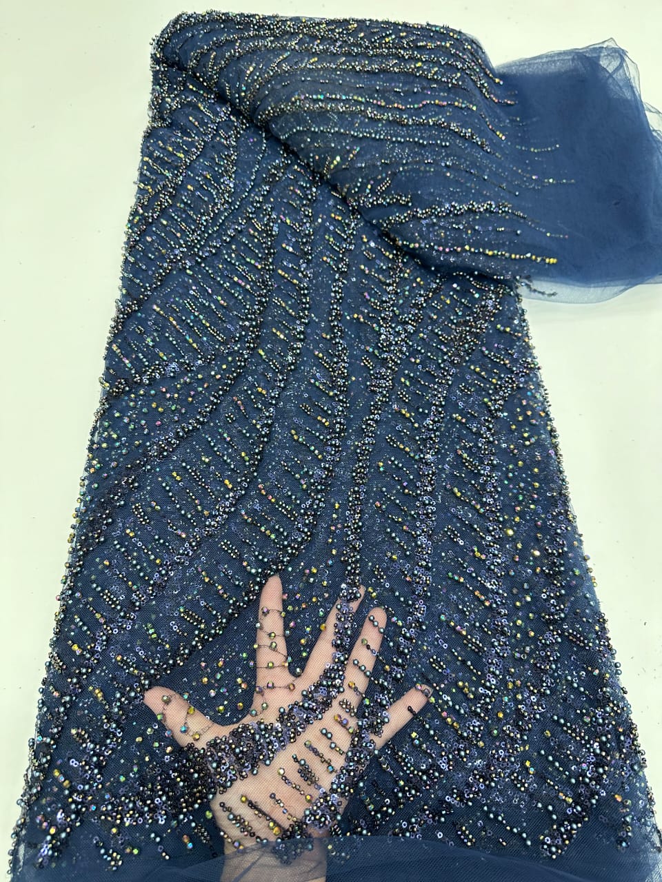 Esta tela de alta calidad se mide en 5 yardas con cuentas bordadas y lentejuelas. Es suave, muy delicado y bonito.
