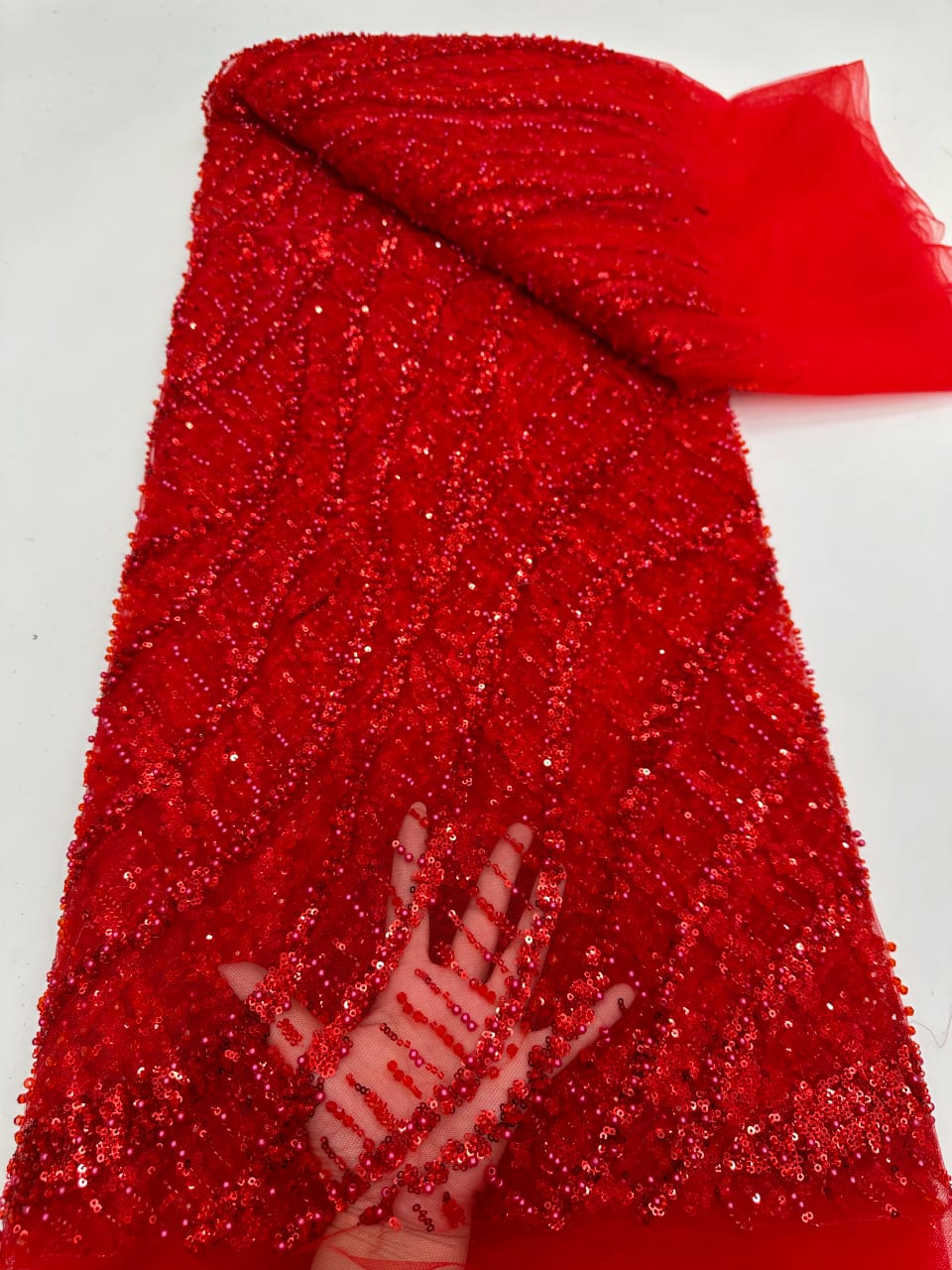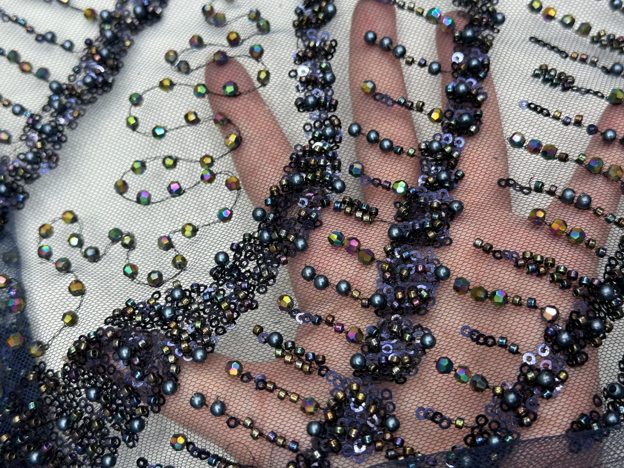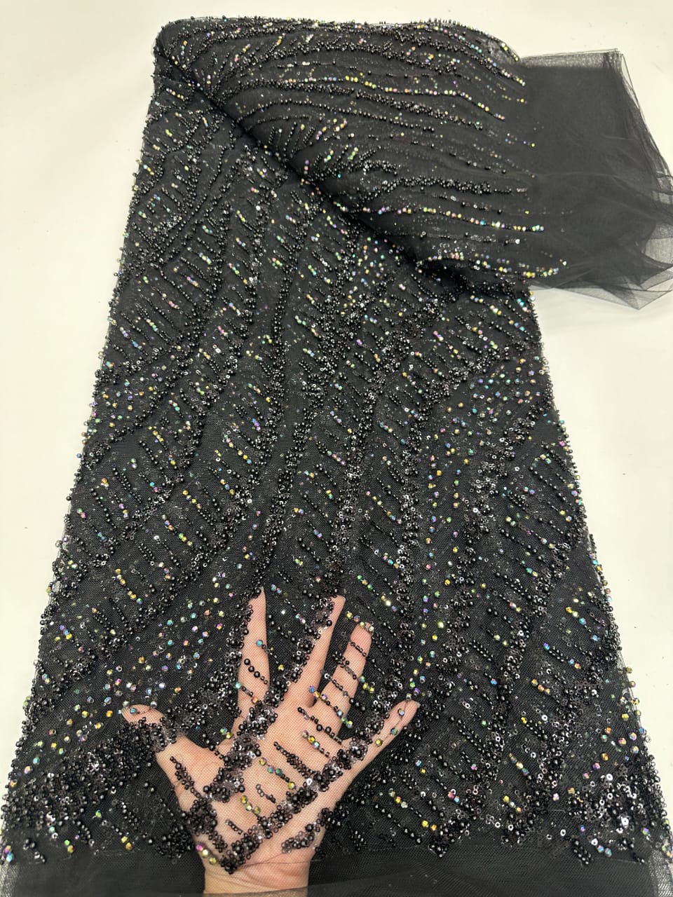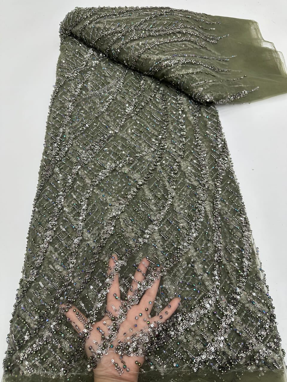 Esta tela de alta calidad se mide en 5 yardas con cuentas bordadas y lentejuelas. Es suave, muy delicado y bonito.