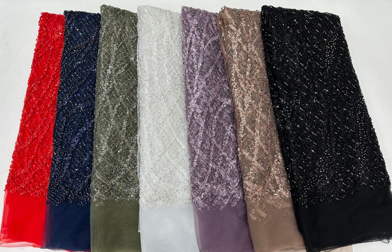 Esta tela de alta calidad está hecha con pedrería bordada a la moda y se puede usar para hacer vestidos de novia, faldas, chales, bufandas y otras prendas de moda que desee.