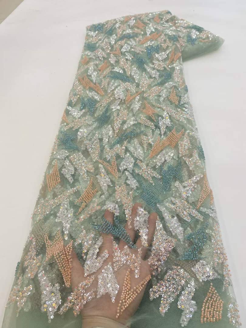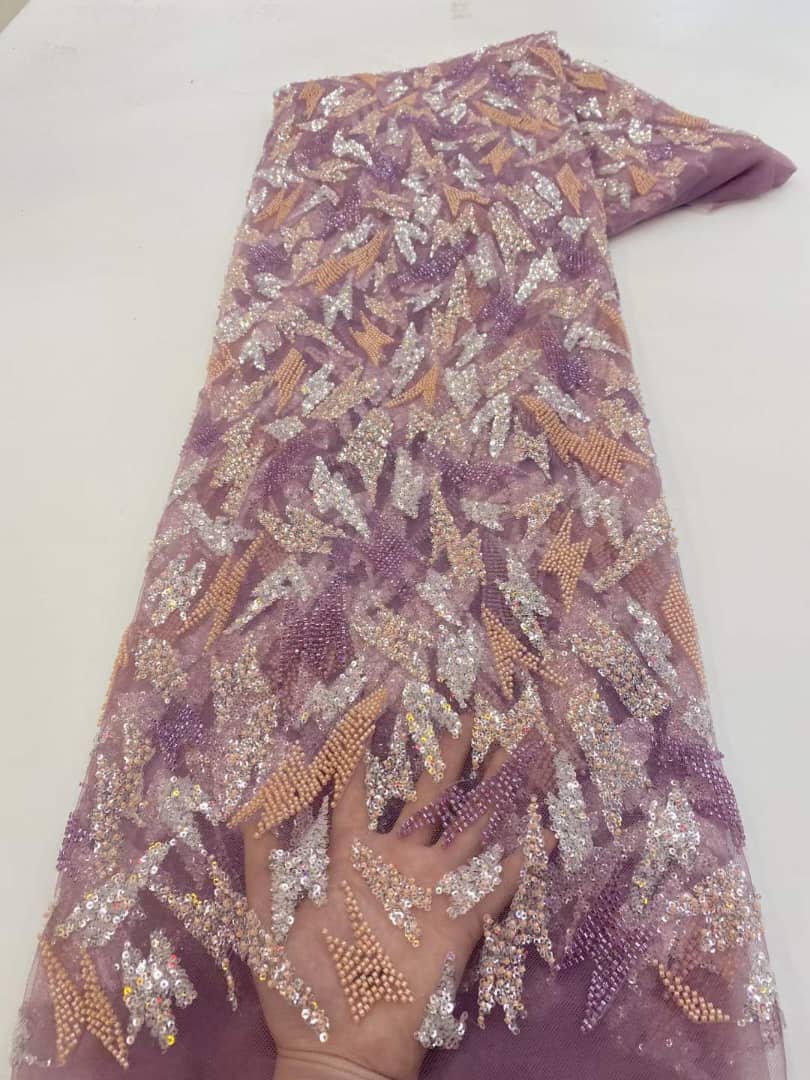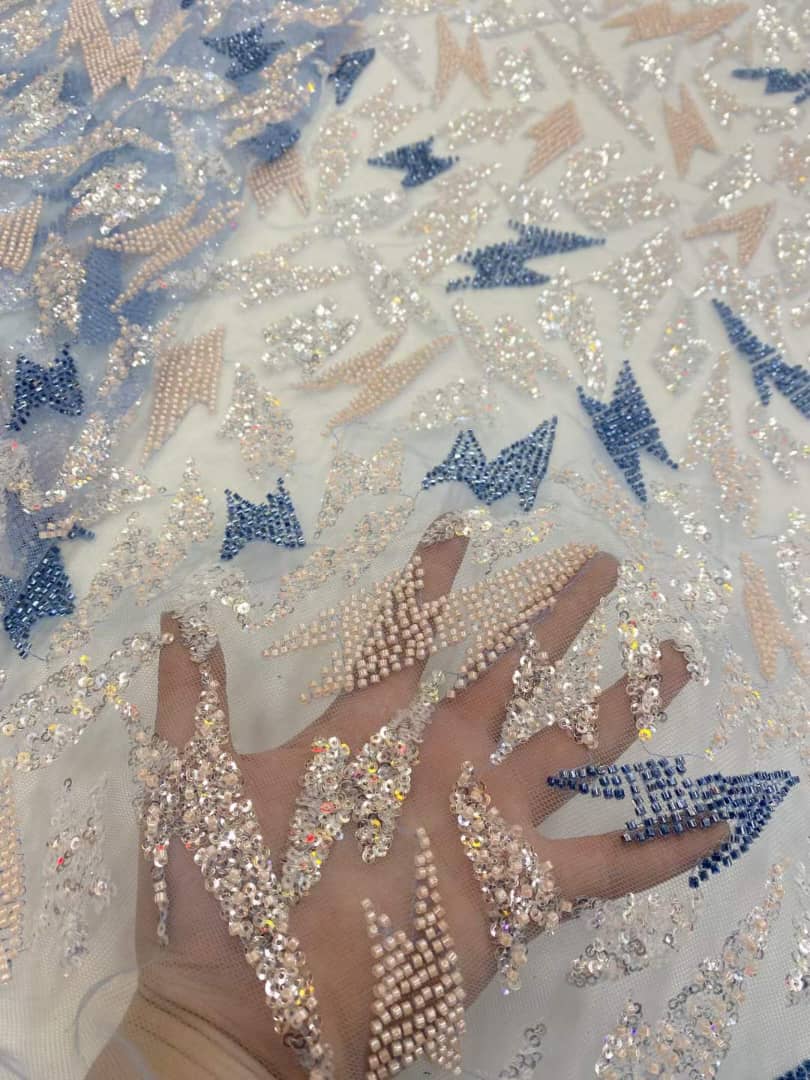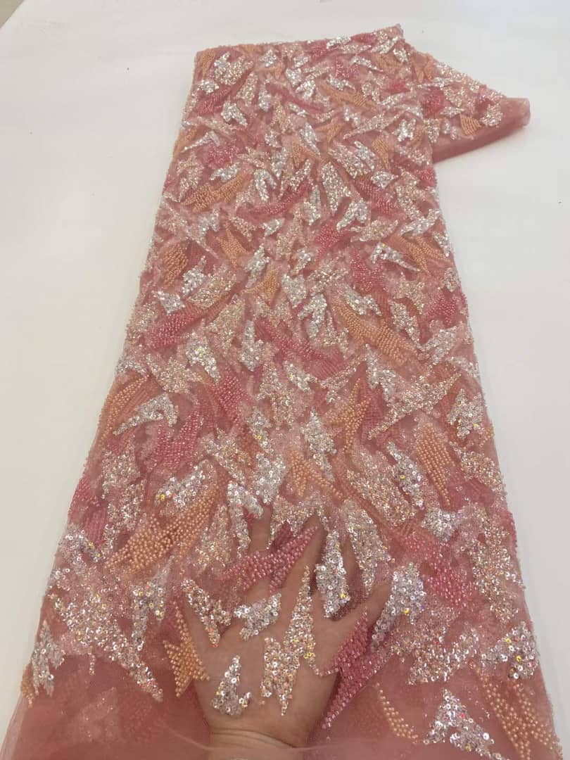 Esta tela de alta calidad se mide en 5 yardas con cuentas bordadas y lentejuelas. Es suave, muy delicado y bonito.