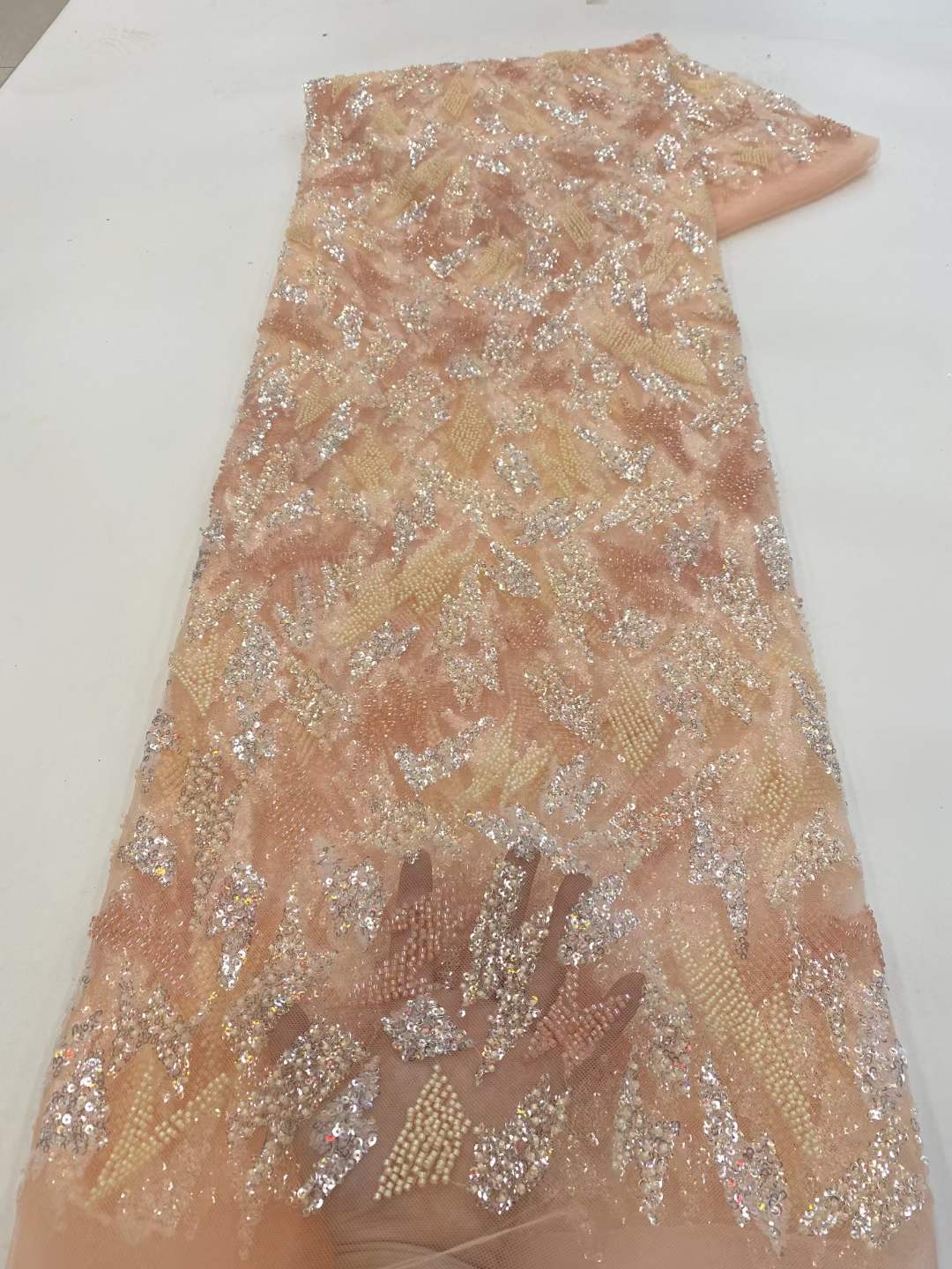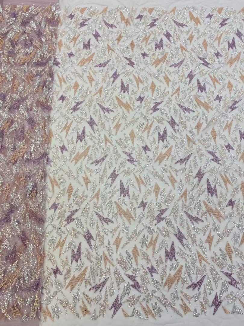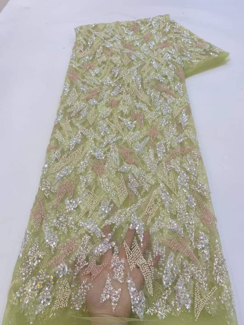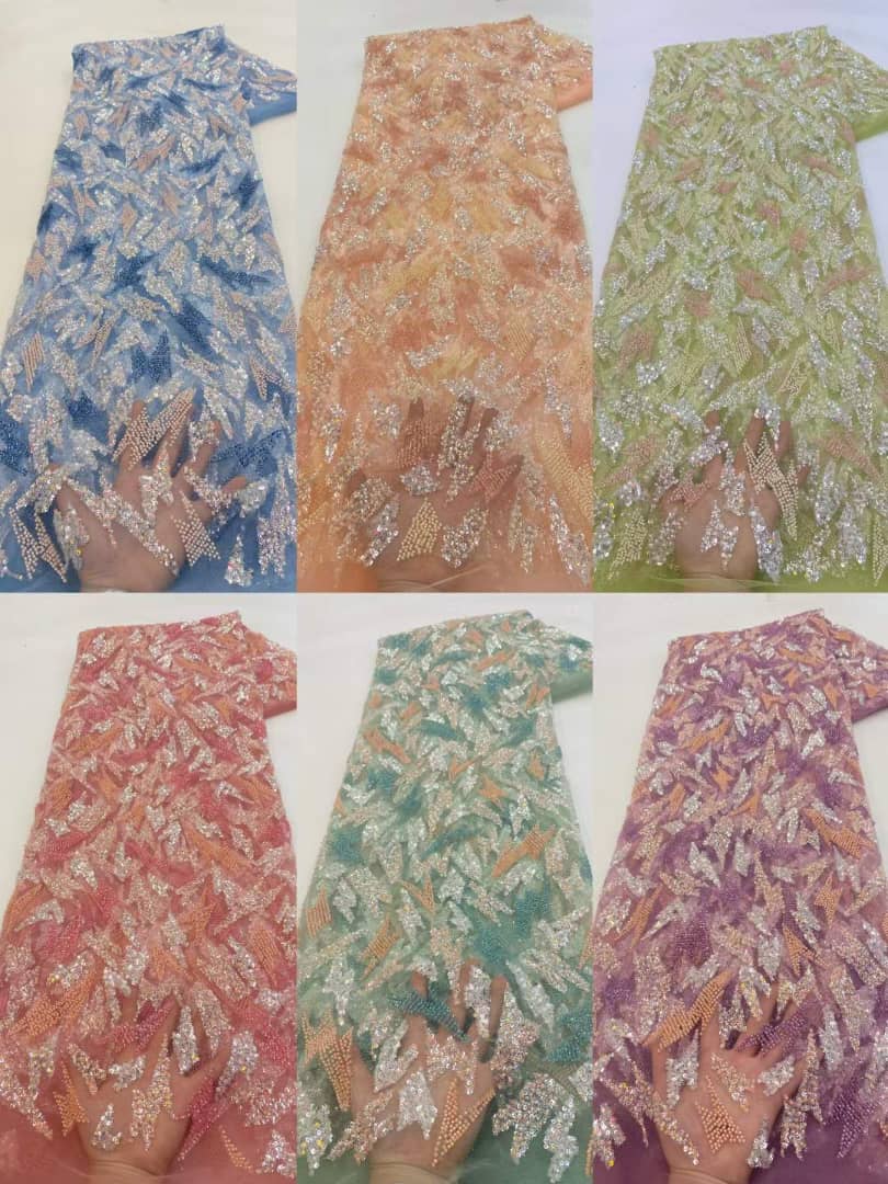Esta tela de alta calidad se mide en 5 yardas con cuentas bordadas y lentejuelas. Es suave, muy delicado y bonito.