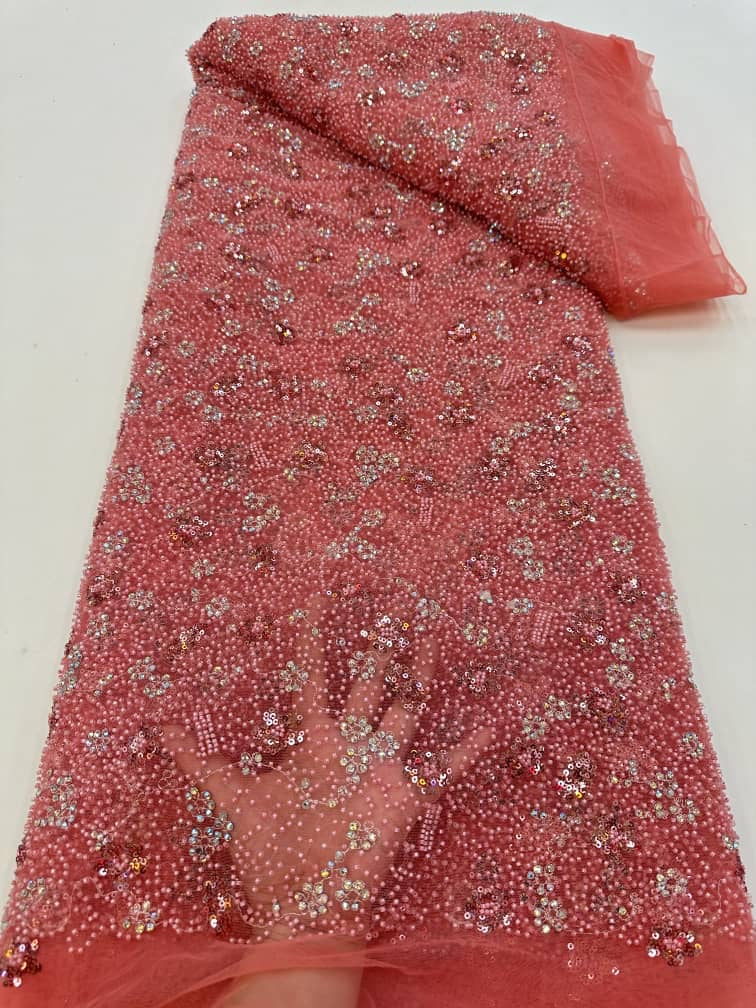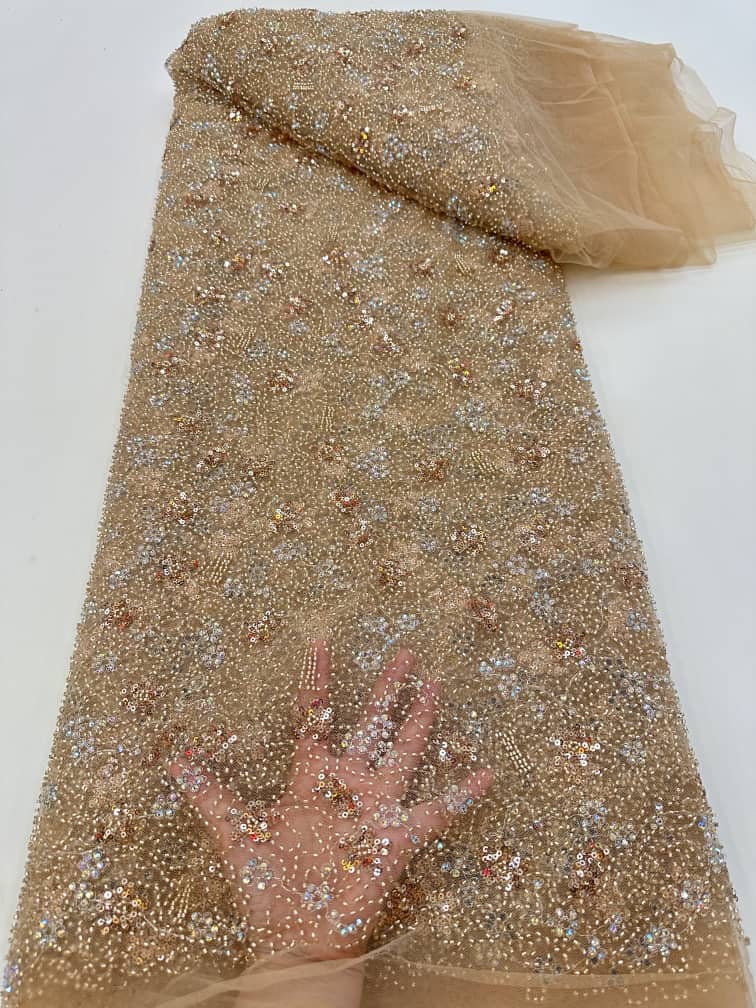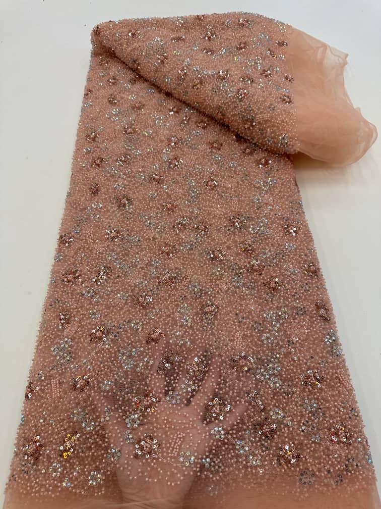 This high quality Fabric is measured in 5 Yards With Embroidered Beading and Sequin. It is soft, very delicate and beautiful.