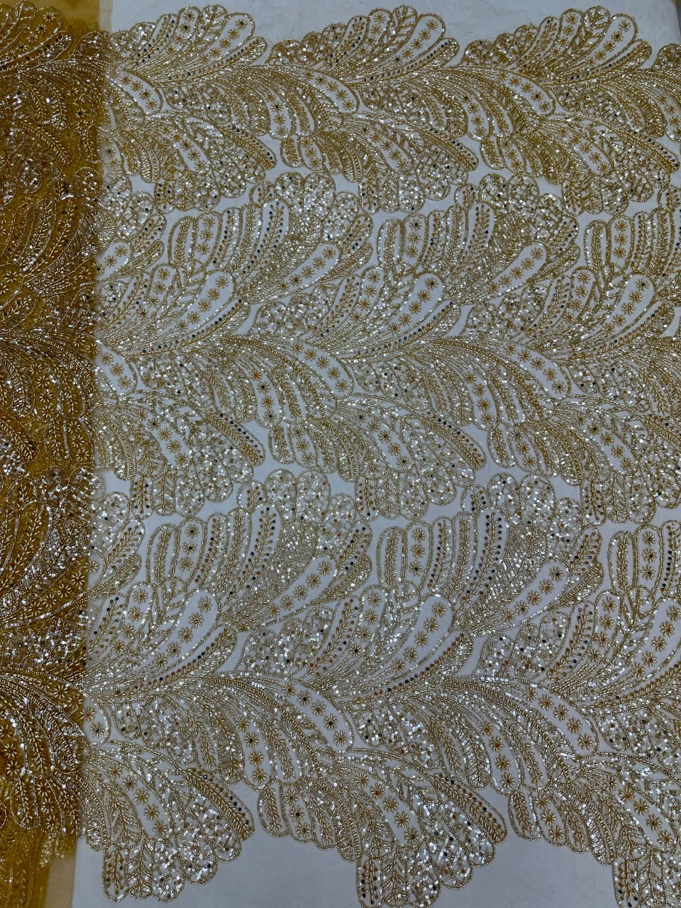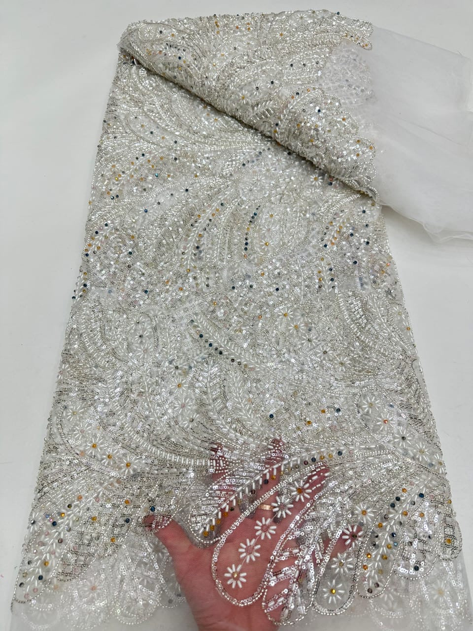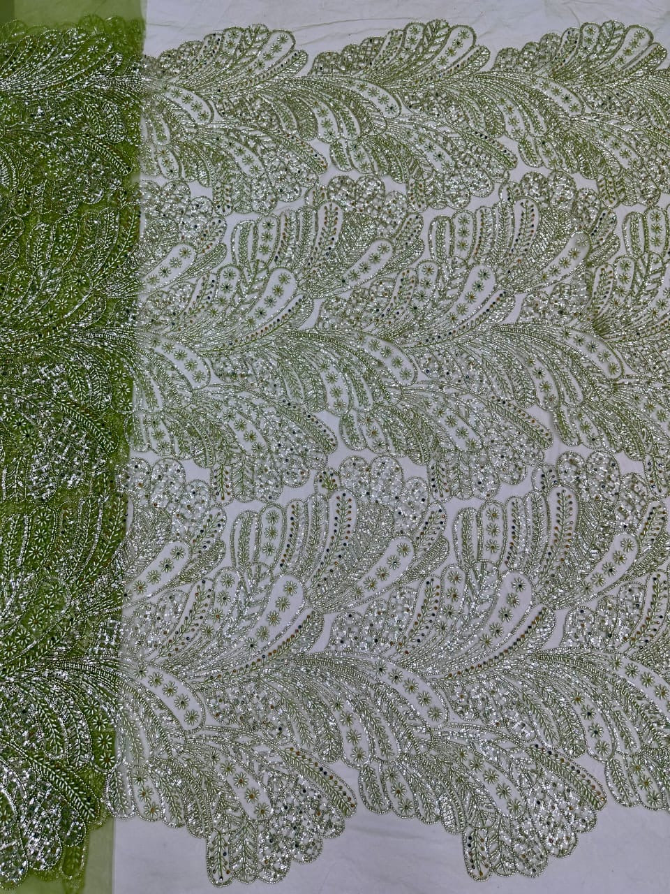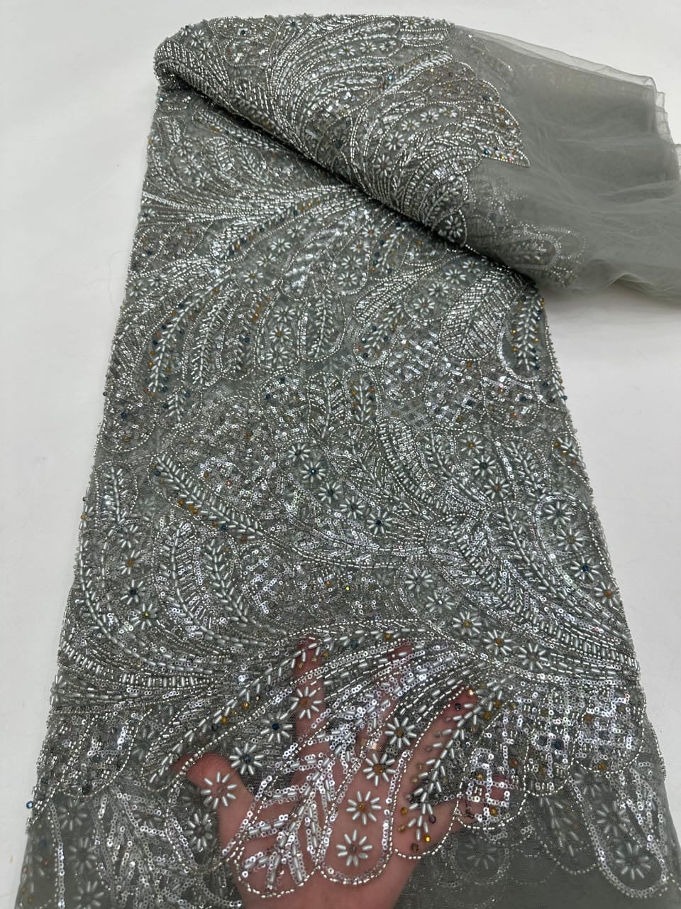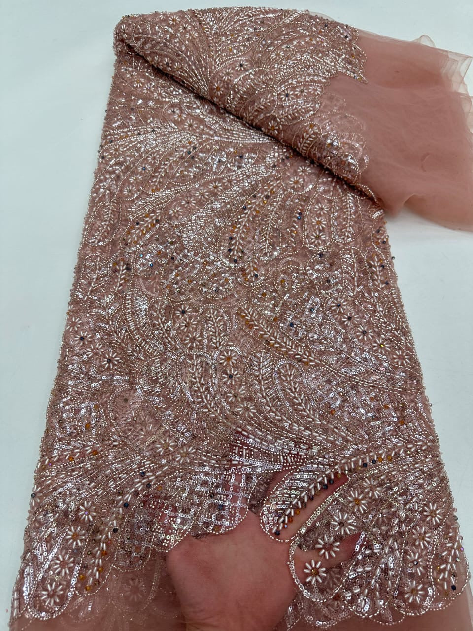 Esta tela de alta calidad se mide en 5 yardas con cuentas bordadas y lentejuelas. Es suave, muy delicado y bonito.