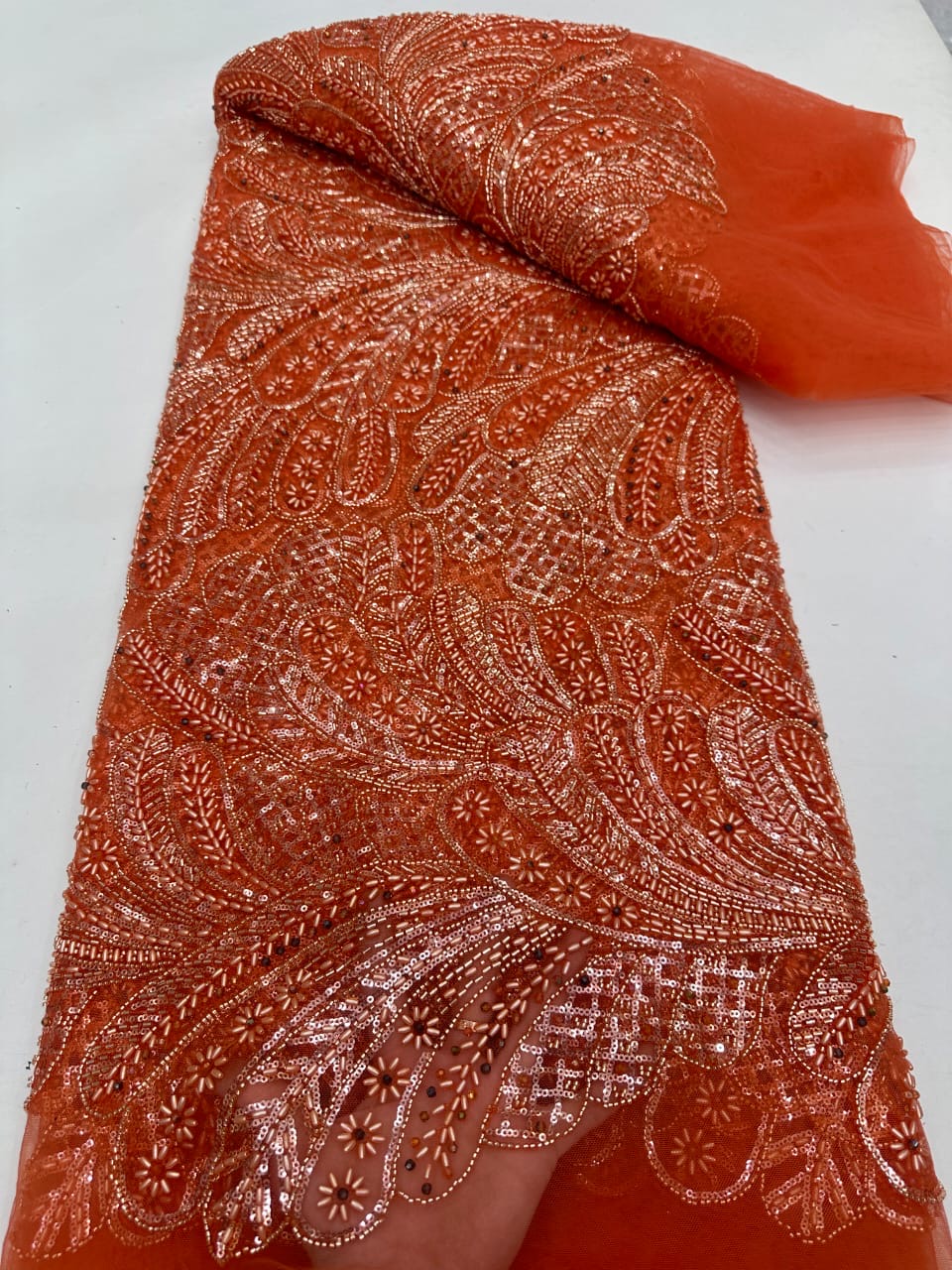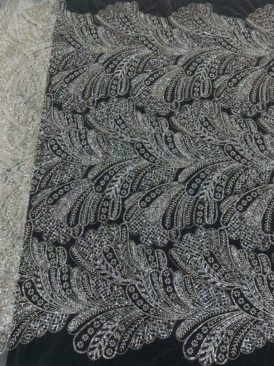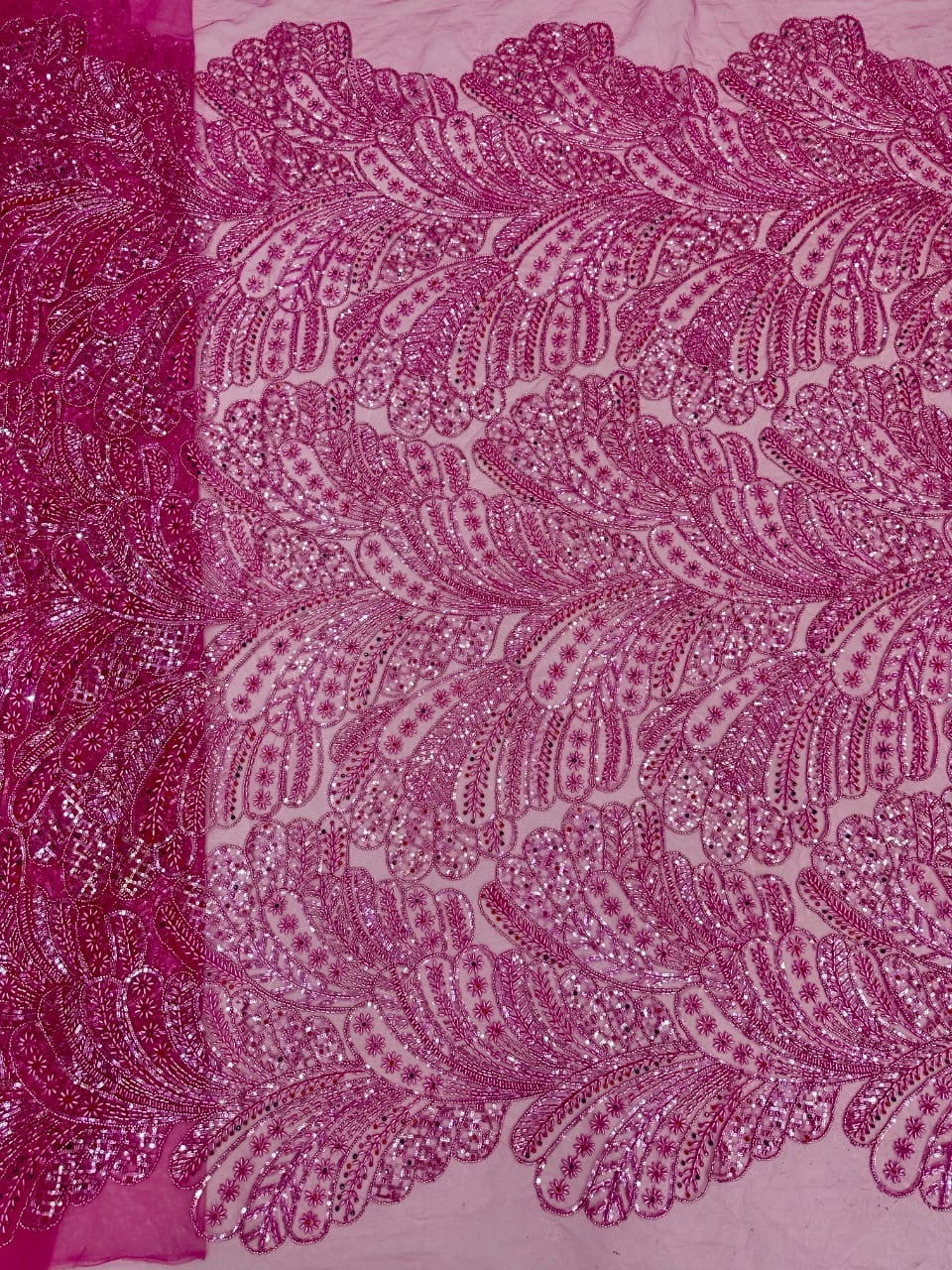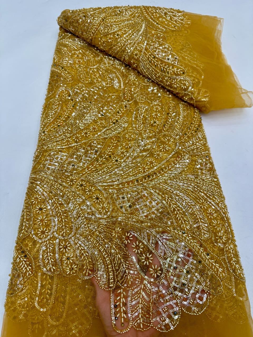 Esta tela de alta calidad se mide en 5 yardas con cuentas bordadas y lentejuelas. Es suave, muy delicado y bonito.