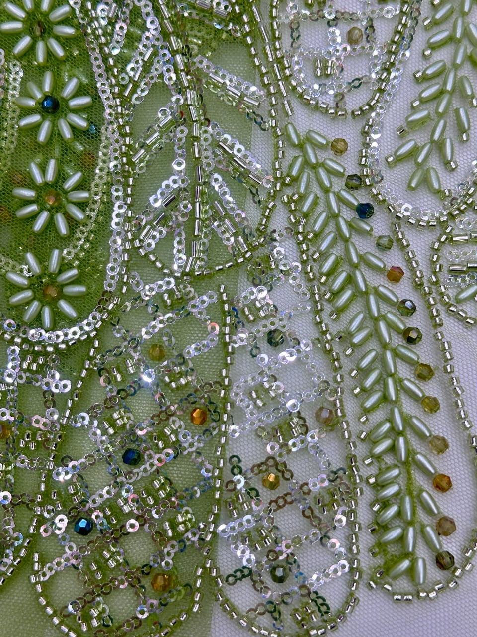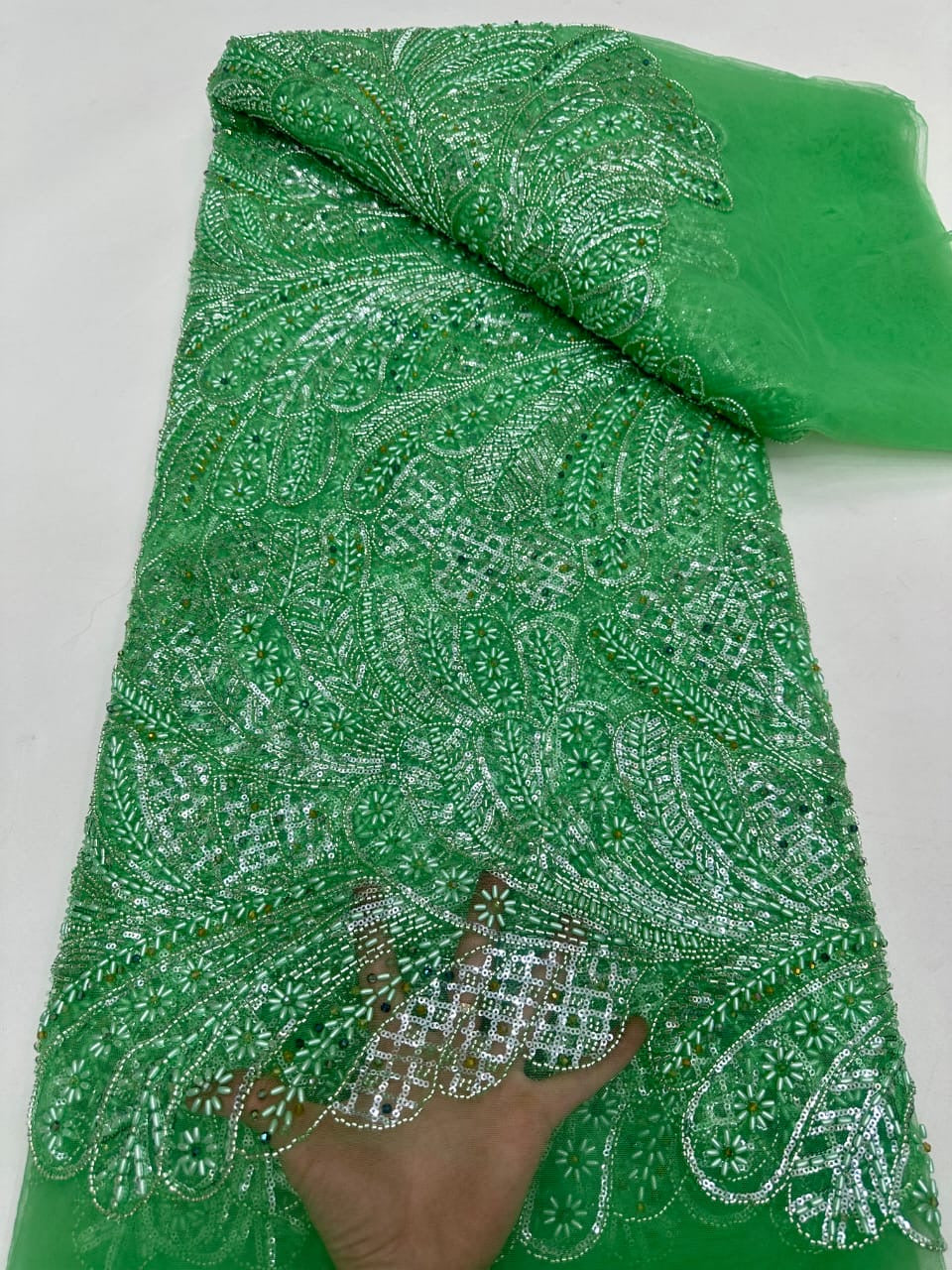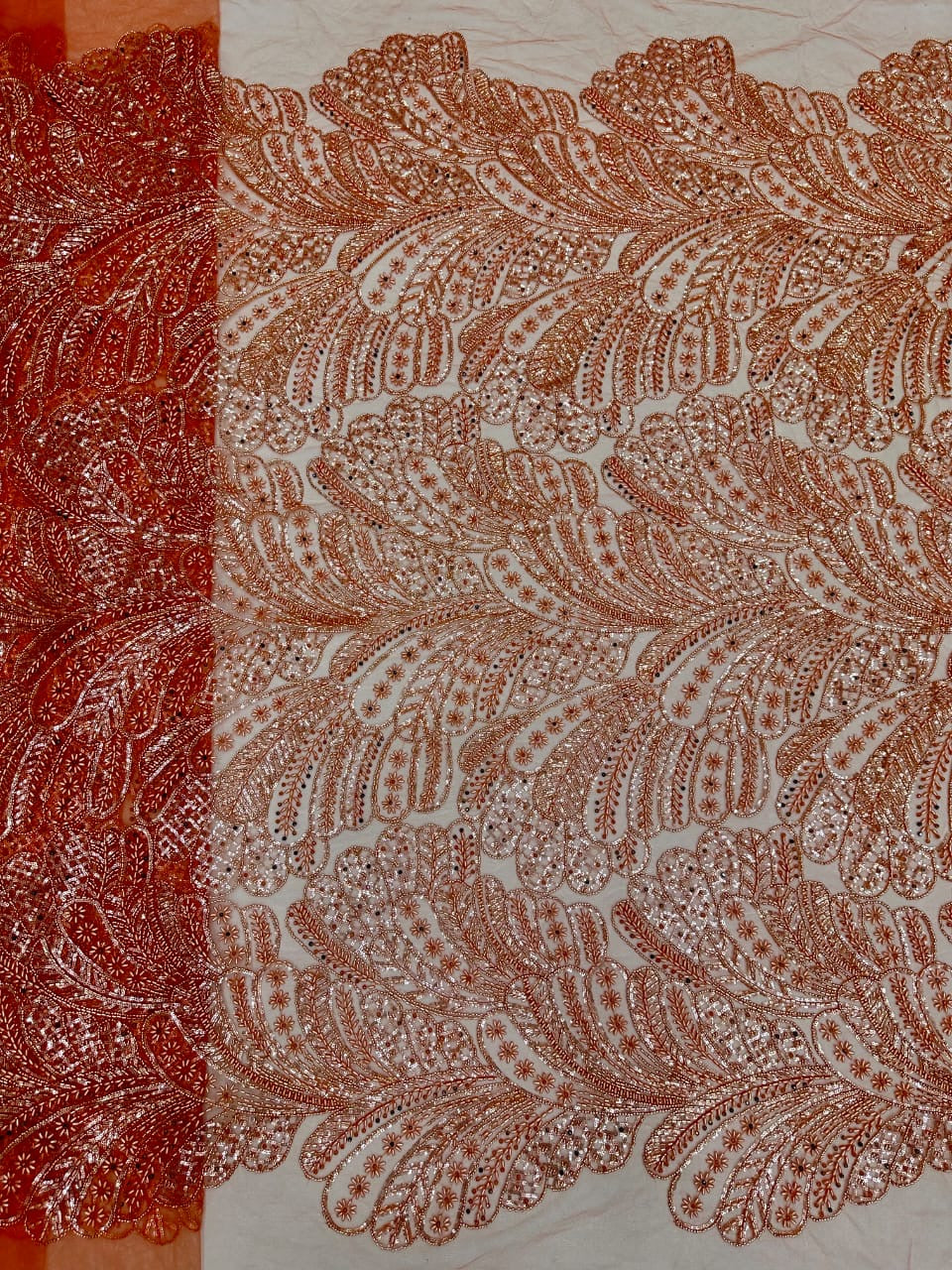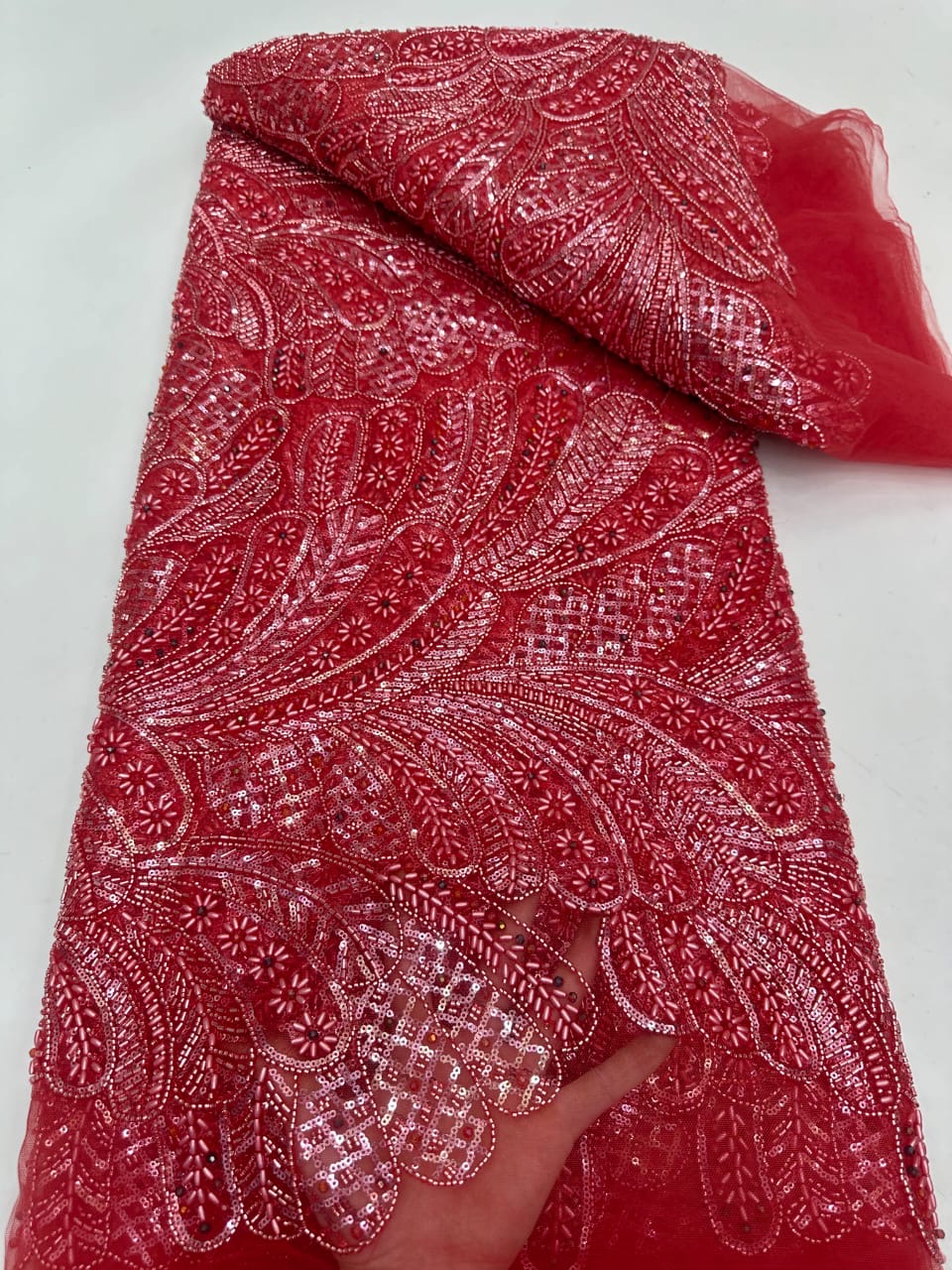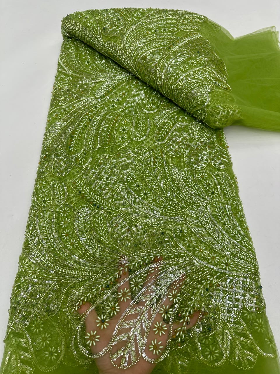 Esta tela de alta calidad se mide en 5 yardas con cuentas bordadas y lentejuelas. Es suave, muy delicado y bonito.