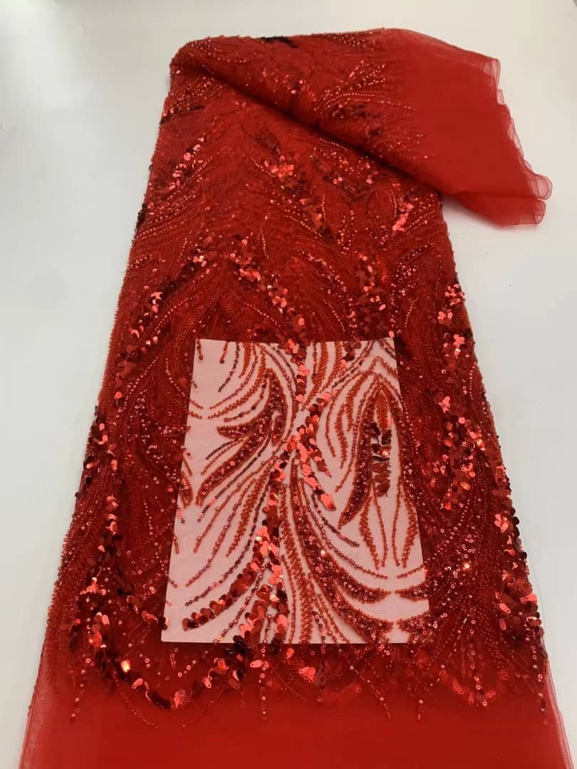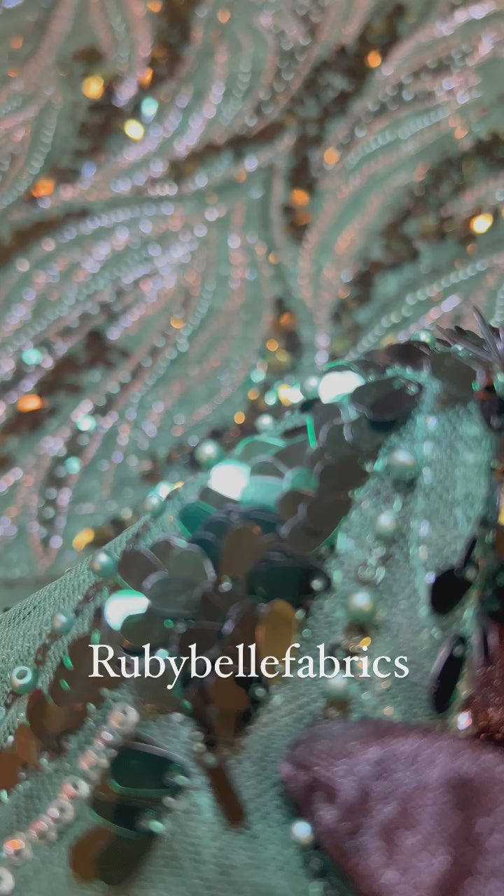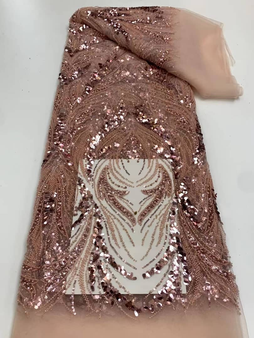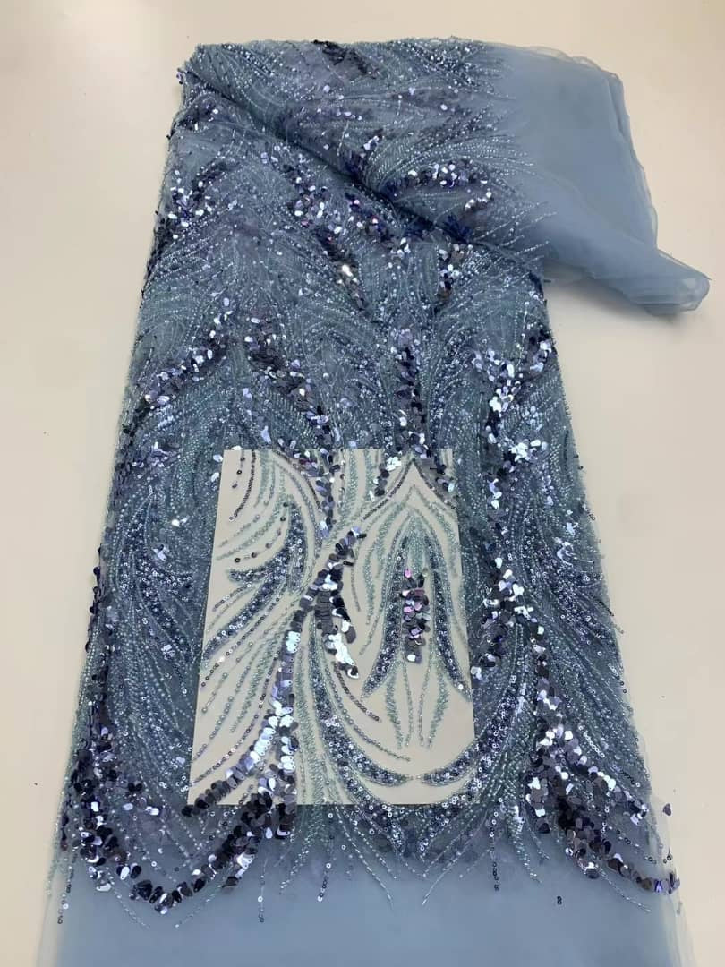 Esta tela de alta calidad se mide en 5 yardas con cuentas bordadas y lentejuelas. Es suave, muy delicado y bonito.