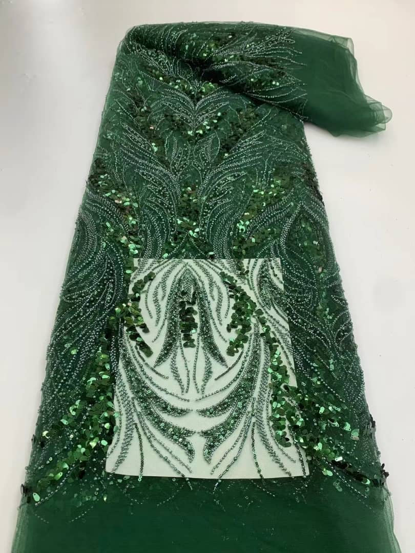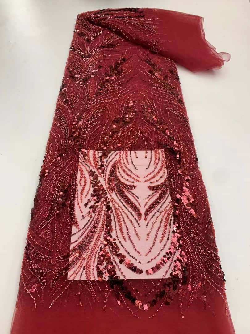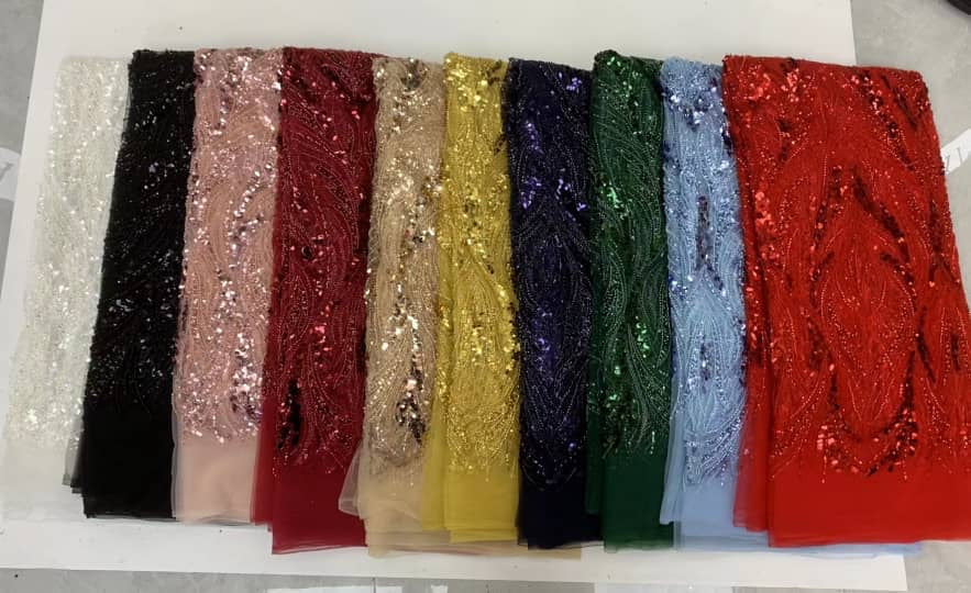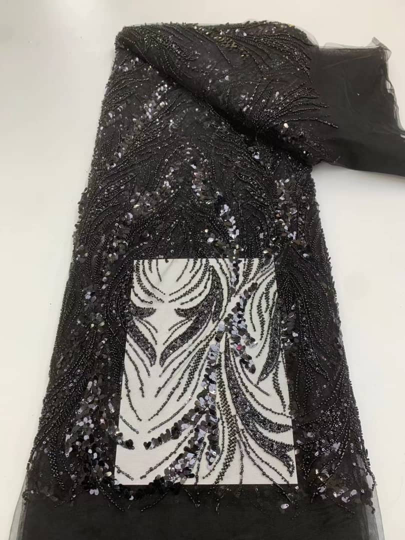 Esta tela de alta calidad se mide en 5 yardas con cuentas bordadas y lentejuelas. Es suave, muy delicado y bonito.