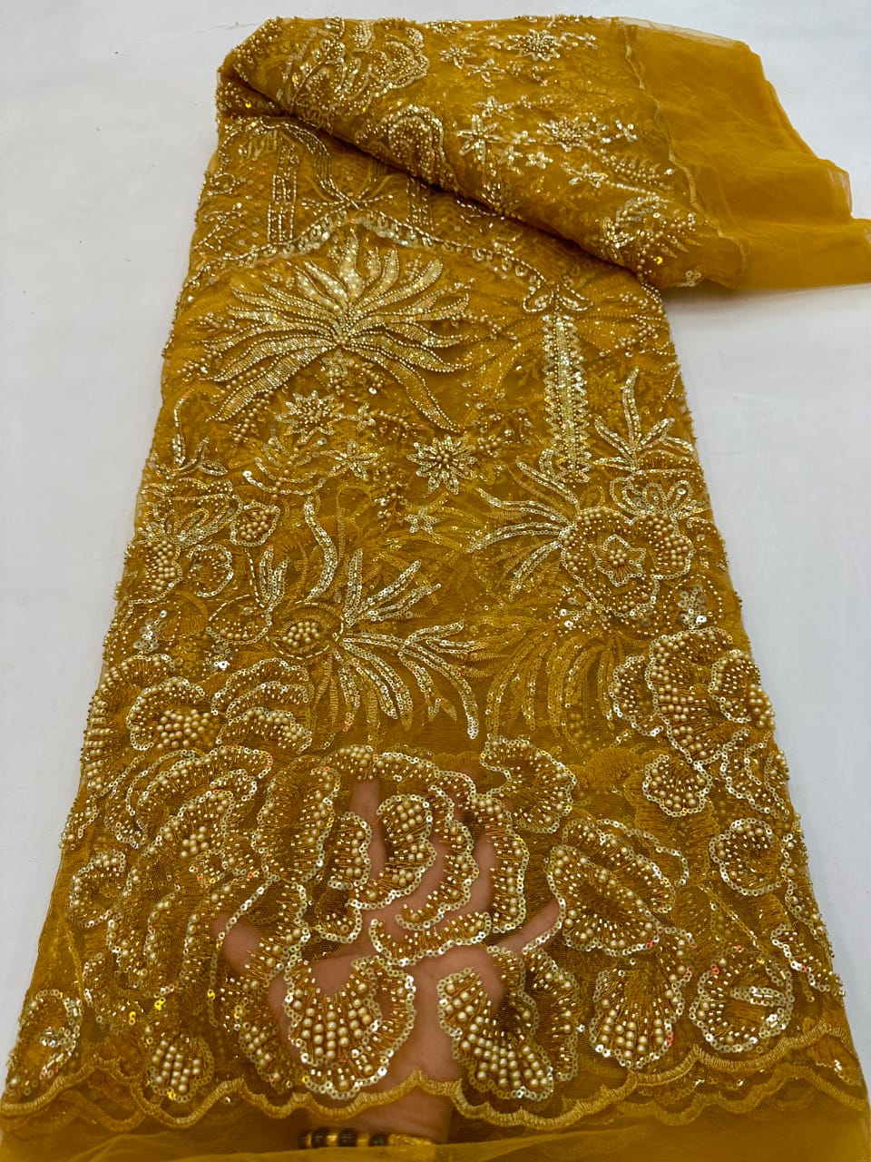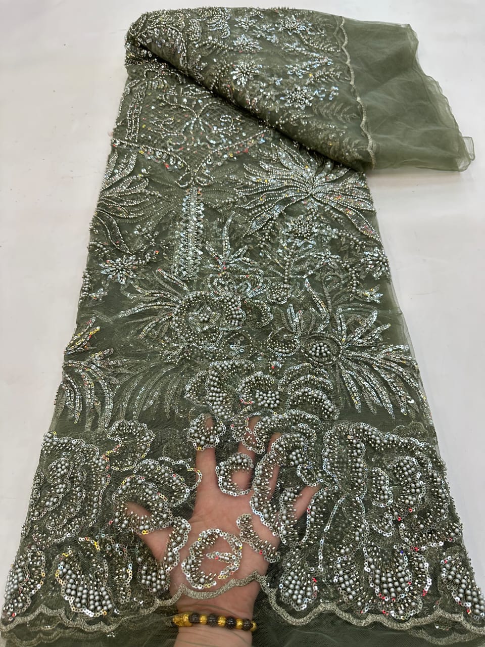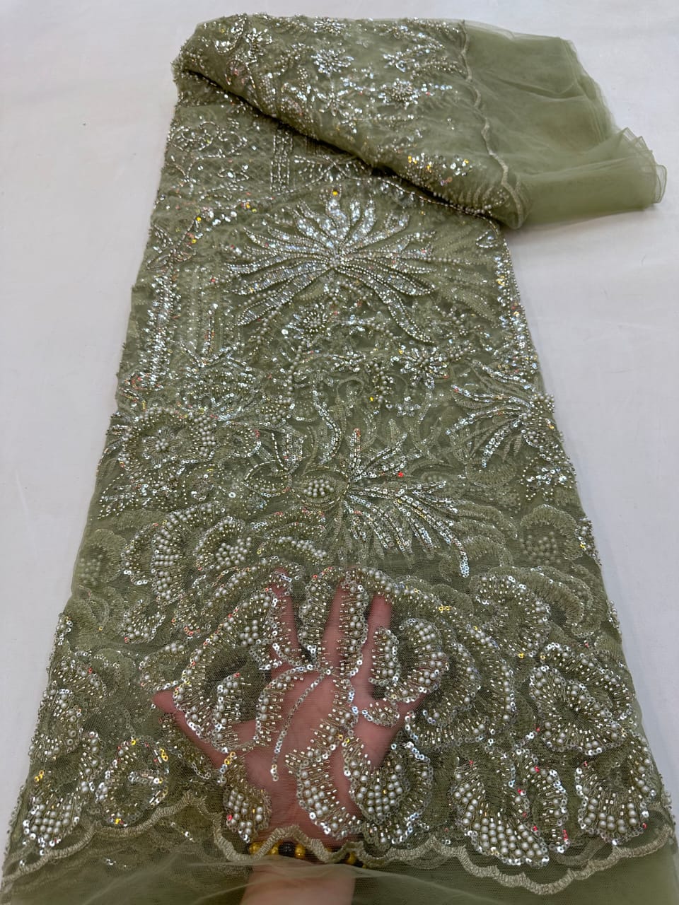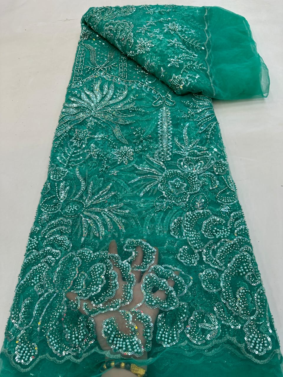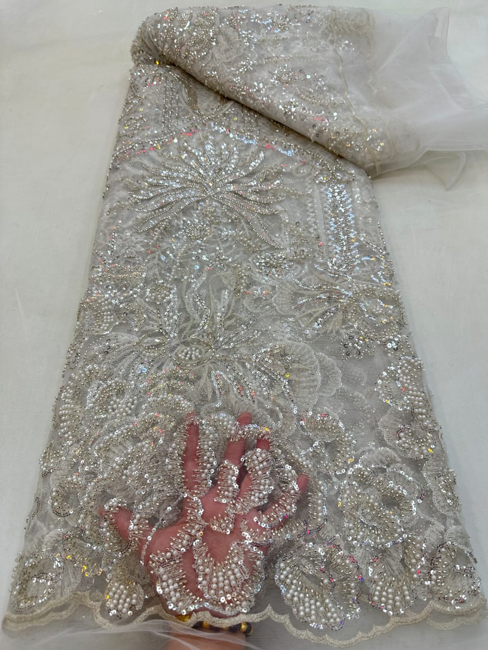 Esta tela de alta calidad se mide en 5 yardas con cuentas bordadas y lentejuelas. Es suave, muy delicado y bonito.