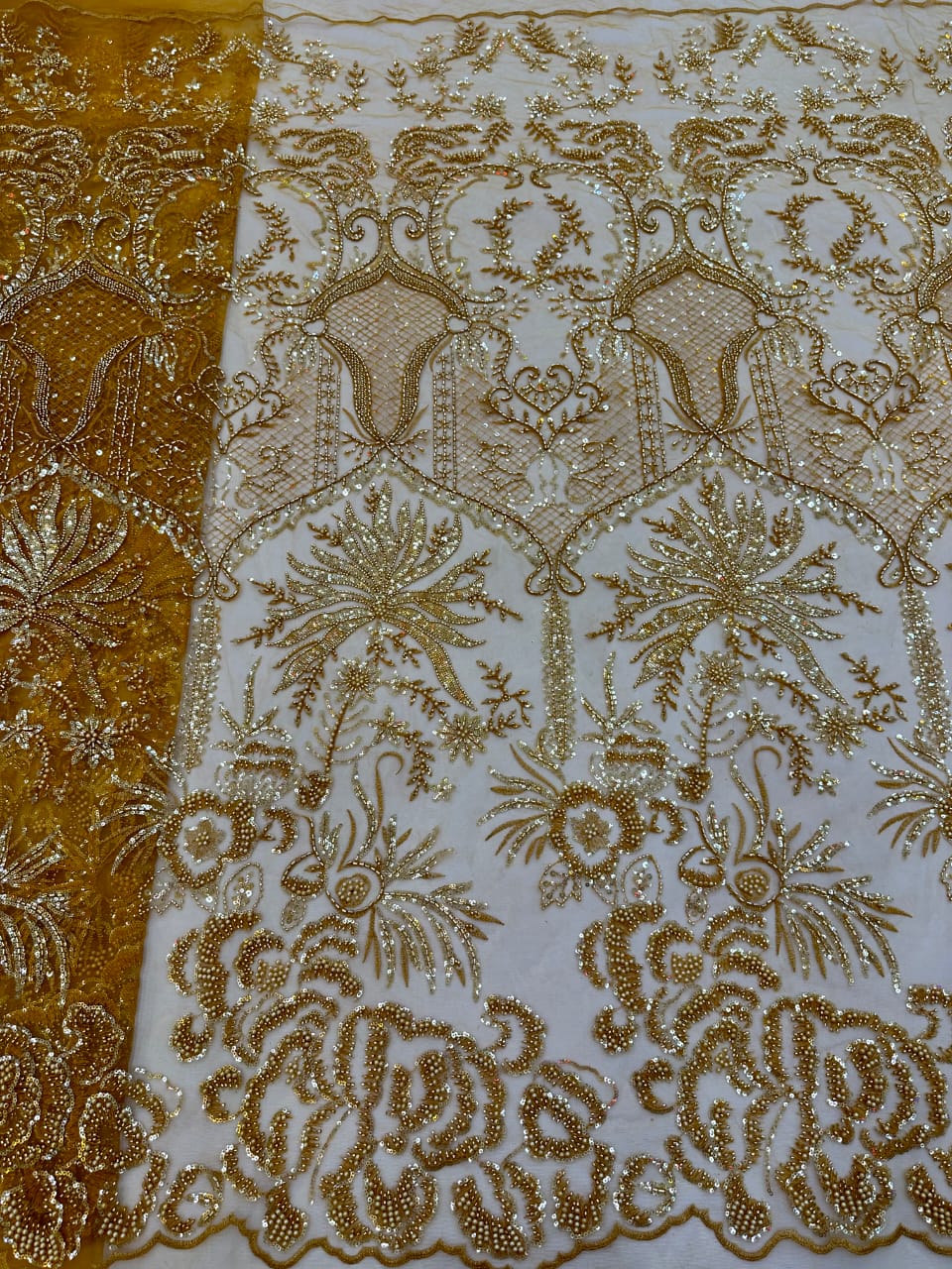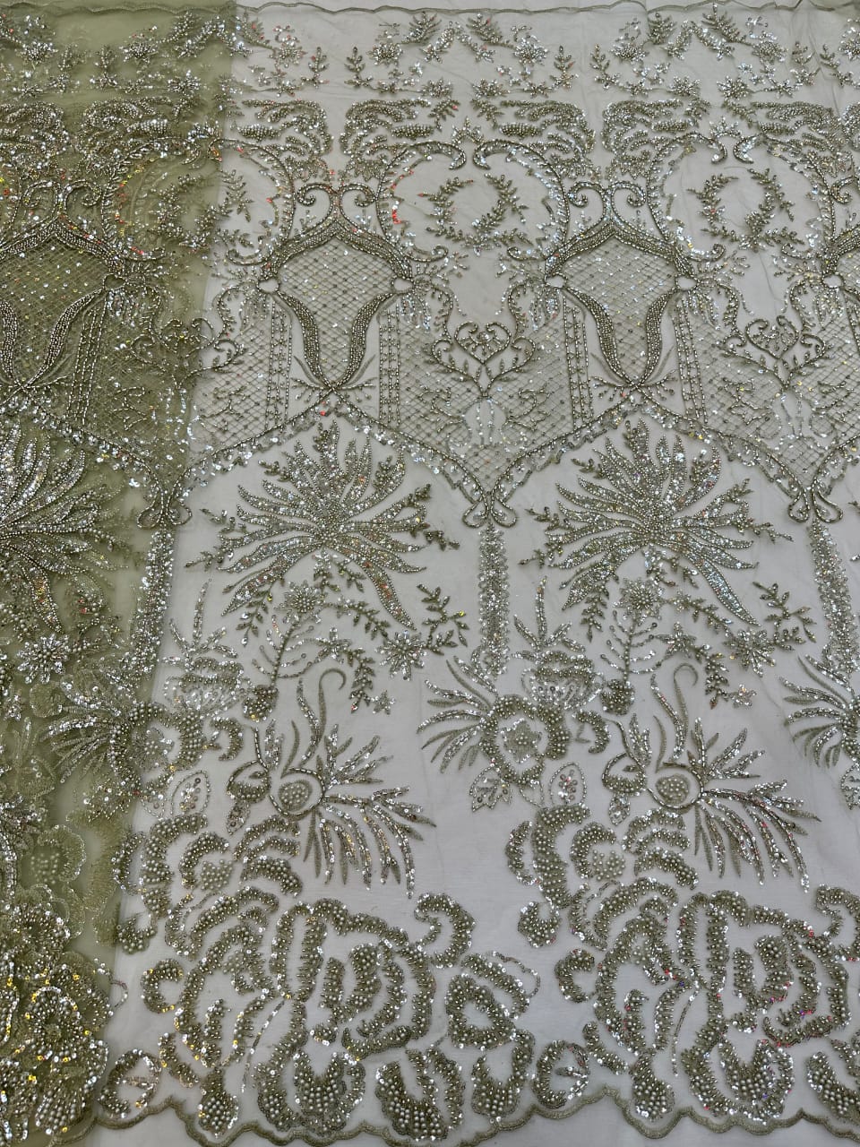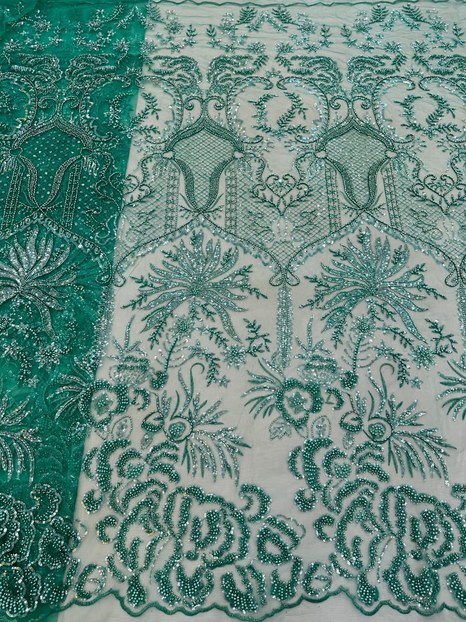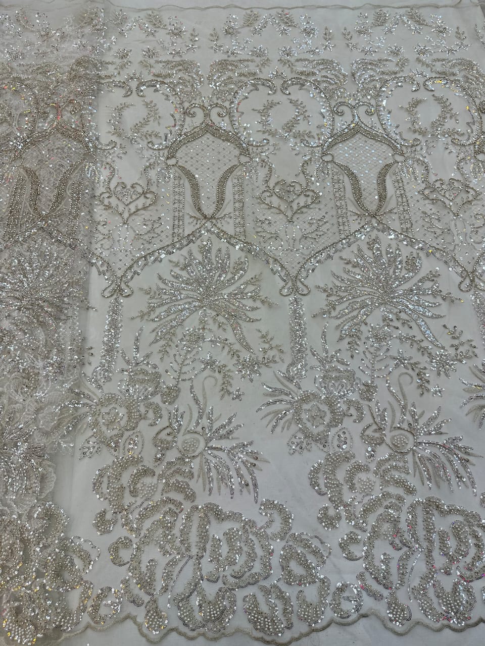 Esta tela de alta calidad se mide en 5 yardas con cuentas bordadas y lentejuelas. Es suave, muy delicado y bonito.