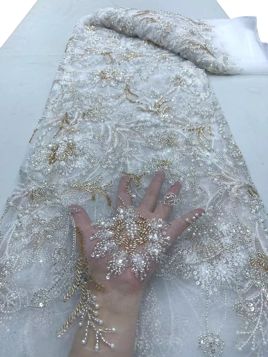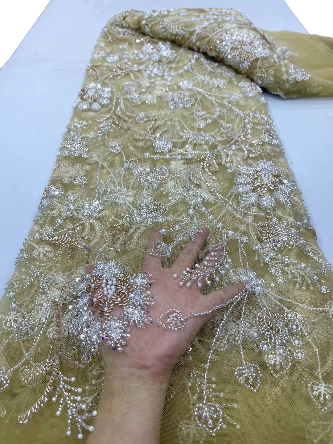 This high quality Fabric is measured in 5 Yards With Embroidered Beading and Sequin. It is soft, very delicate and beautiful.