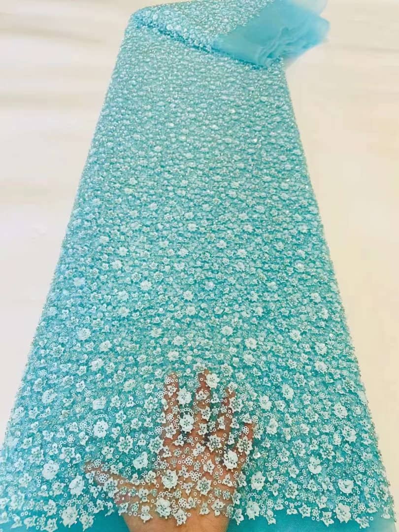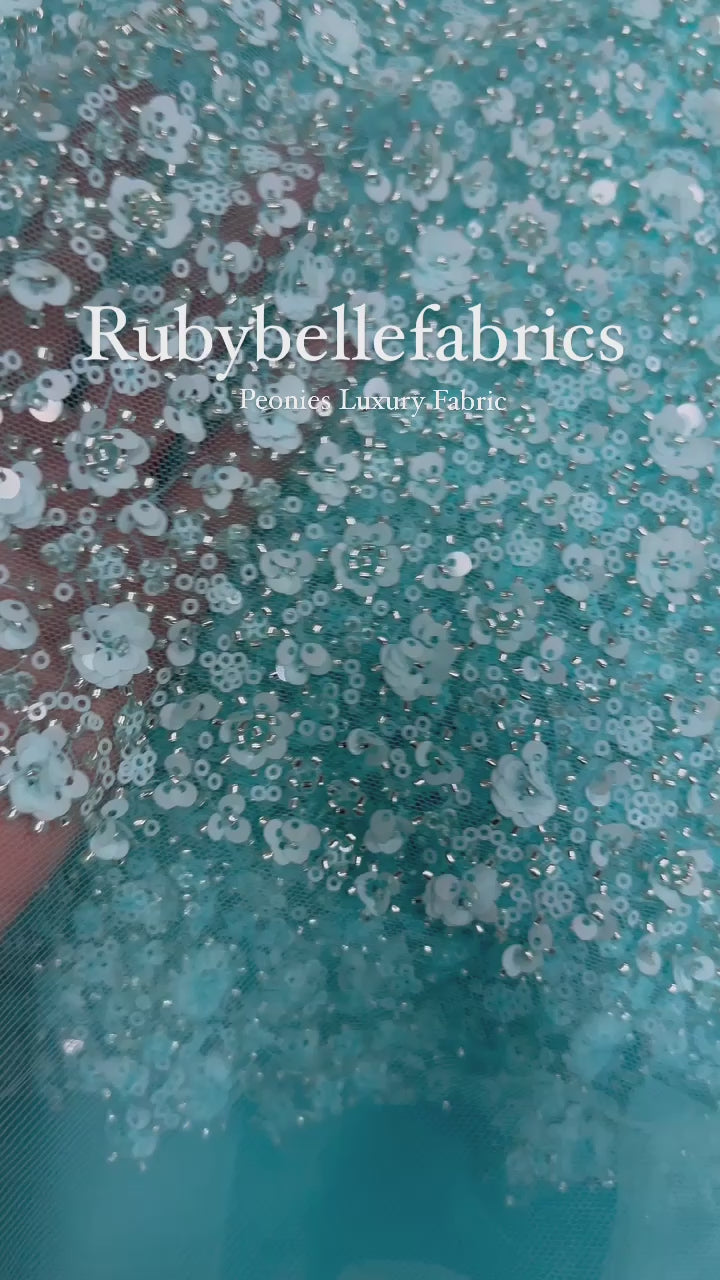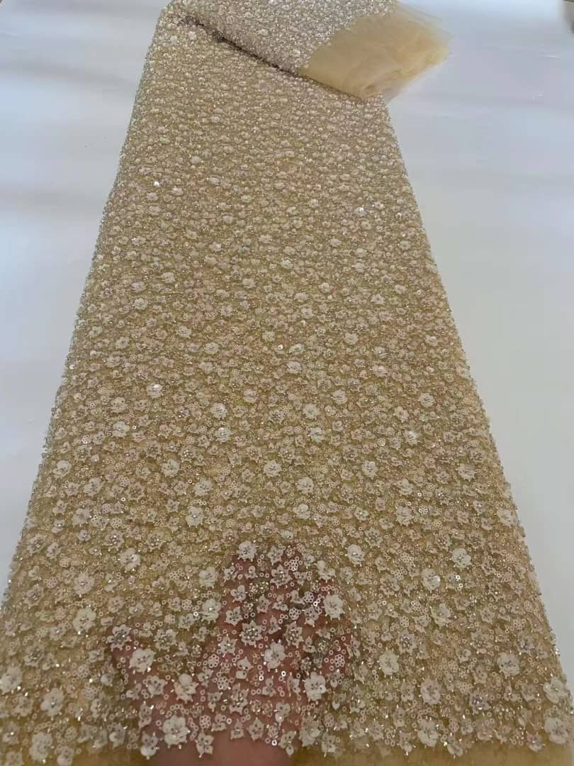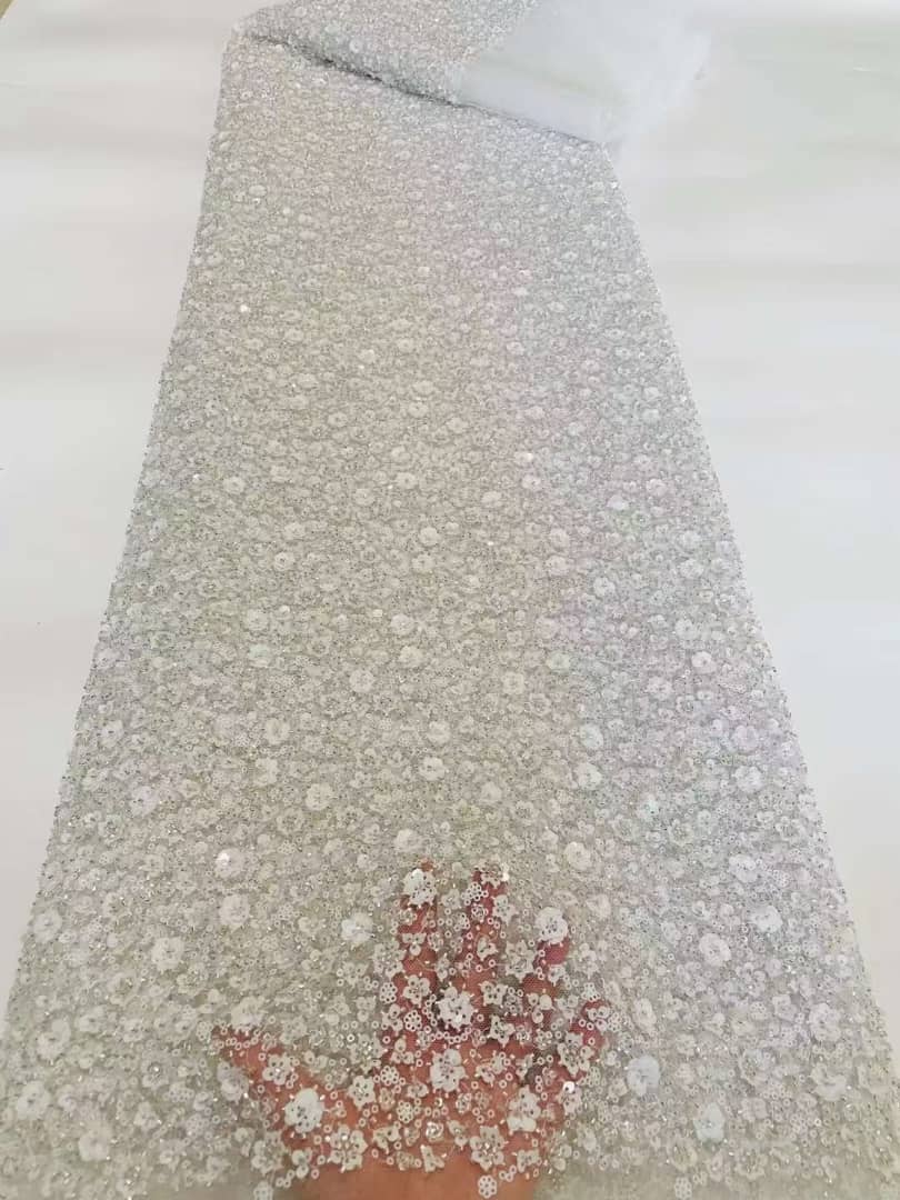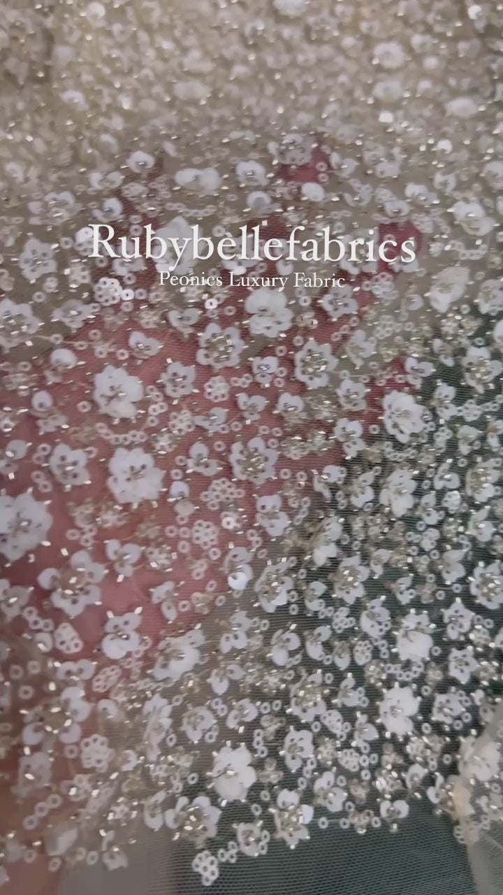 Esta tela de alta calidad se mide en 5 yardas con cuentas bordadas y lentejuelas. Es suave, muy delicado y bonito.