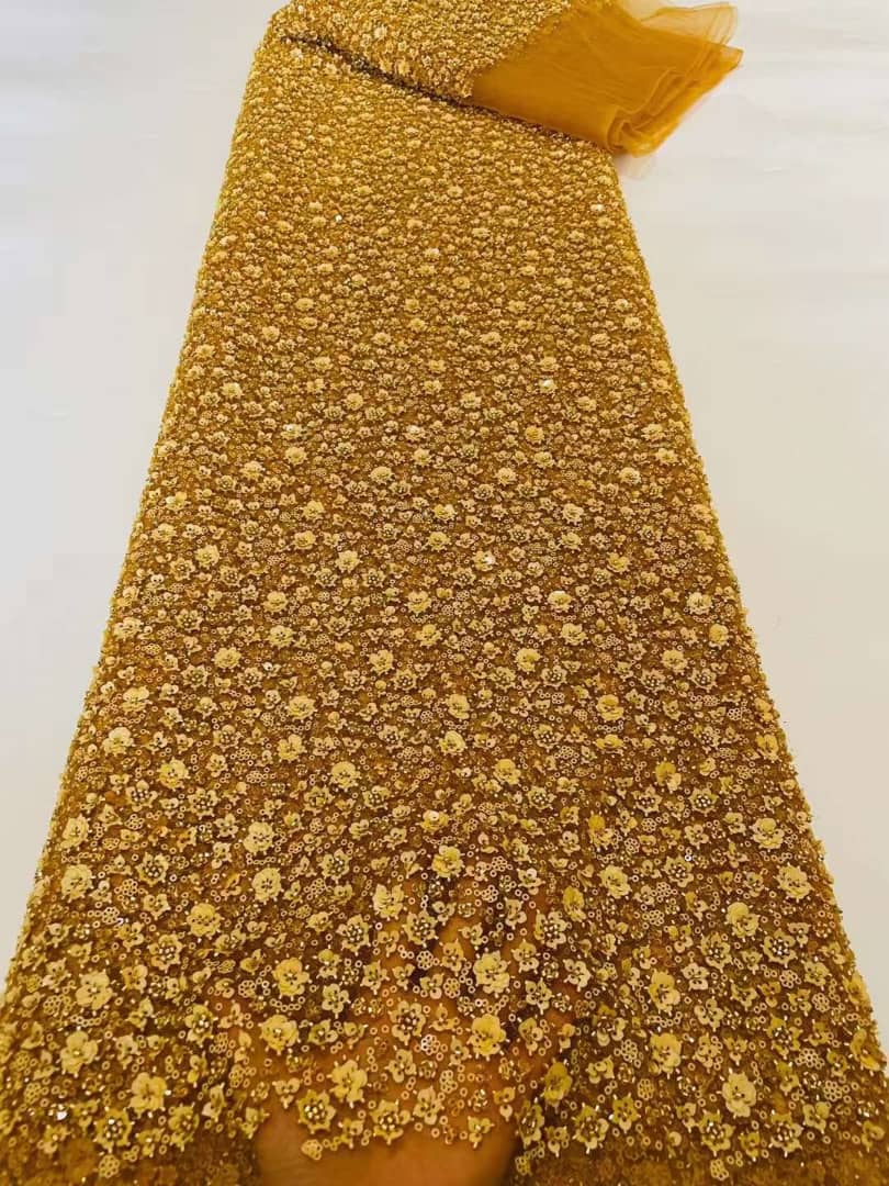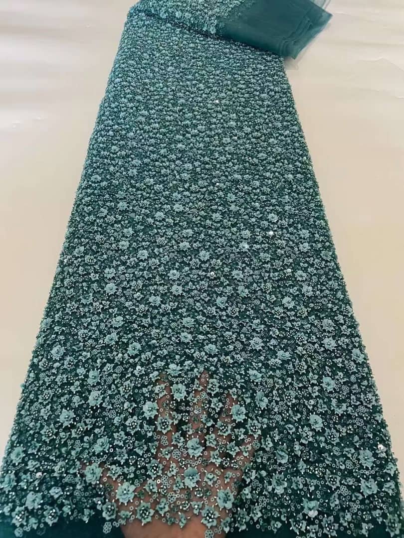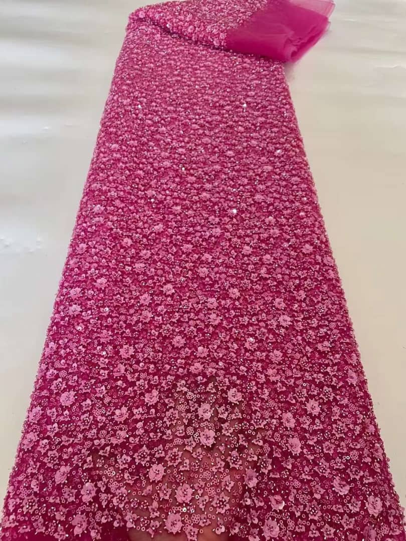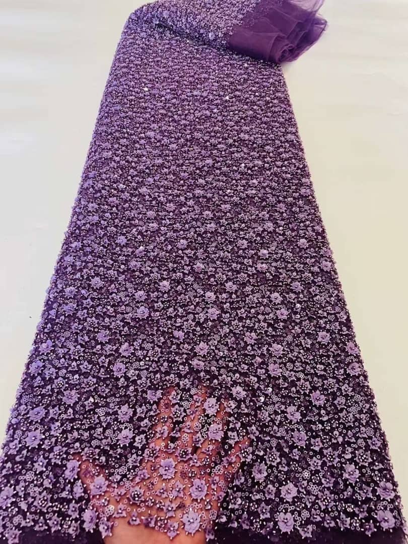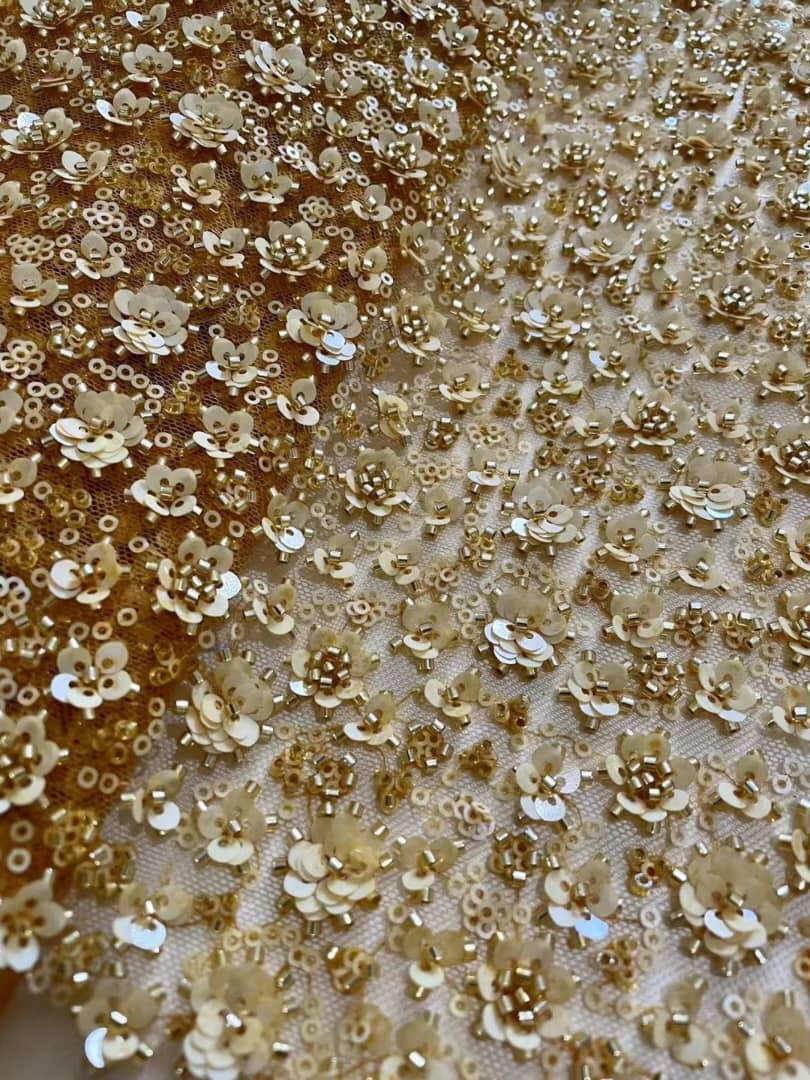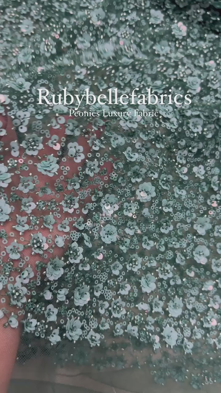 Esta tela de alta calidad se mide en 5 yardas con cuentas bordadas y lentejuelas. Es suave, muy delicado y bonito.