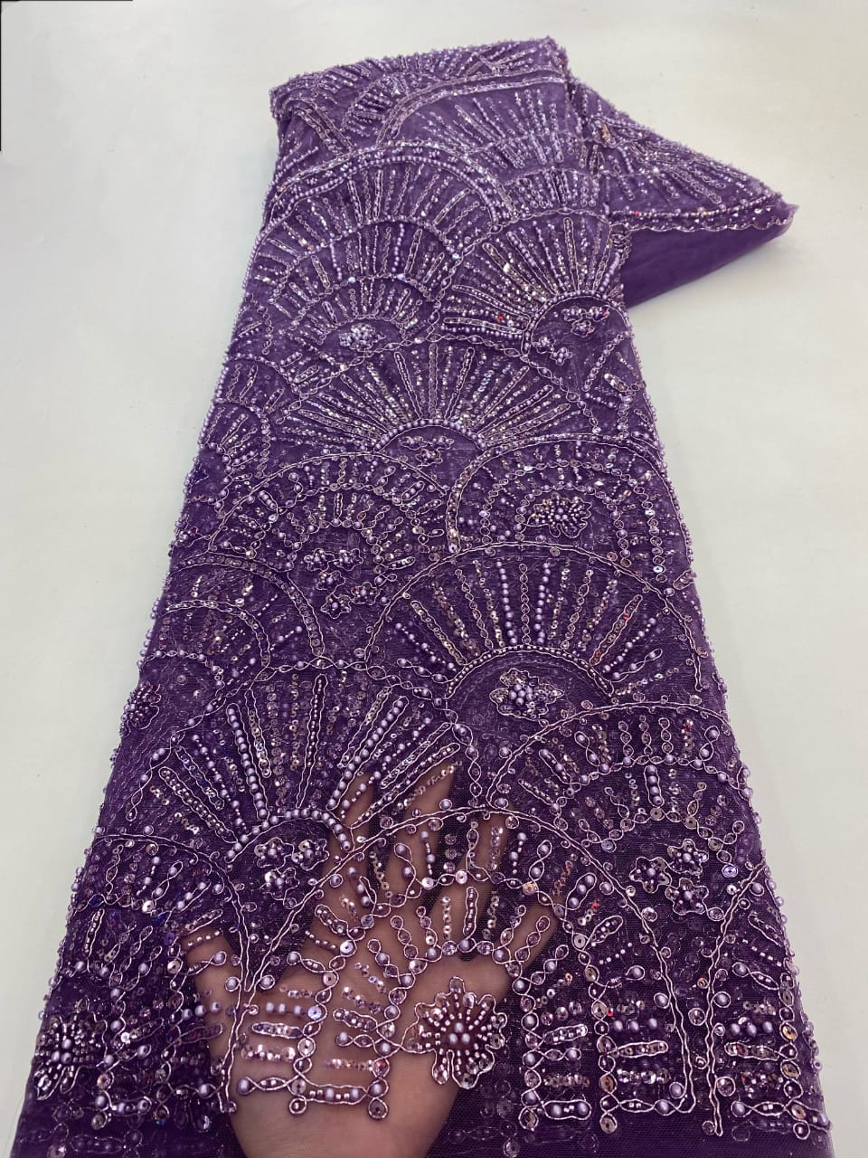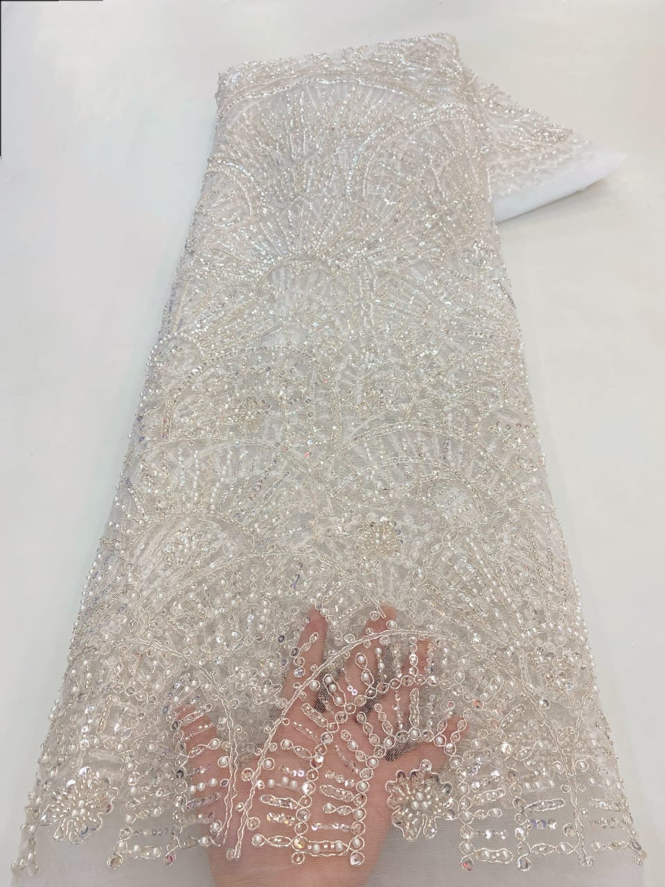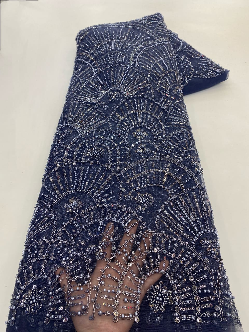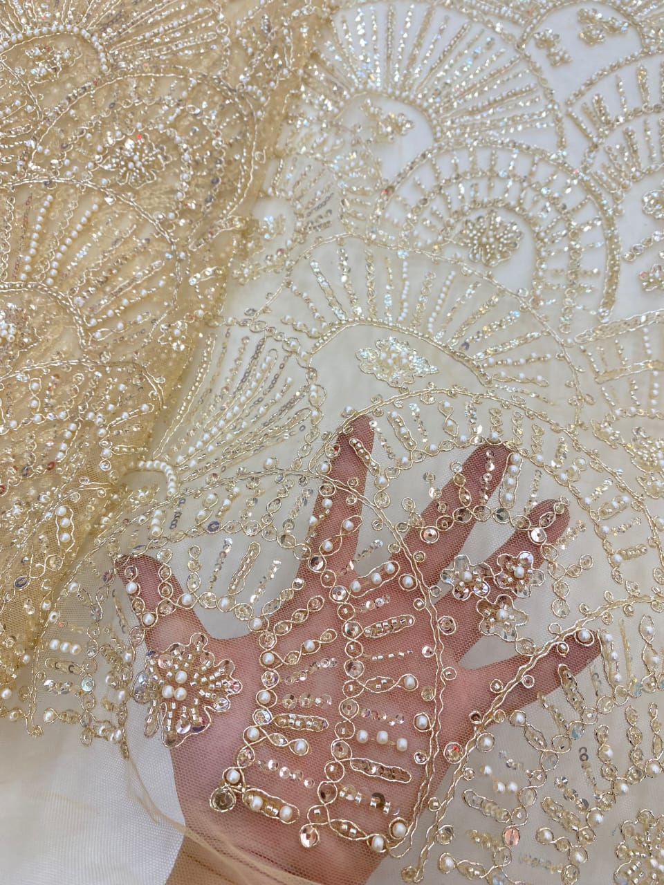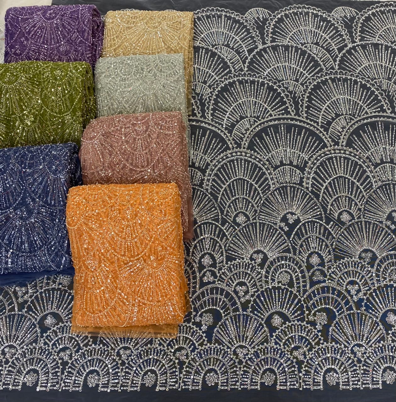 Esta tela de alta calidad se mide en 5 yardas con cuentas bordadas y lentejuelas. Es suave, muy delicado y bonito.