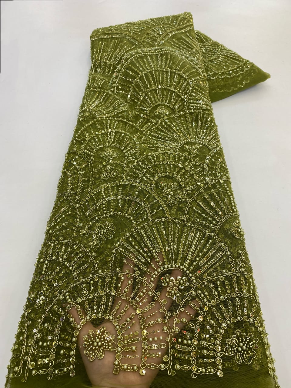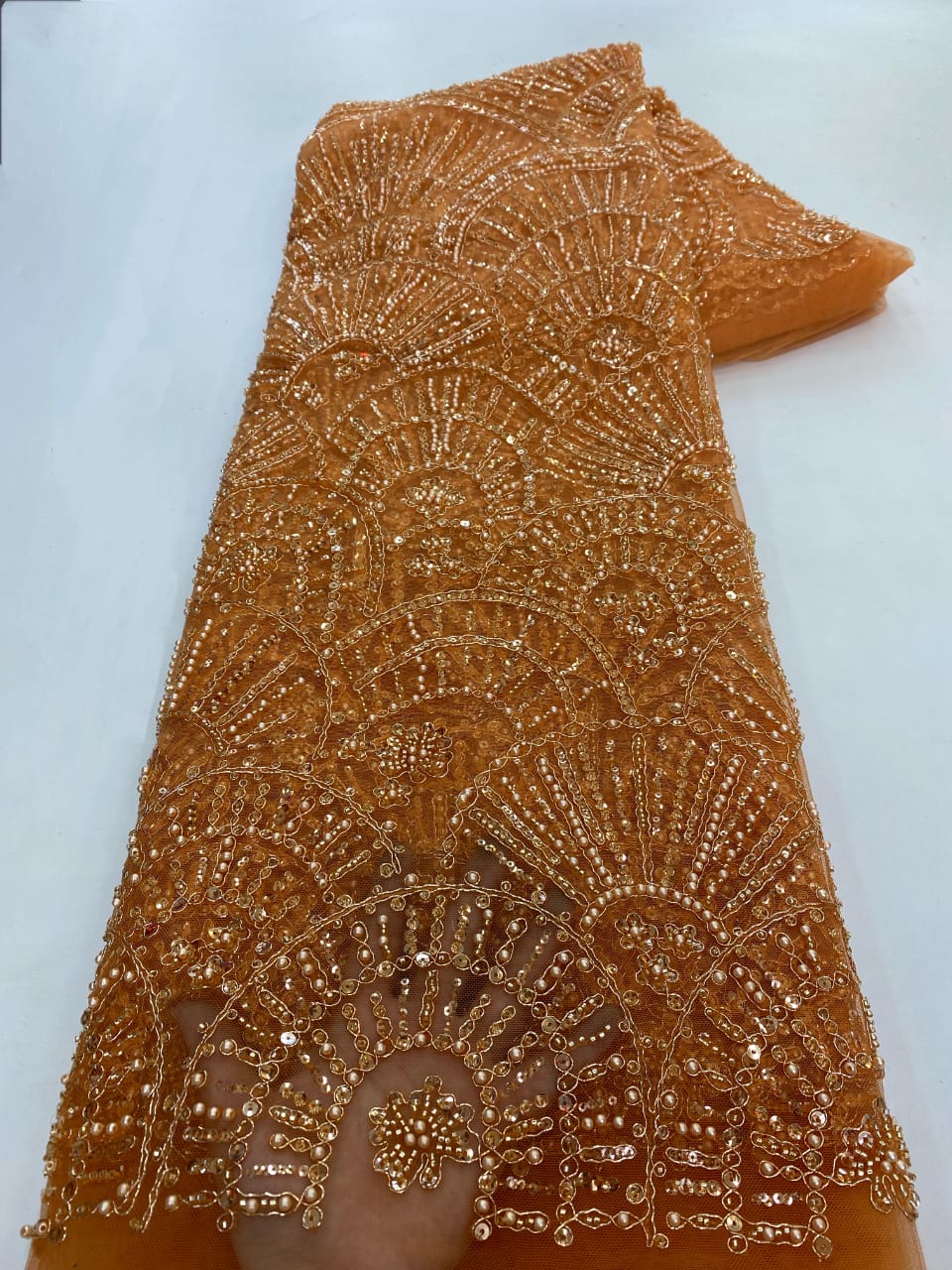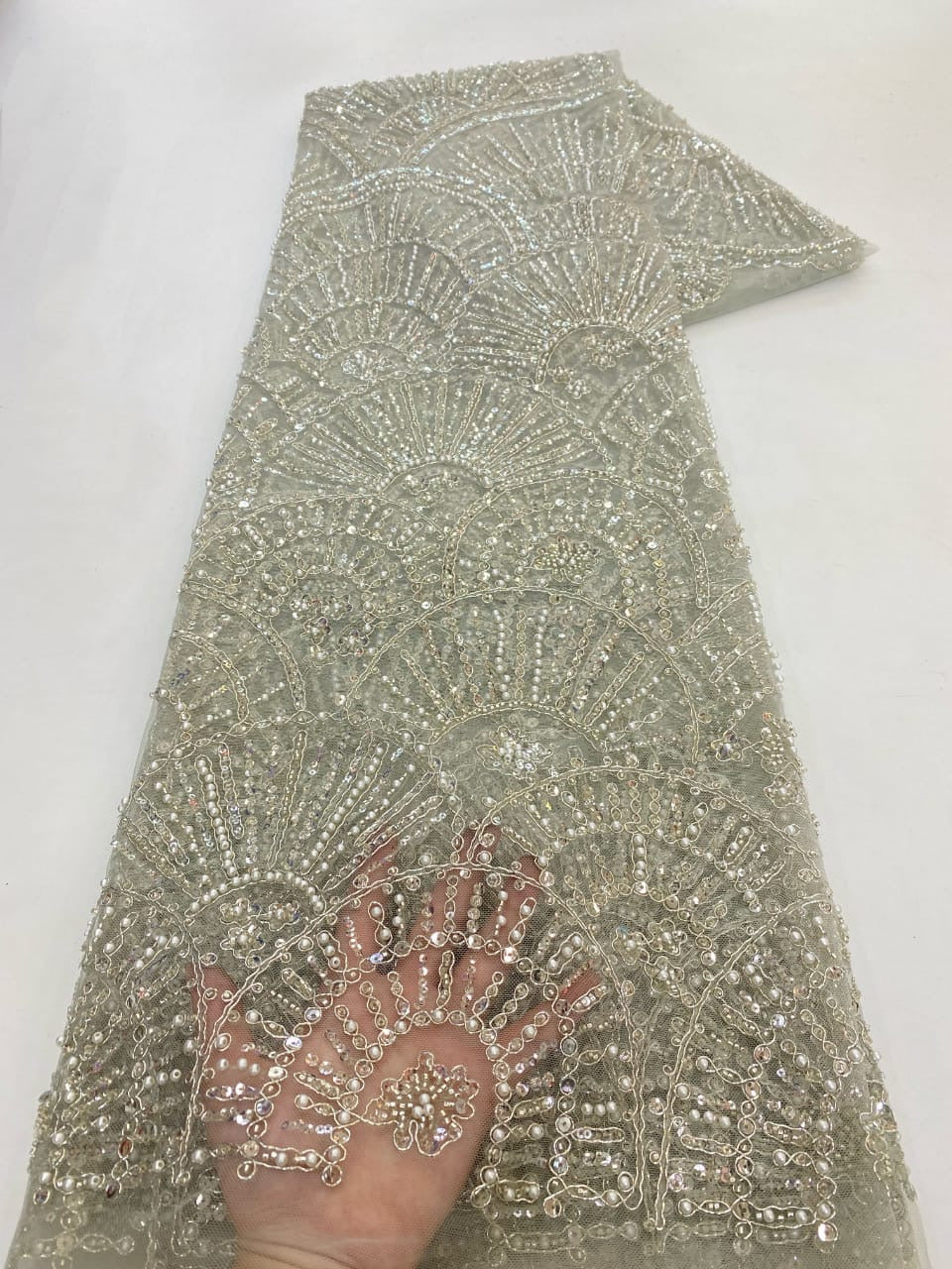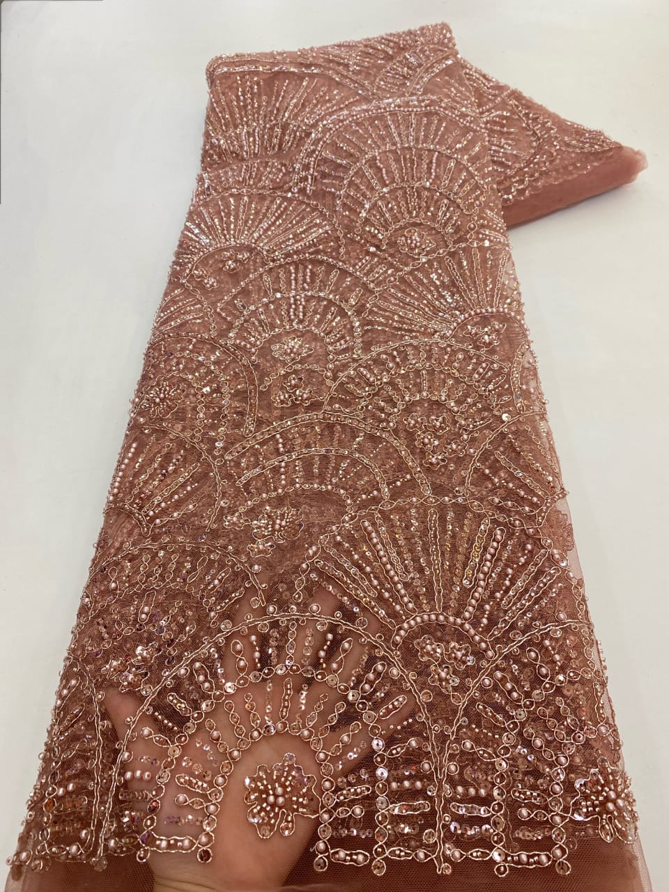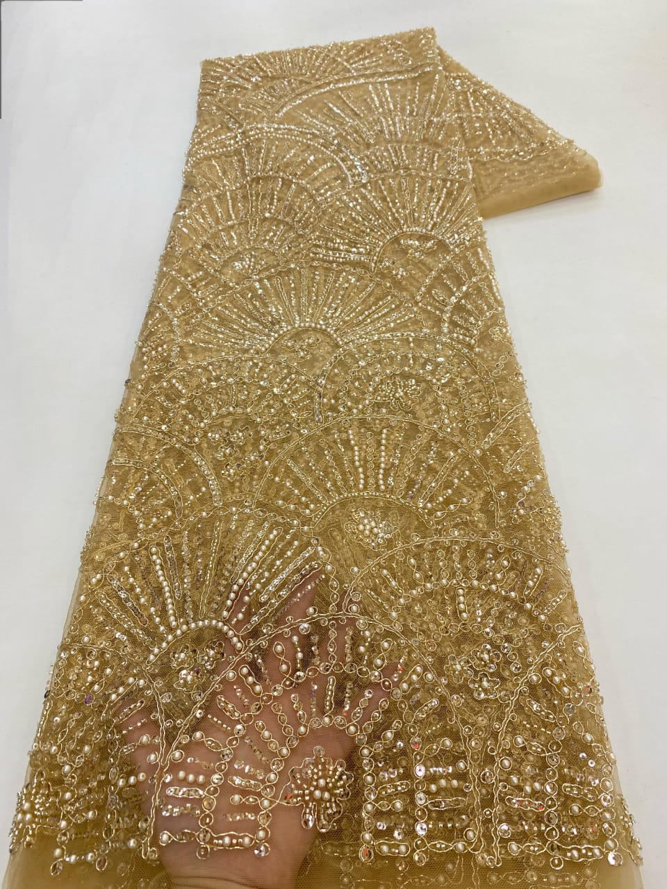 Esta tela de alta calidad se mide en 5 yardas con cuentas bordadas y lentejuelas. Es suave, muy delicado y bonito.