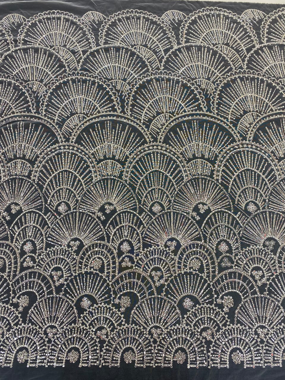 Esta tela de alta calidad está hecha con pedrería bordada a la moda y se puede usar para hacer vestidos de novia, faldas, chales, bufandas y otras prendas de moda que desee.
