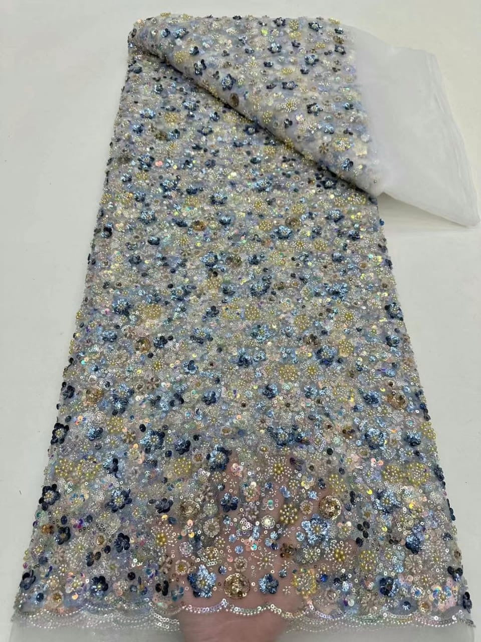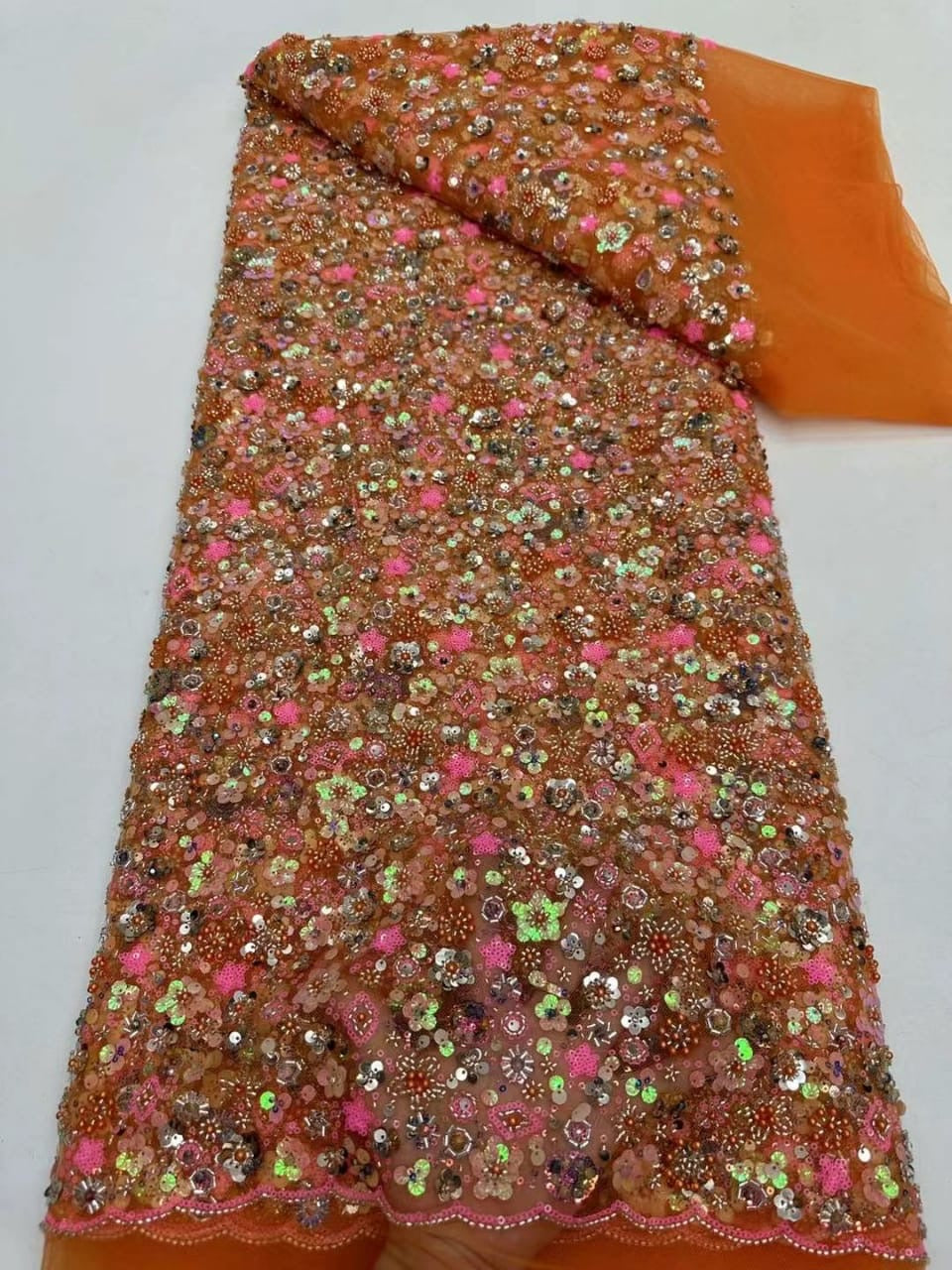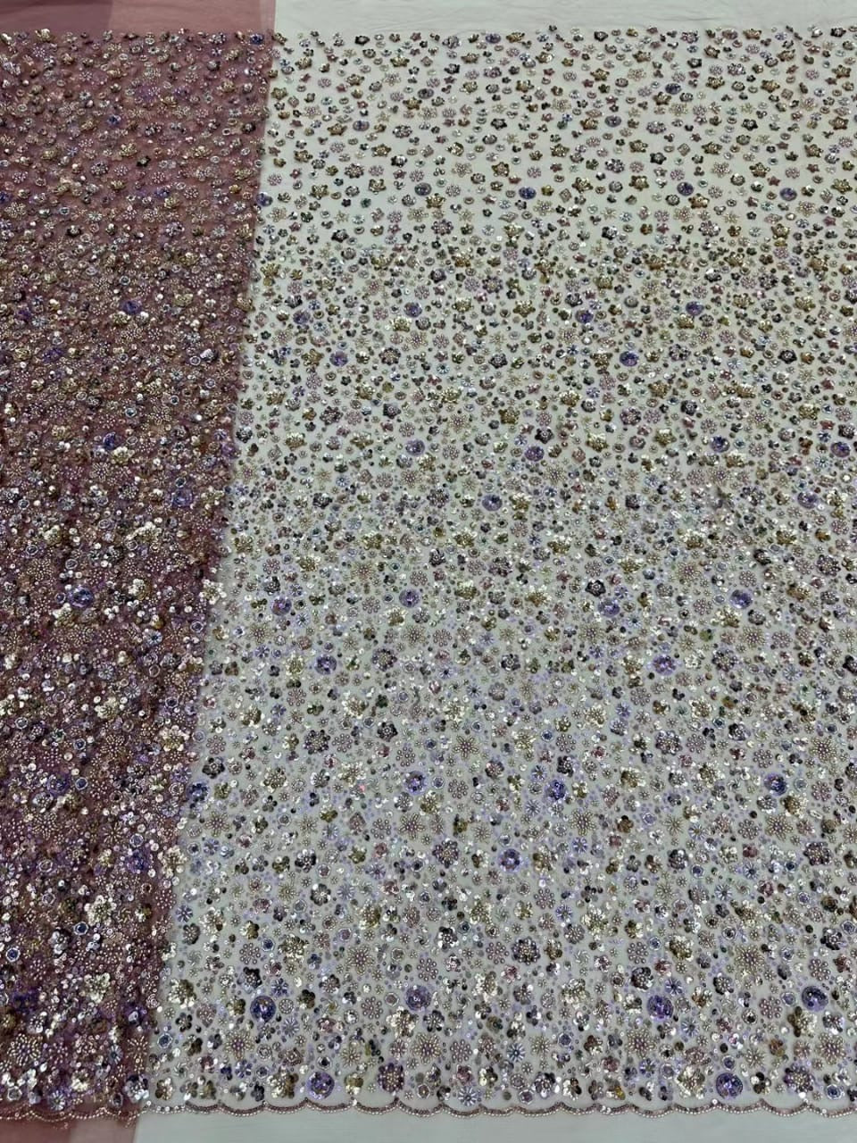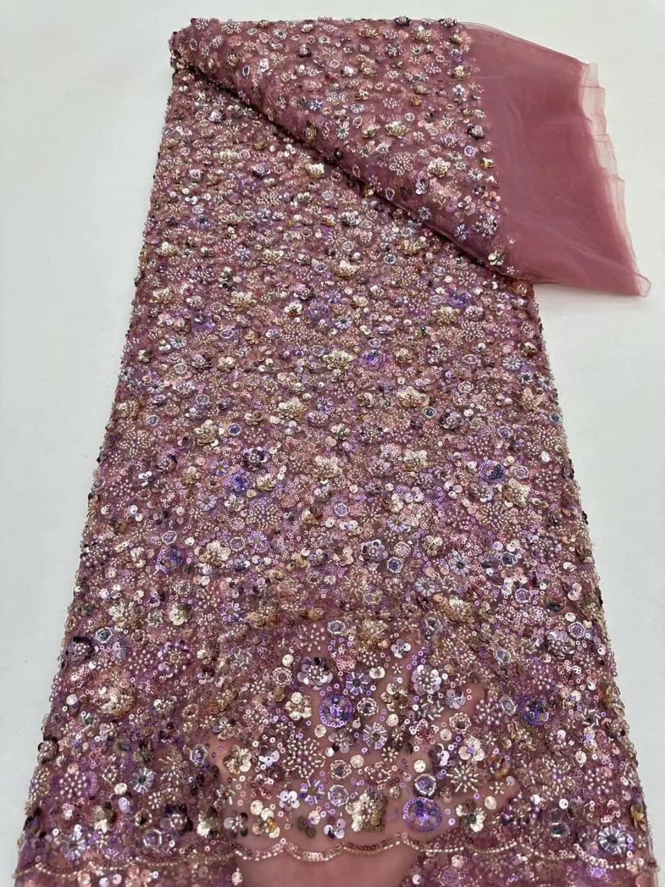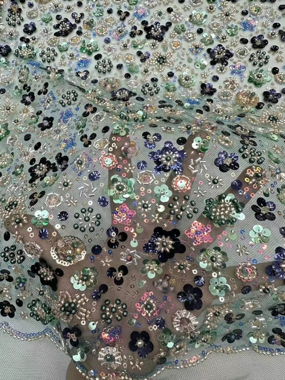 Esta tela de alta calidad se mide en 5 yardas con cuentas bordadas y lentejuelas. Es suave, muy delicado y bonito.