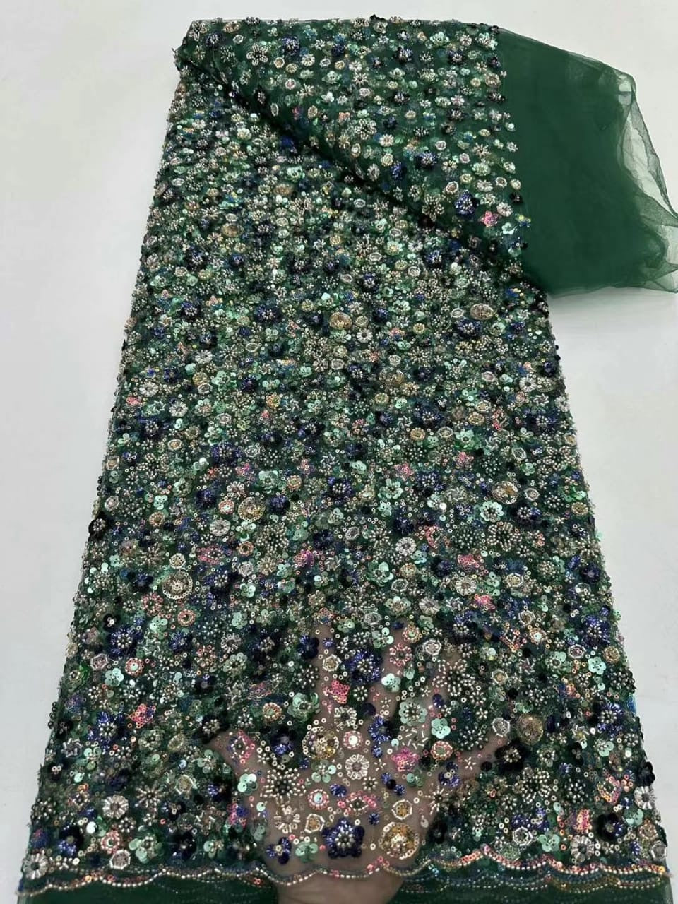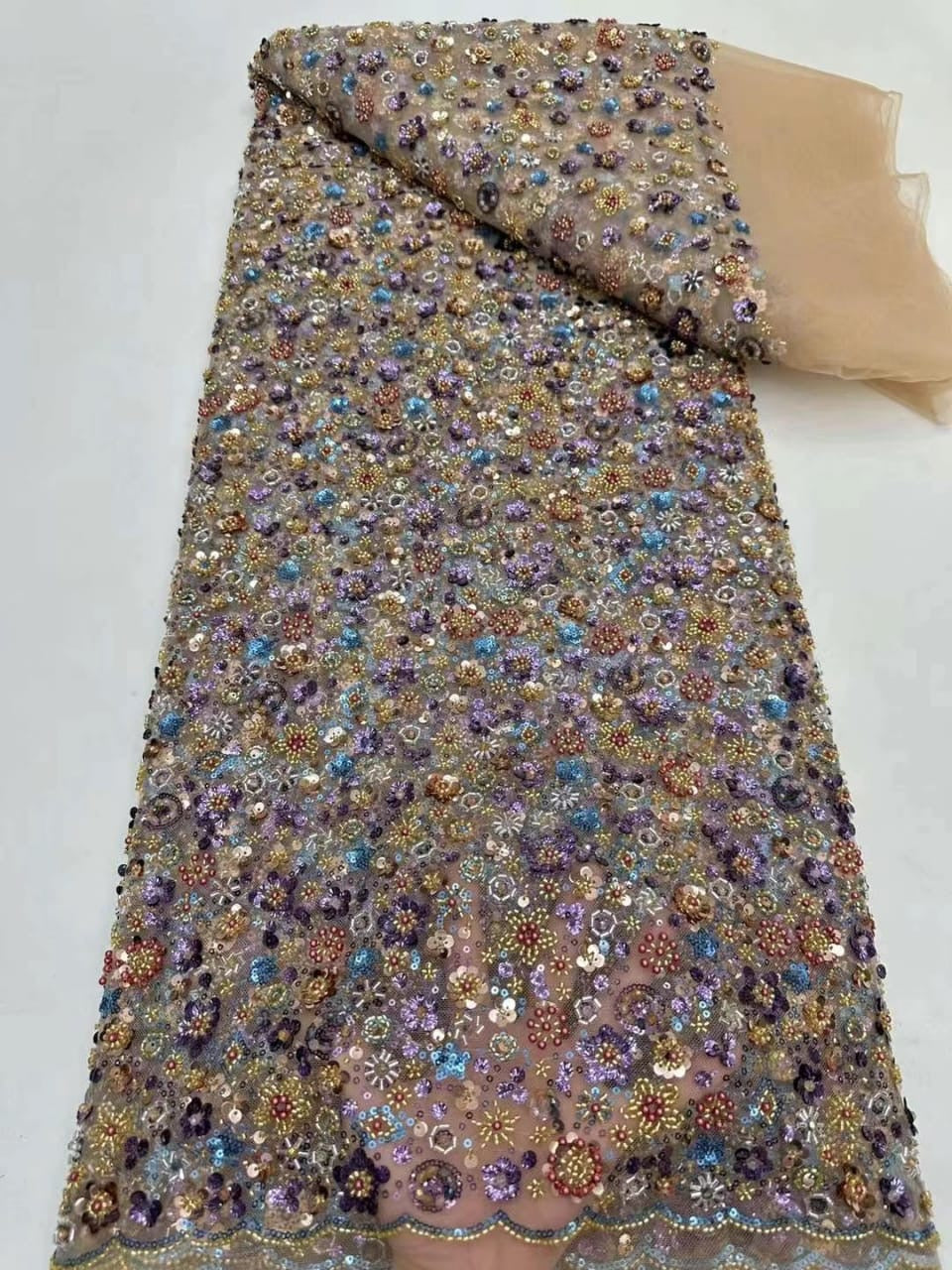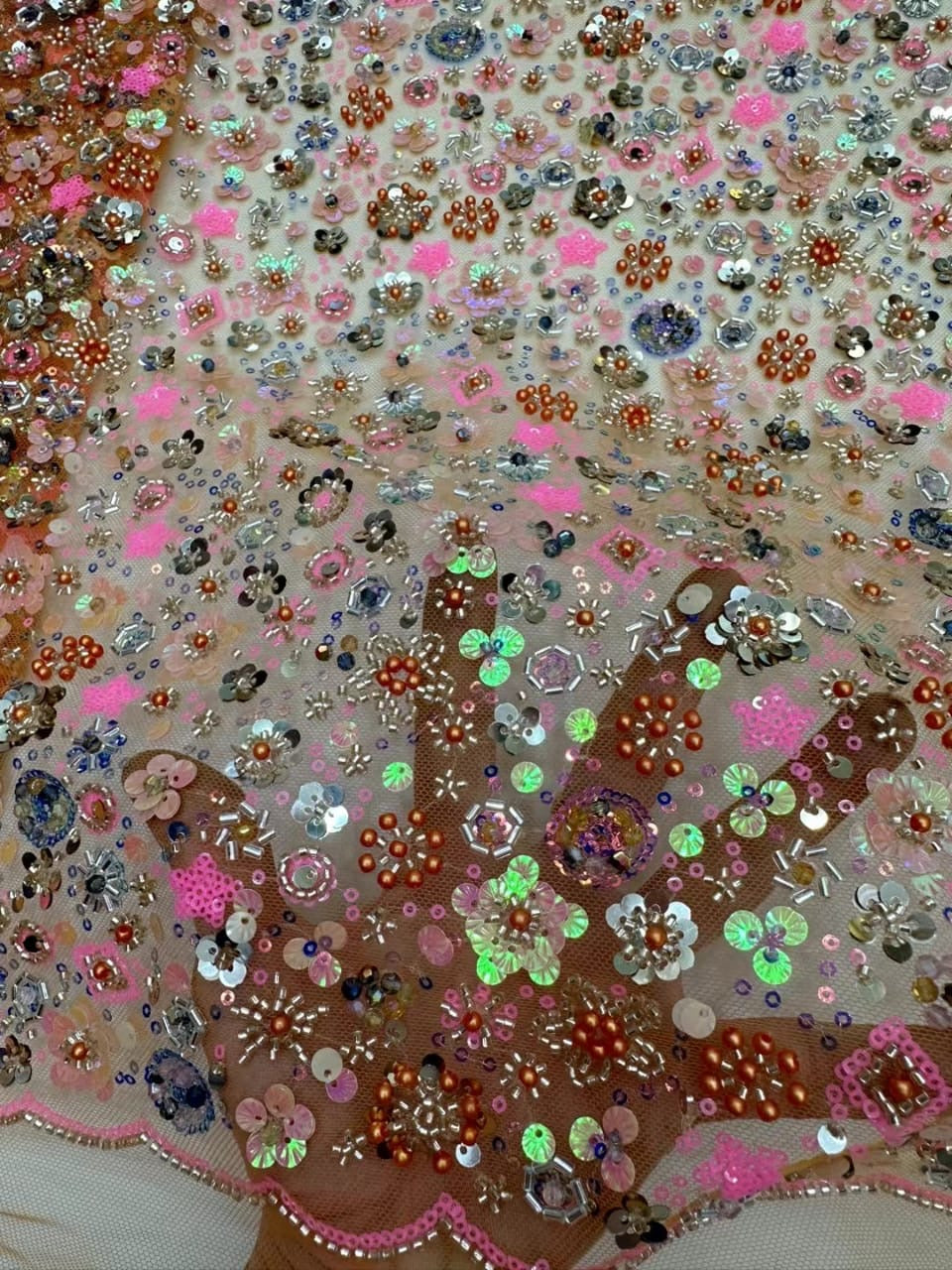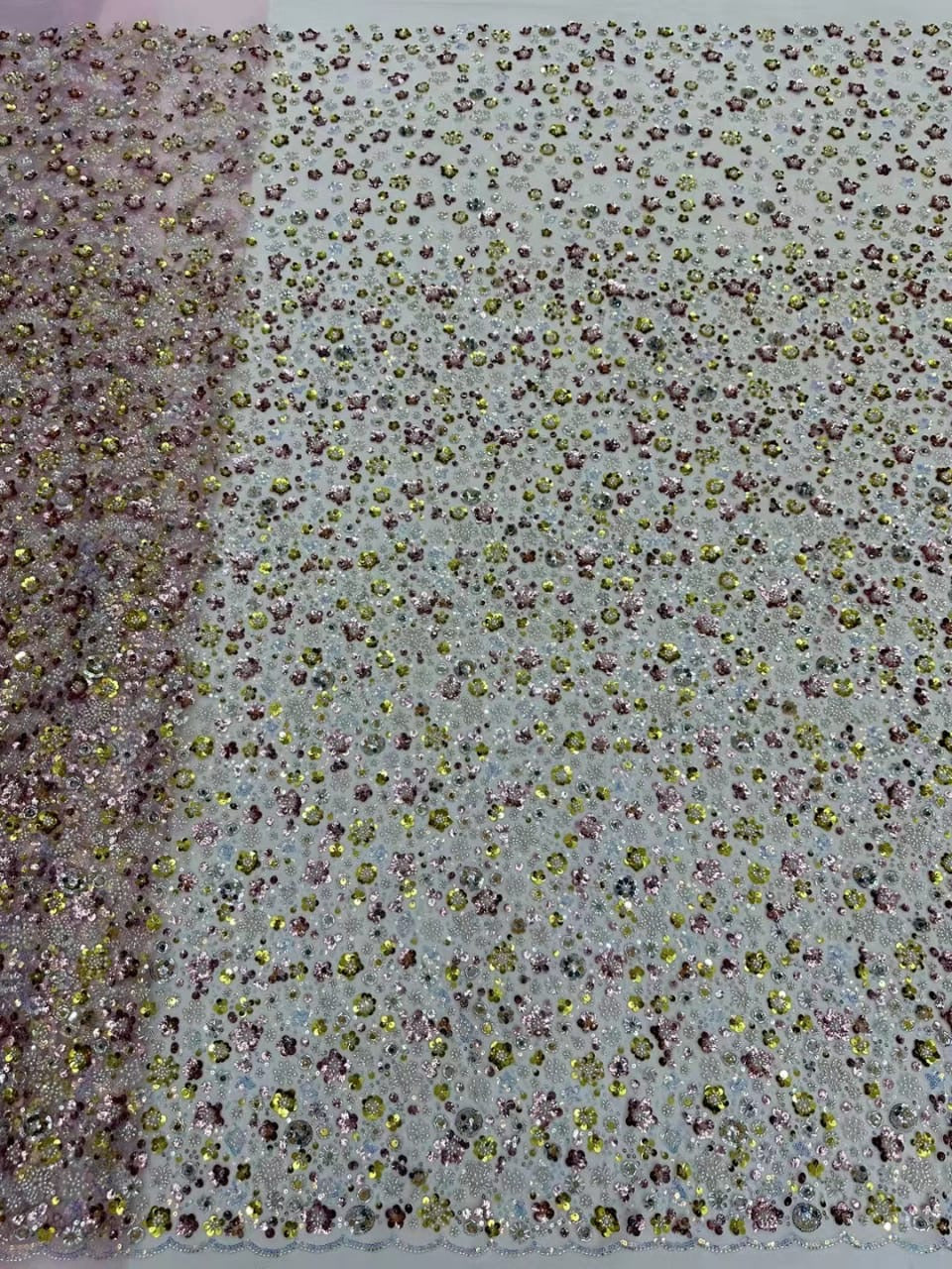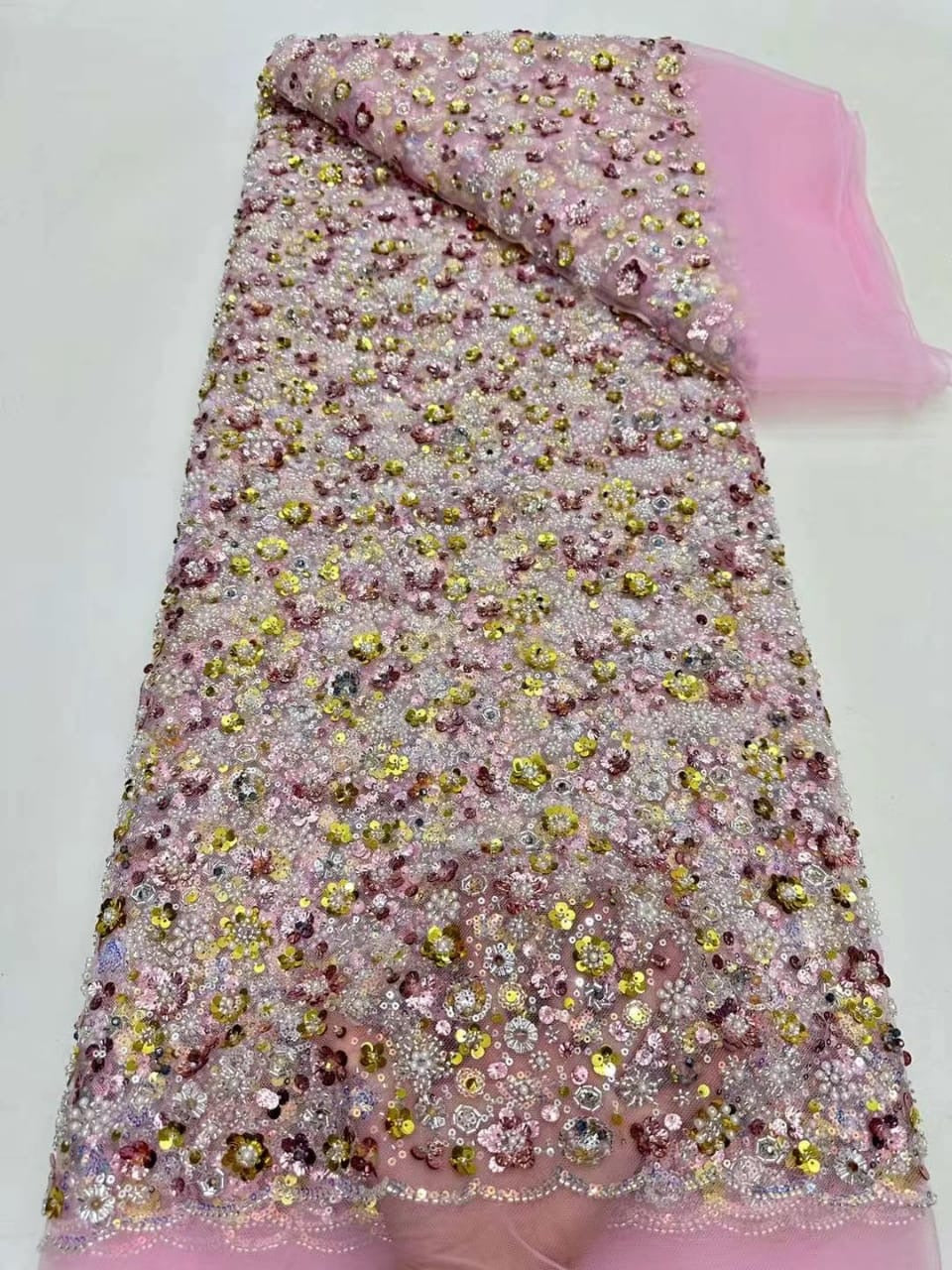 Esta tela de alta calidad se mide en 5 yardas con cuentas bordadas y lentejuelas. Es suave, muy delicado y bonito.