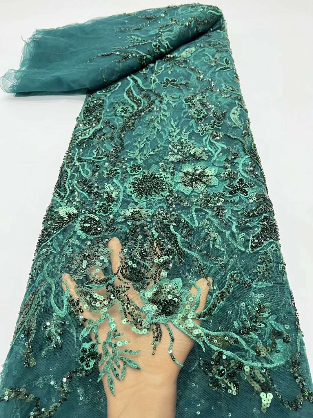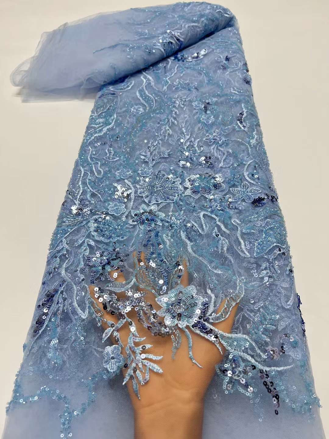 This high quality Fabric is measured in 5 Yards With Embroidered Beading and Sequin. It is soft, very delicate and beautiful.