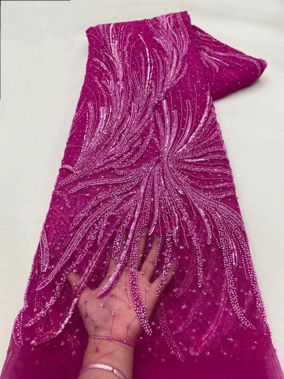 This high quality Fabric is measured in 5 Yards With Embroidered Beading and Sequin. It is soft, very delicate and beautiful.