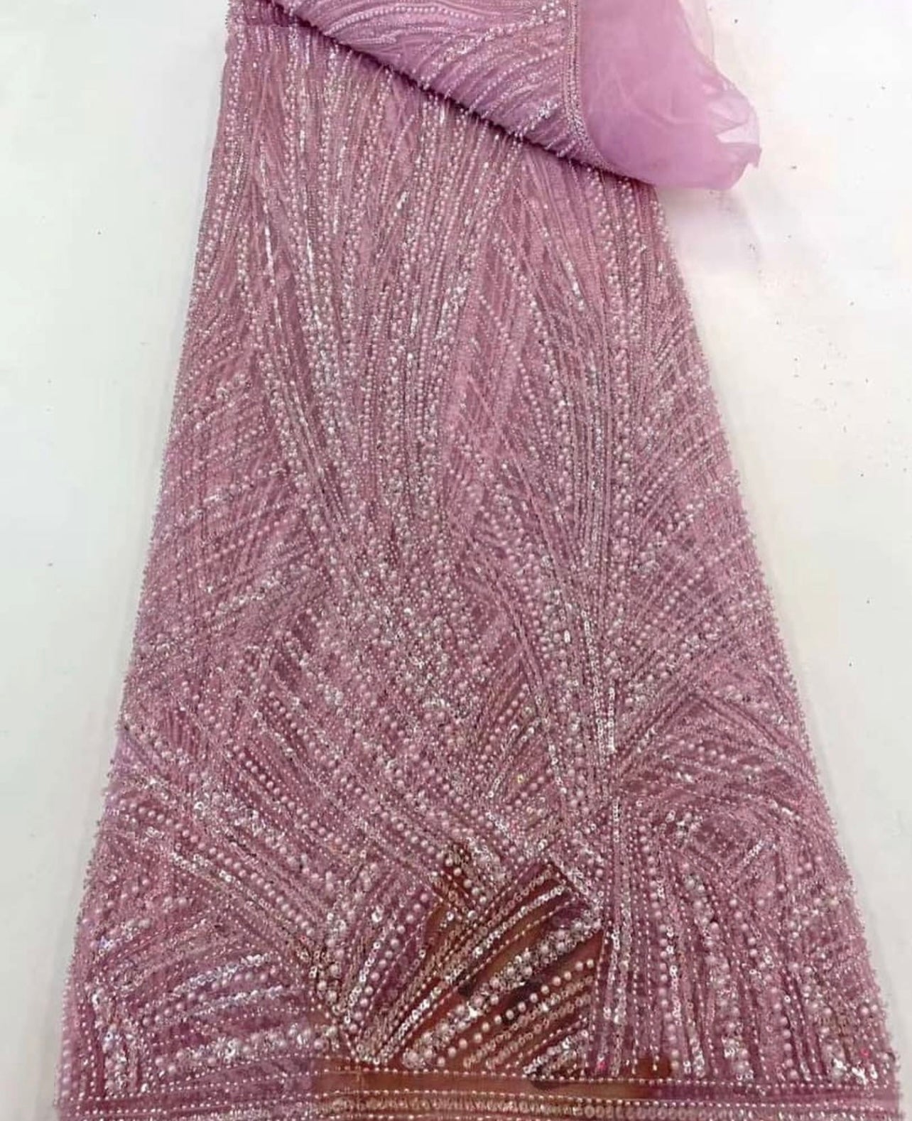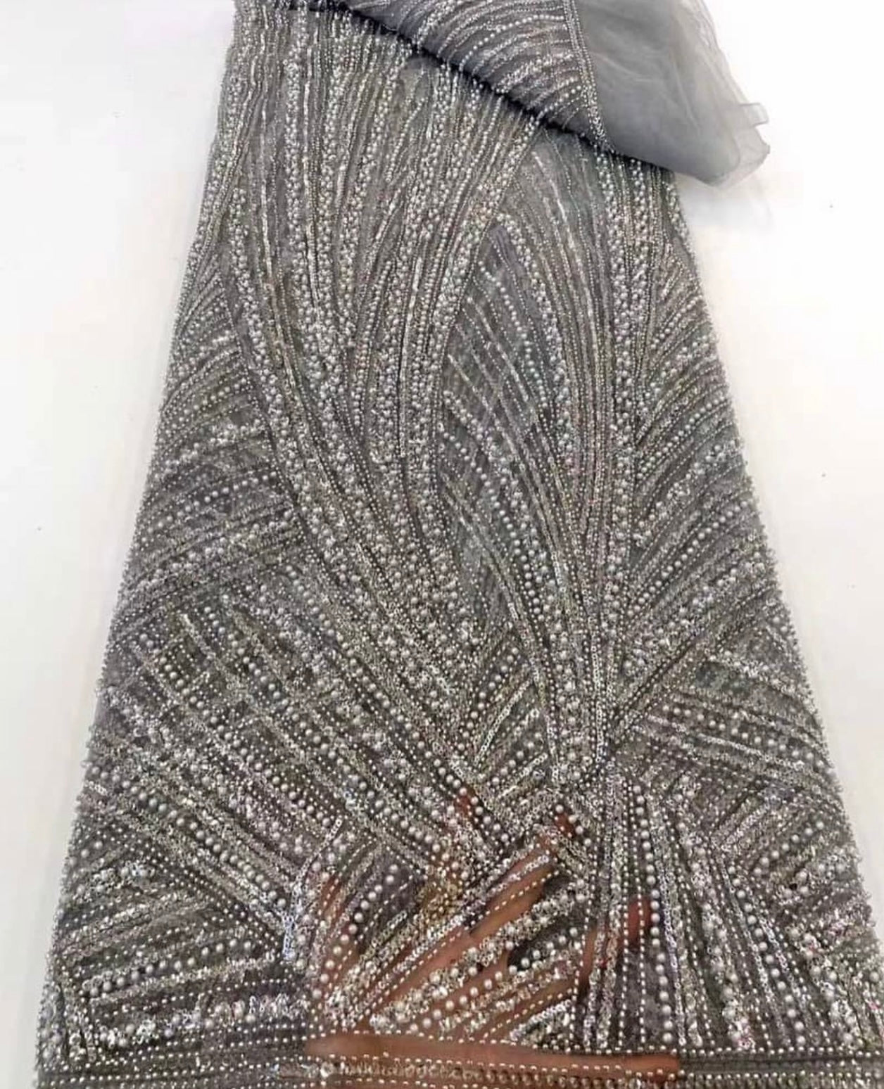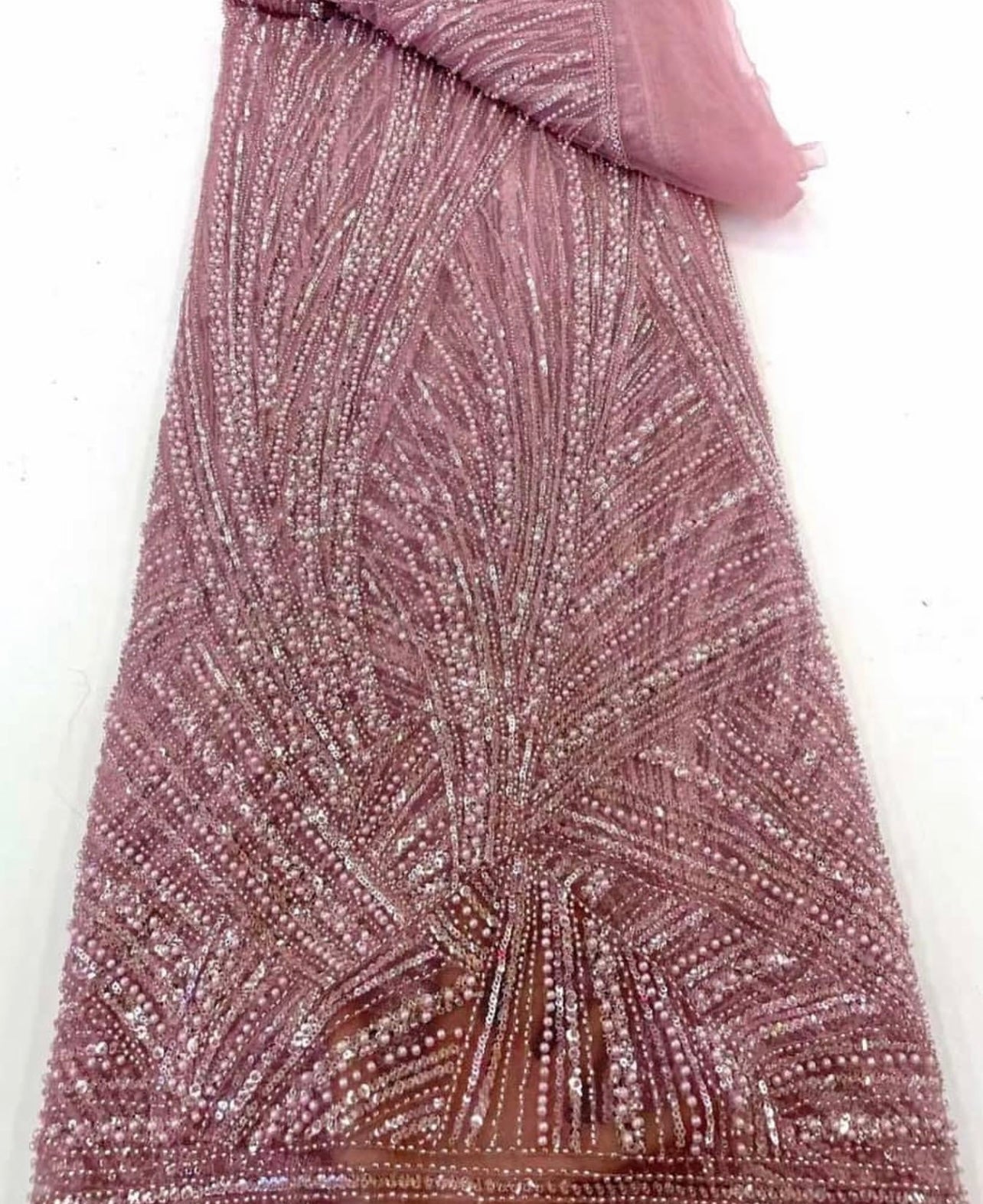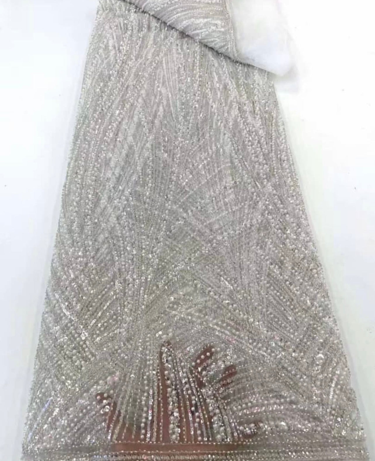 Esta tela de alta calidad se mide en 5 yardas con cuentas bordadas y lentejuelas. Es suave, muy delicado y bonito.