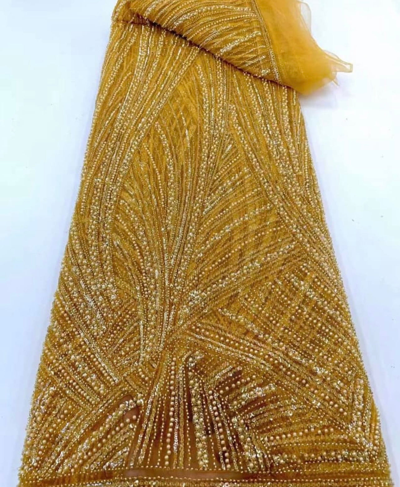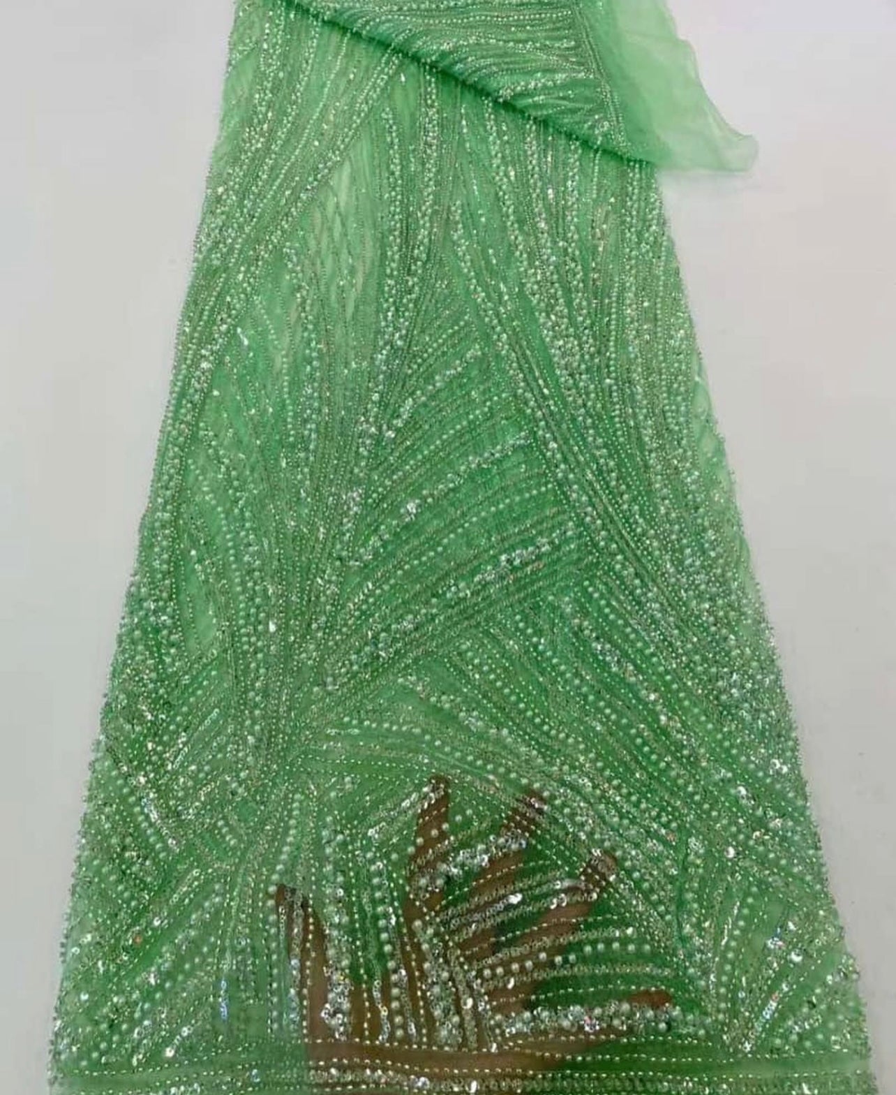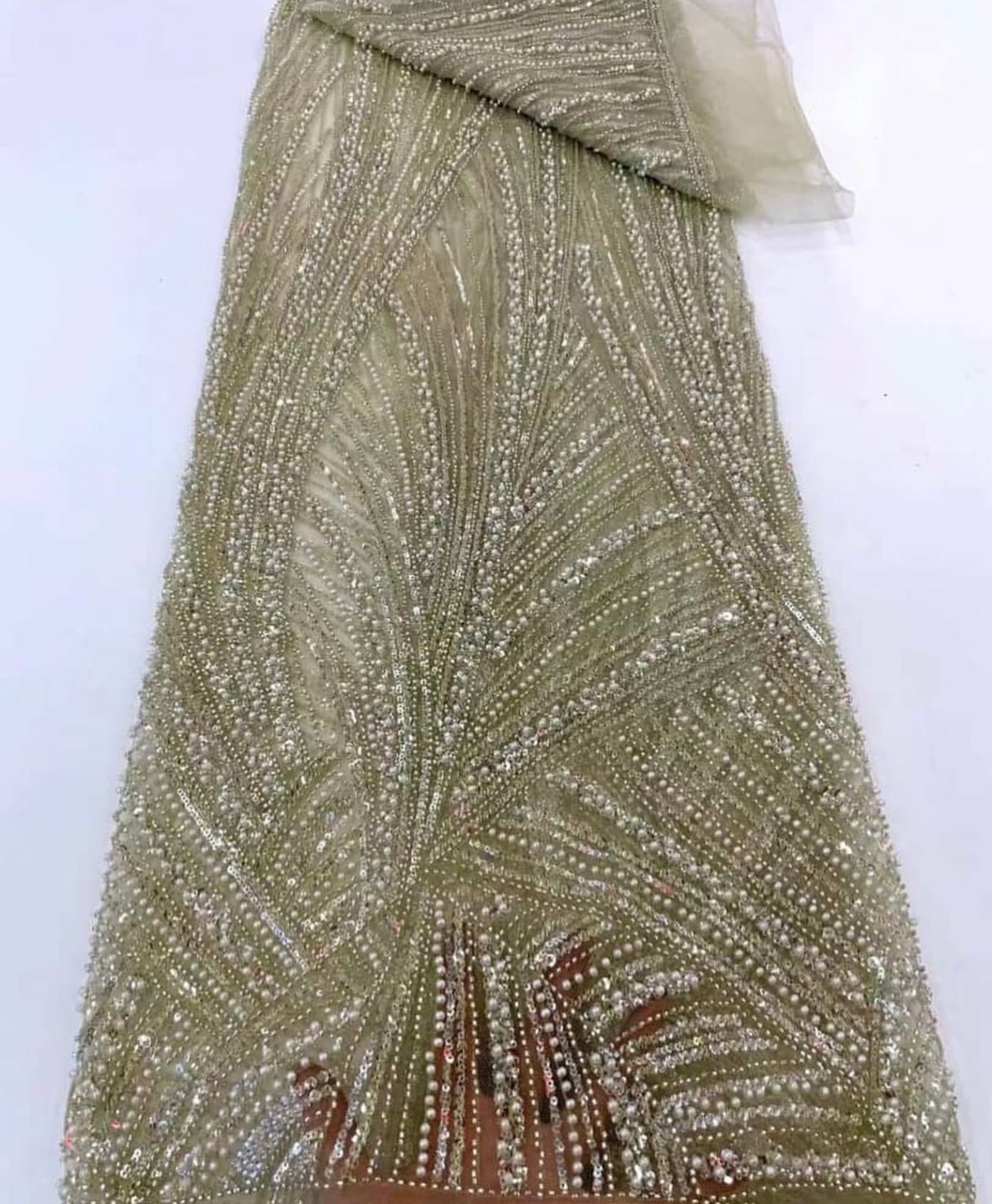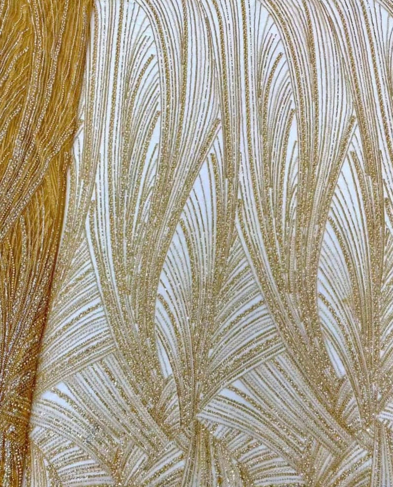 Esta tela de alta calidad se mide en 5 yardas con cuentas bordadas y lentejuelas. Es suave, muy delicado y bonito.