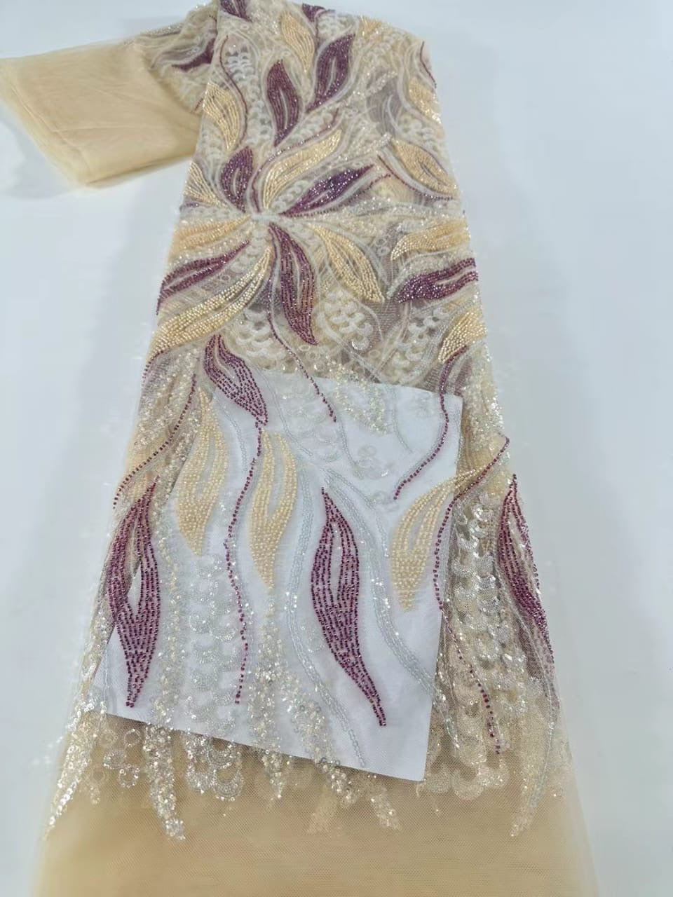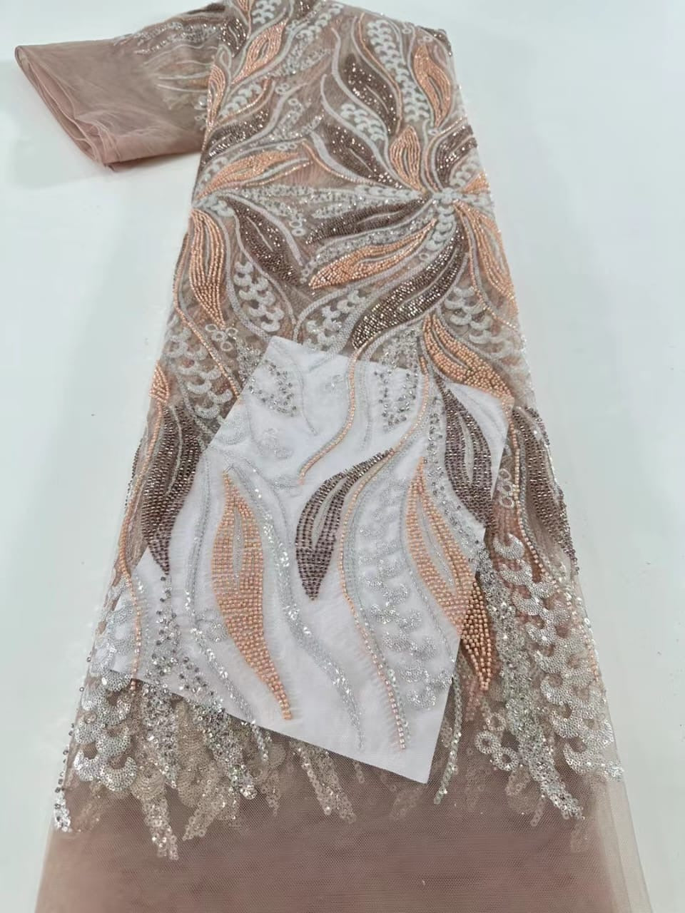This high quality Fabric is measured in 5 Yards With Embroidered Beading and Sequin. It is soft, very delicate and beautiful.