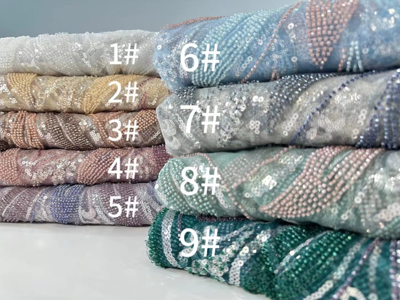 This high Quality Fabric is made with Fashion embroidered rhinestones can be used in making party wedding dresses, skirts, shawls, scarves and other other fashion apparels as you would like.