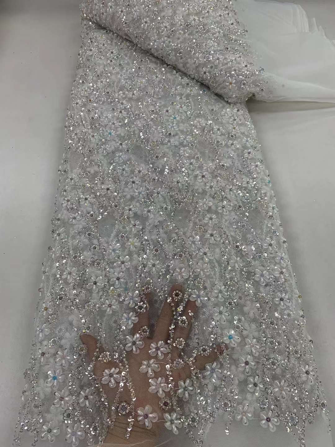 This high quality Fabric is measured in 5 Yards With Embroidered Beading and Sequin. It is soft, very delicate and beautiful.