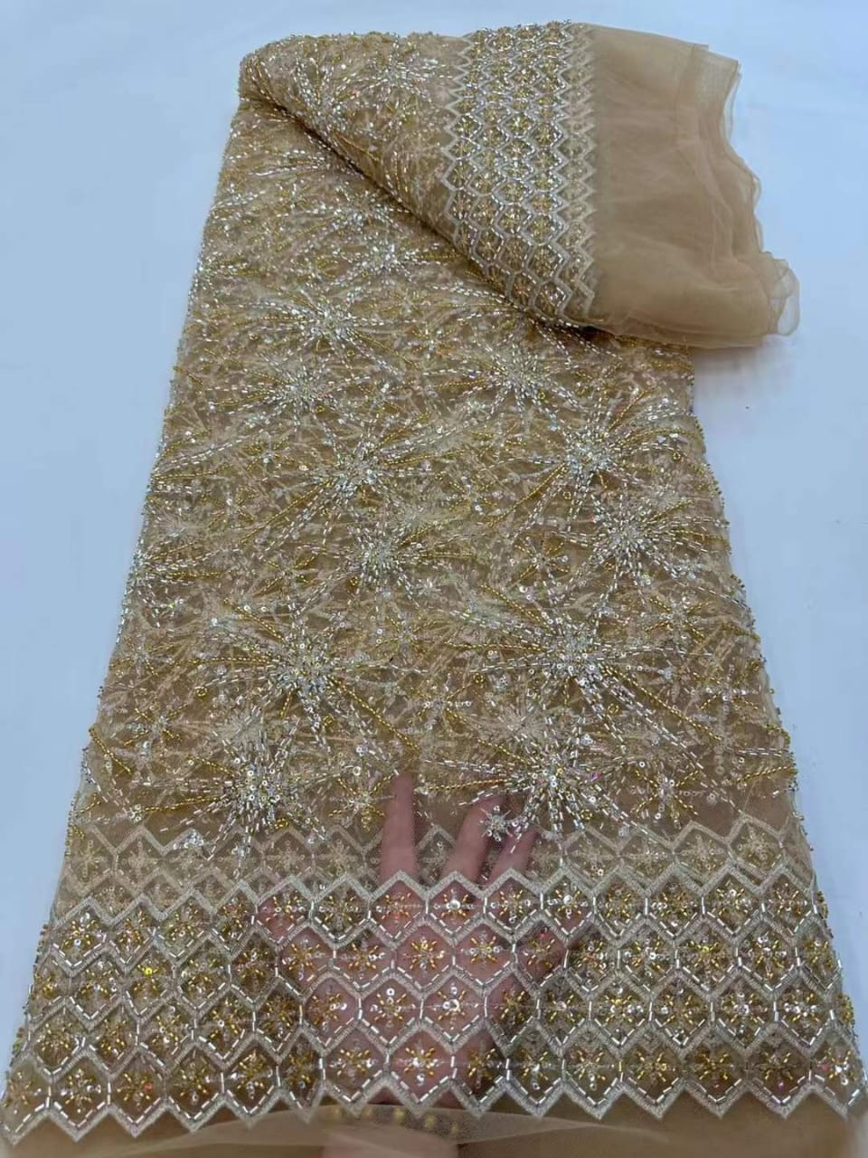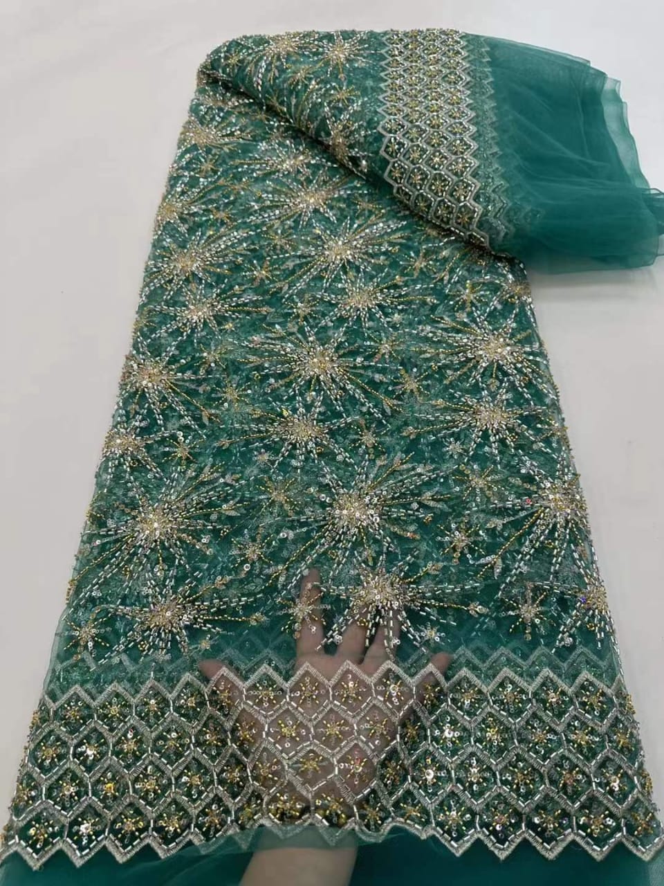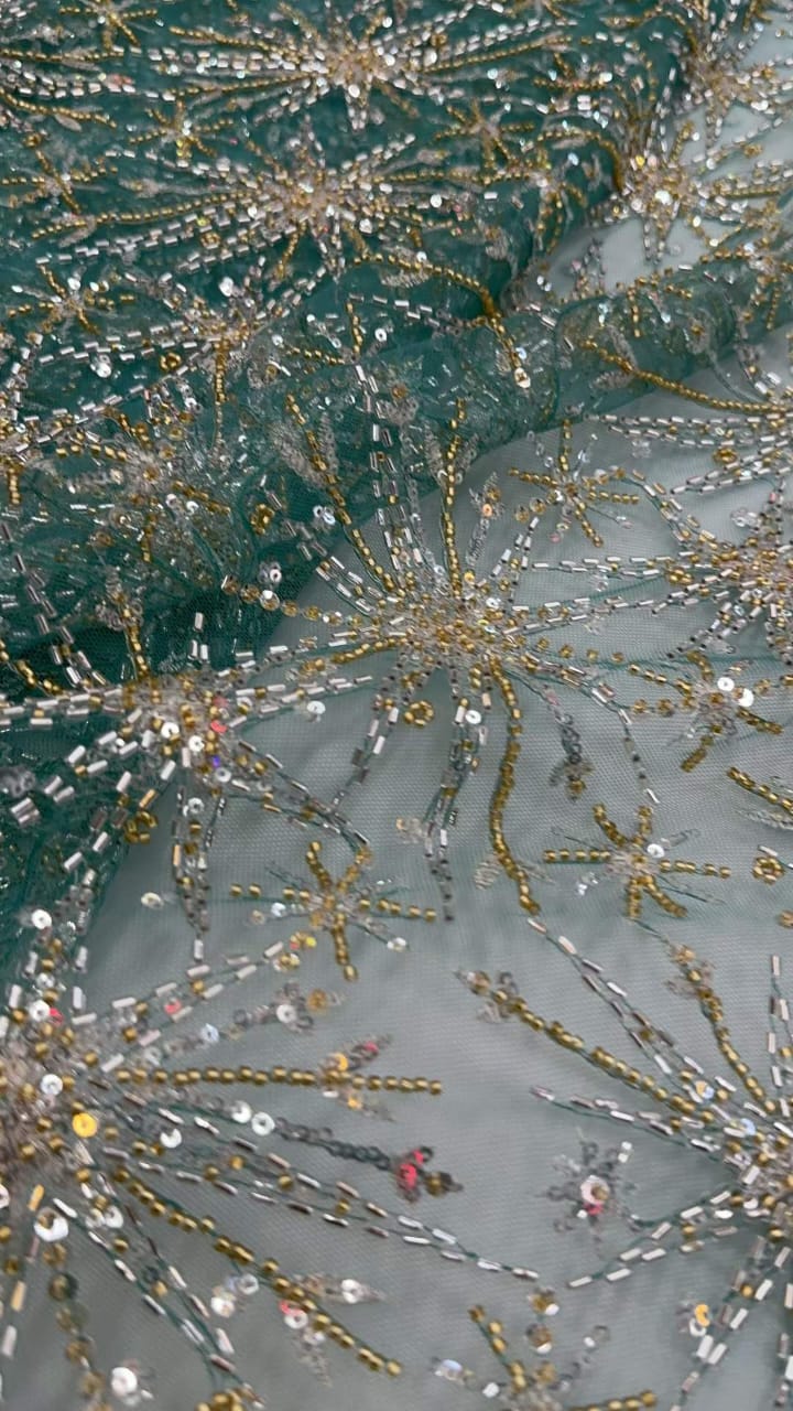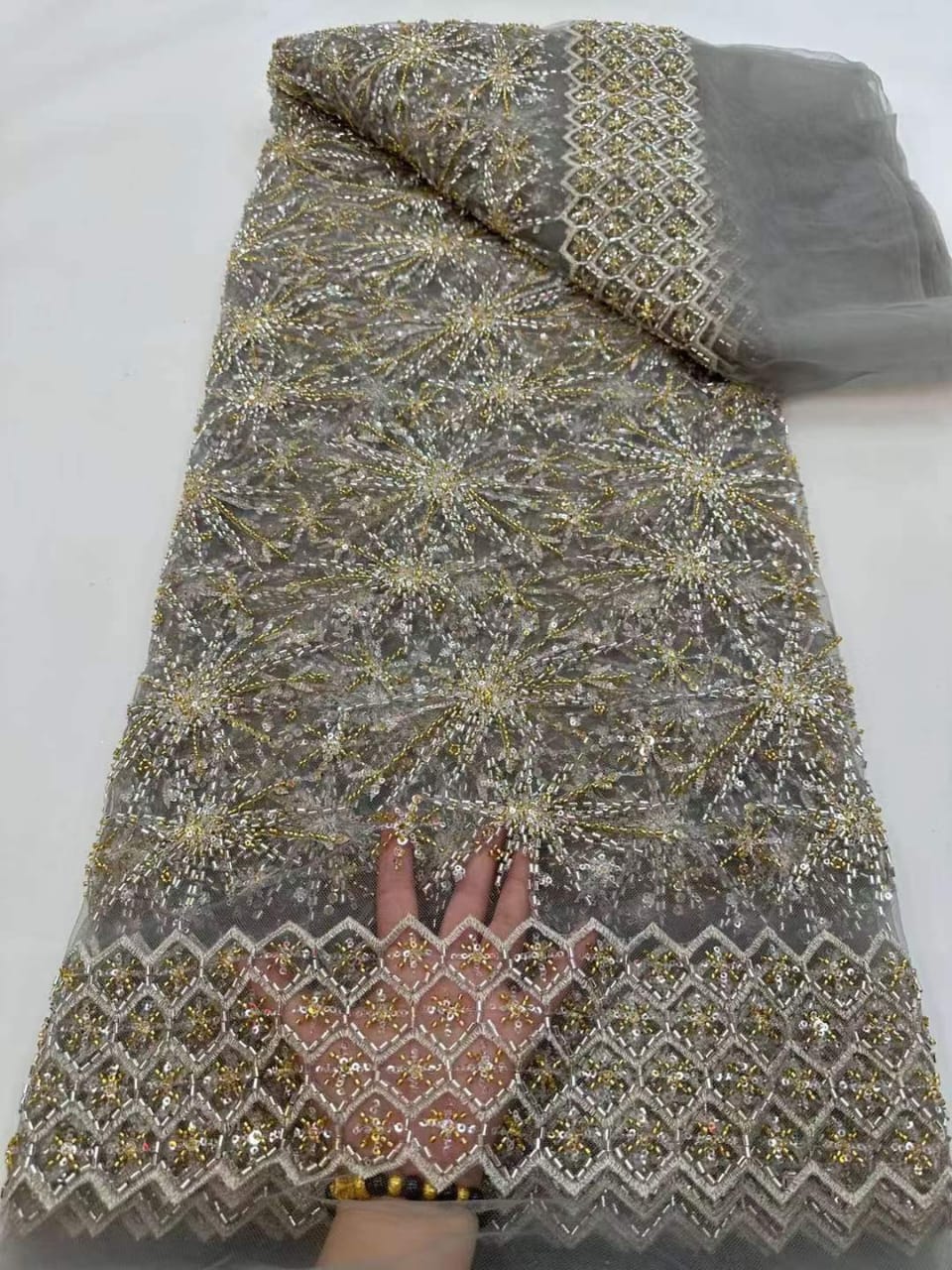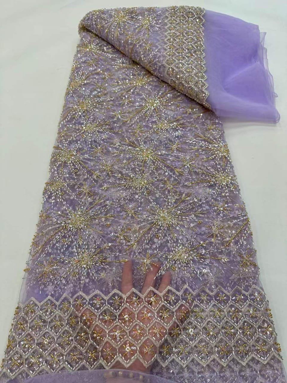 Esta tela de alta calidad se mide en 5 yardas con cuentas bordadas y lentejuelas. Es suave, muy delicado y bonito.