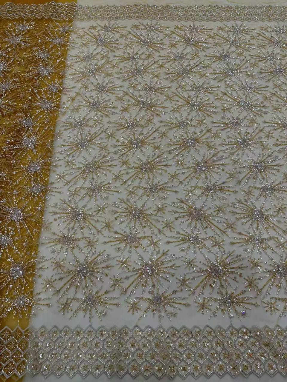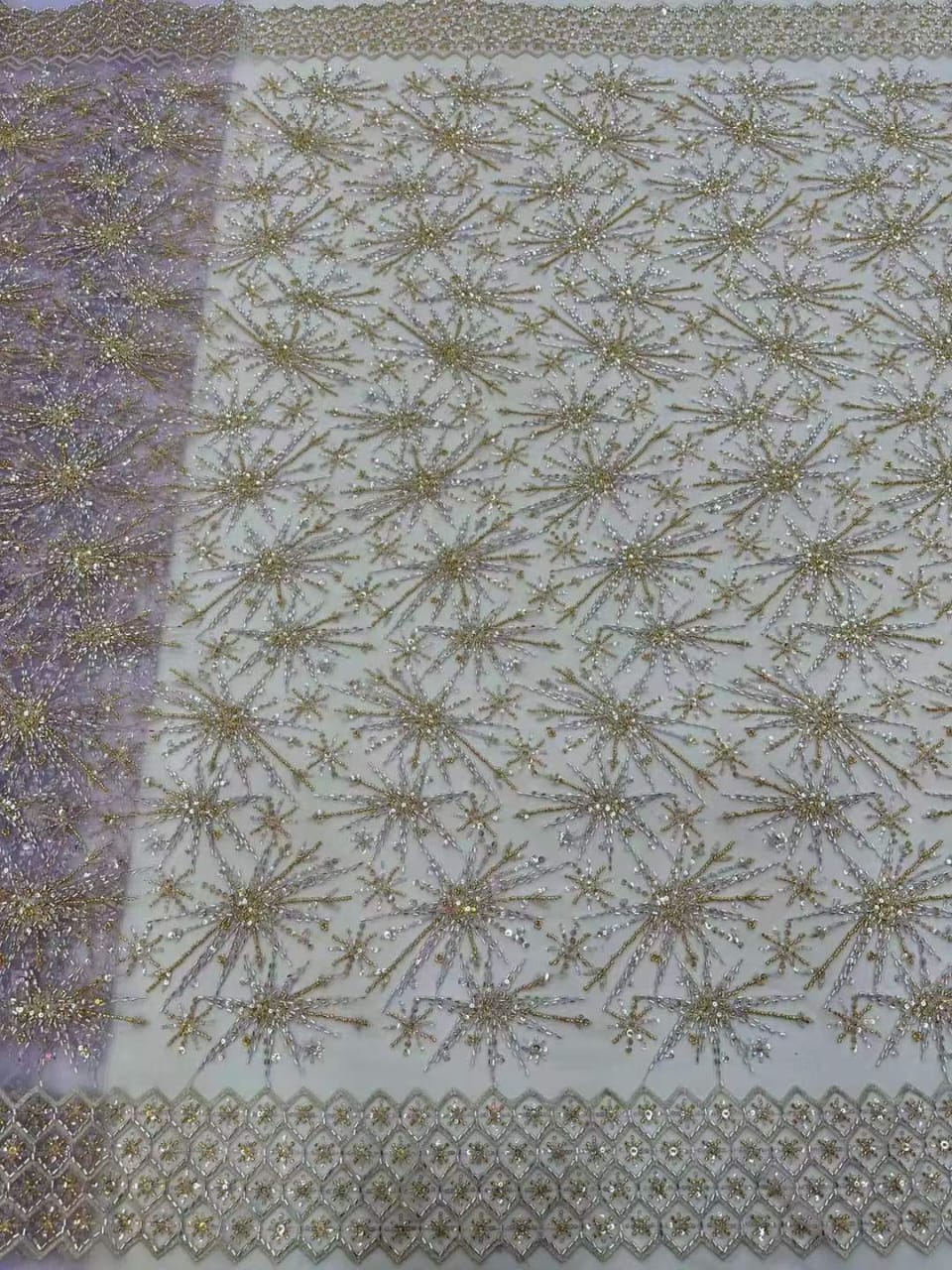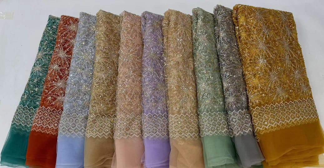 Esta tela de alta calidad está hecha con pedrería bordada a la moda y se puede usar para hacer vestidos de novia, faldas, chales, bufandas y otras prendas de moda que desee.