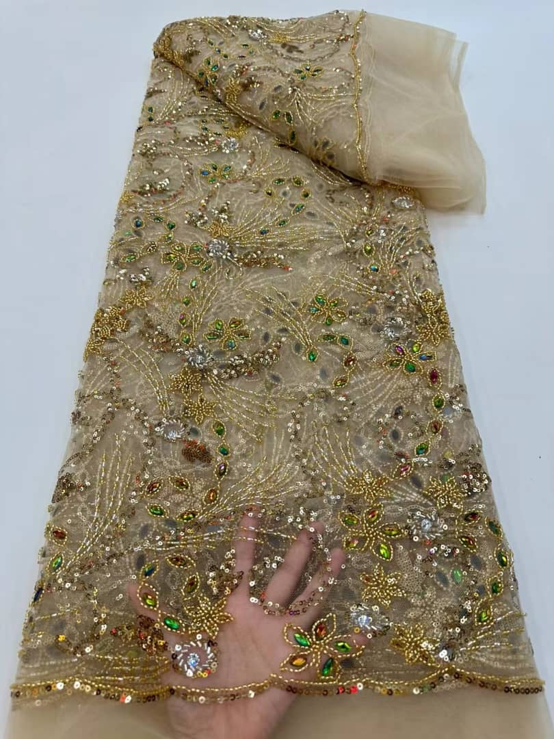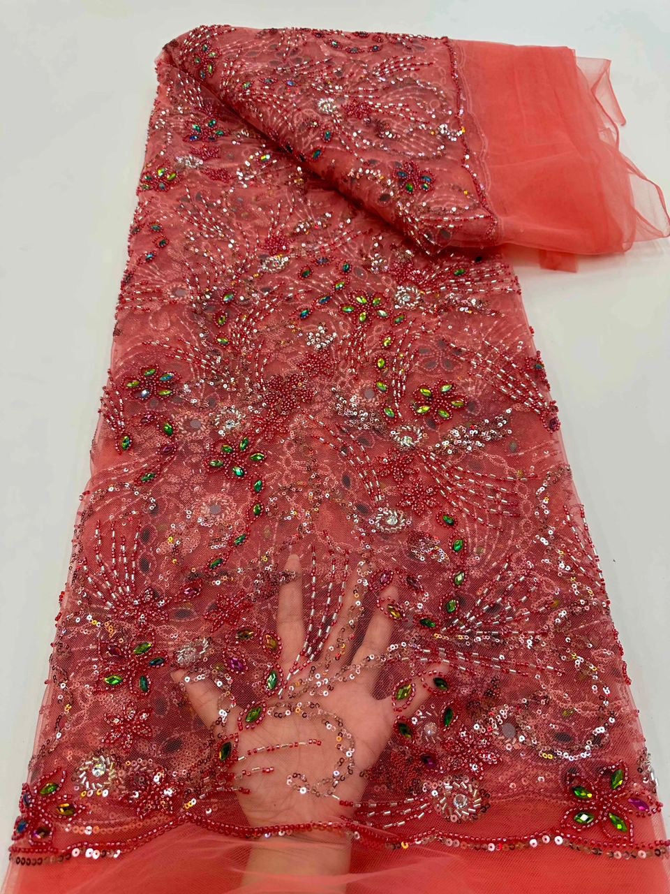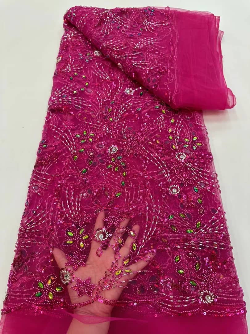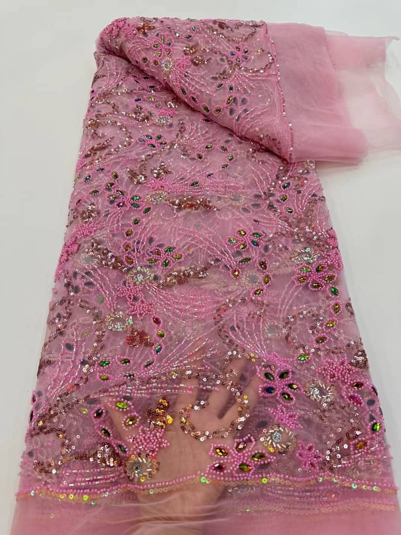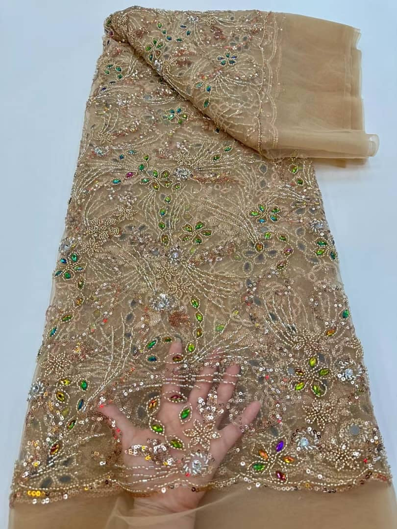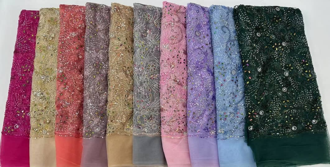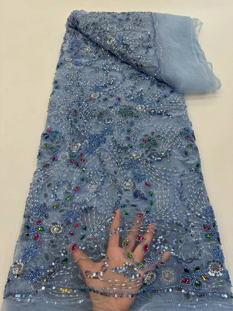 This high quality Fabric is measured in 5 Yards With Embroidered Beading and Sequin. It is soft, very delicate and beautiful.
