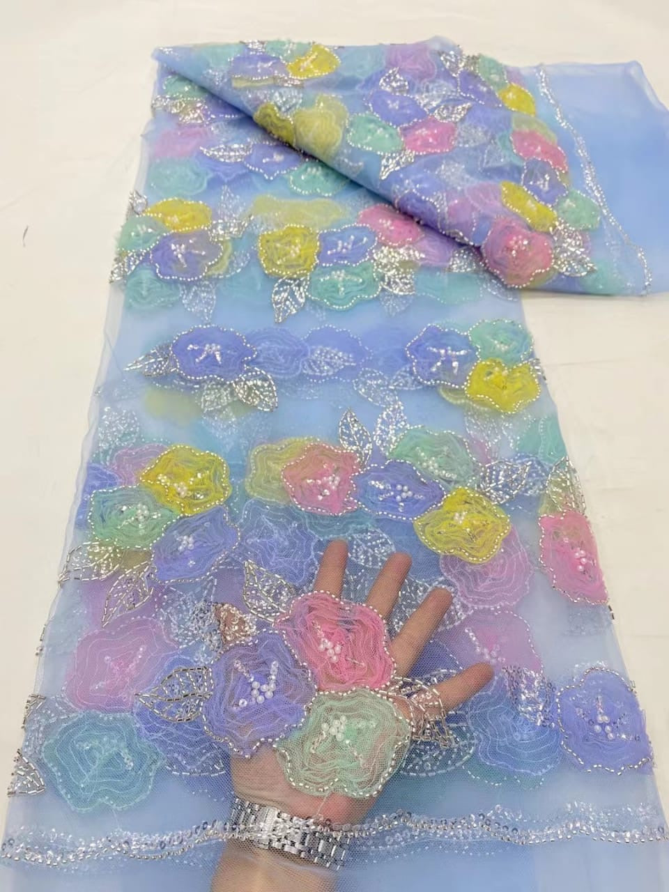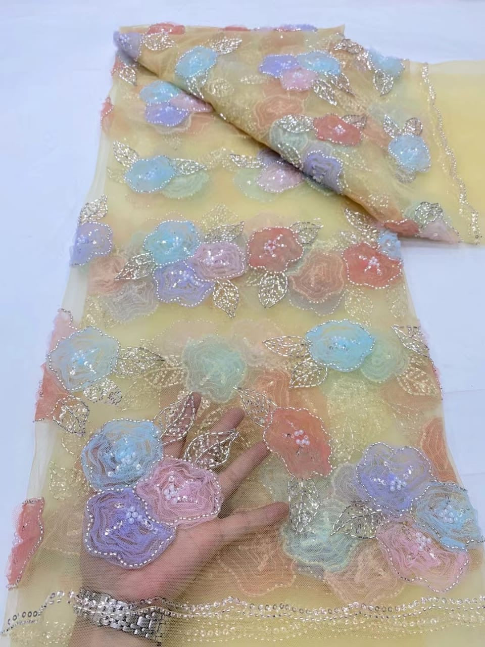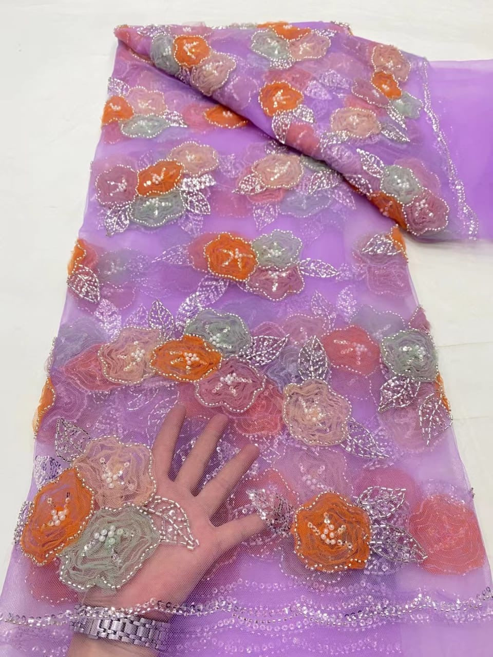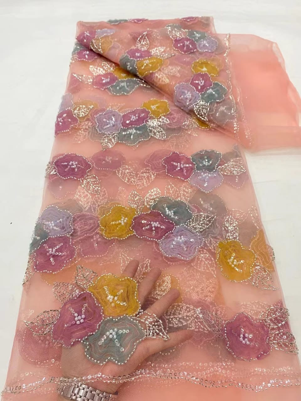 Esta tela de alta calidad se mide en 5 yardas con cuentas bordadas y lentejuelas. Es suave, muy delicado y bonito.