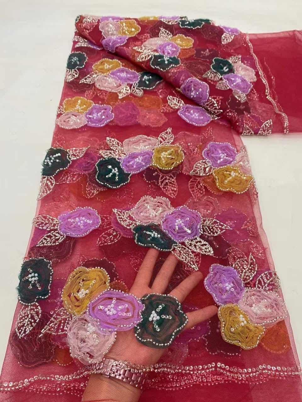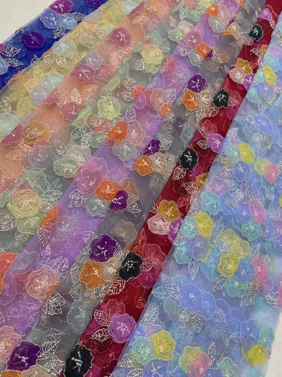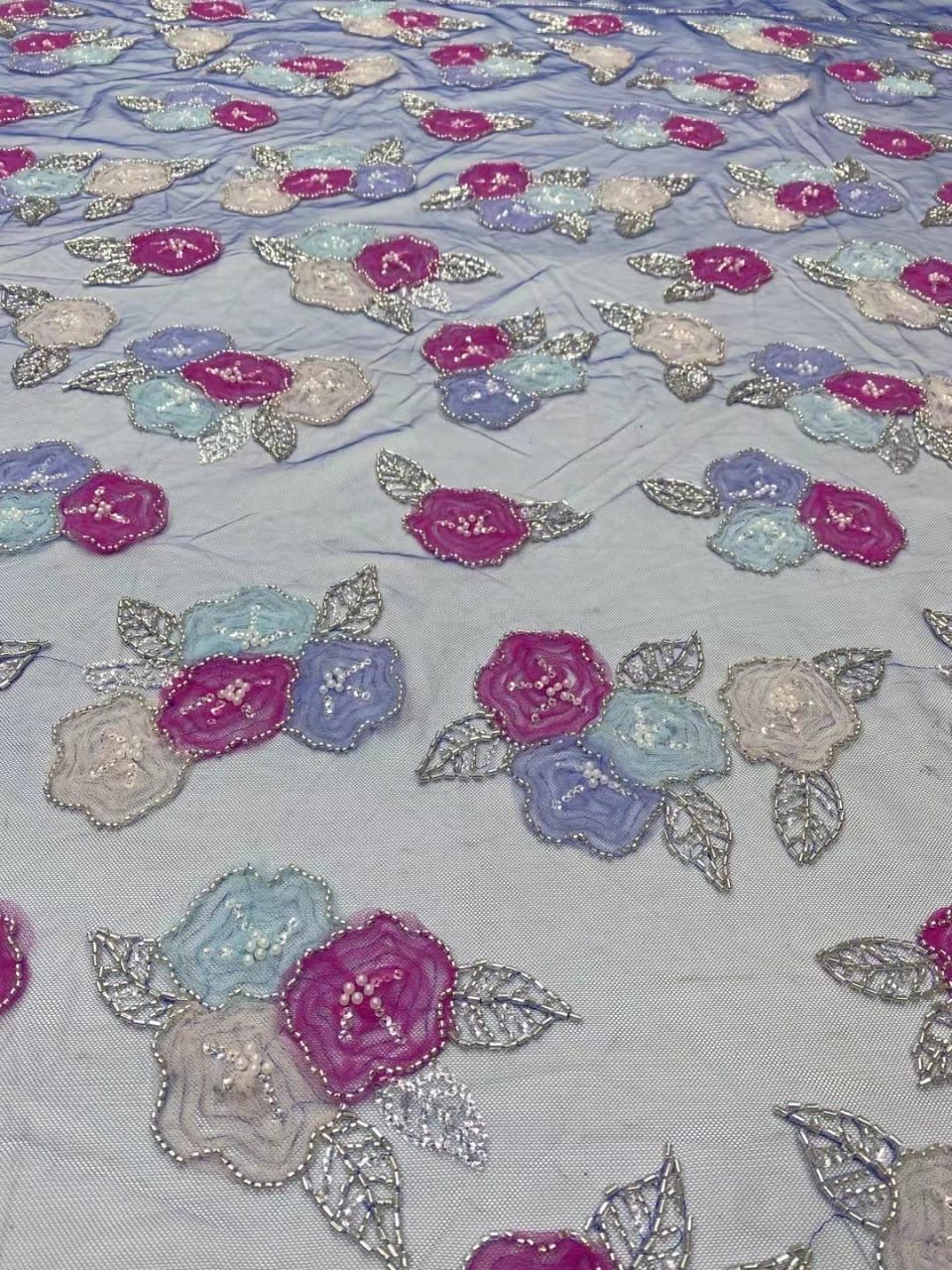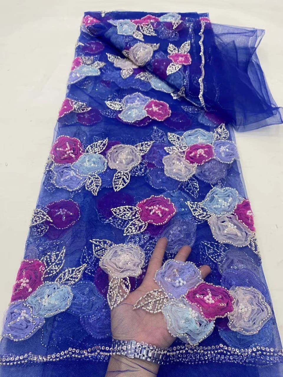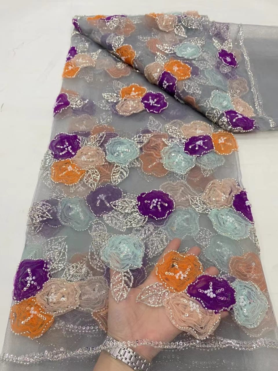 Esta tela de alta calidad se mide en 5 yardas con cuentas bordadas y lentejuelas. Es suave, muy delicado y bonito.