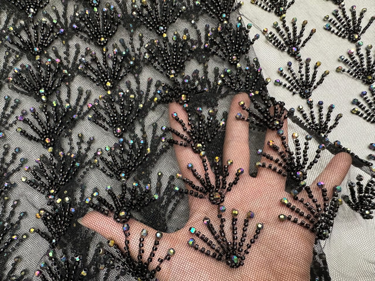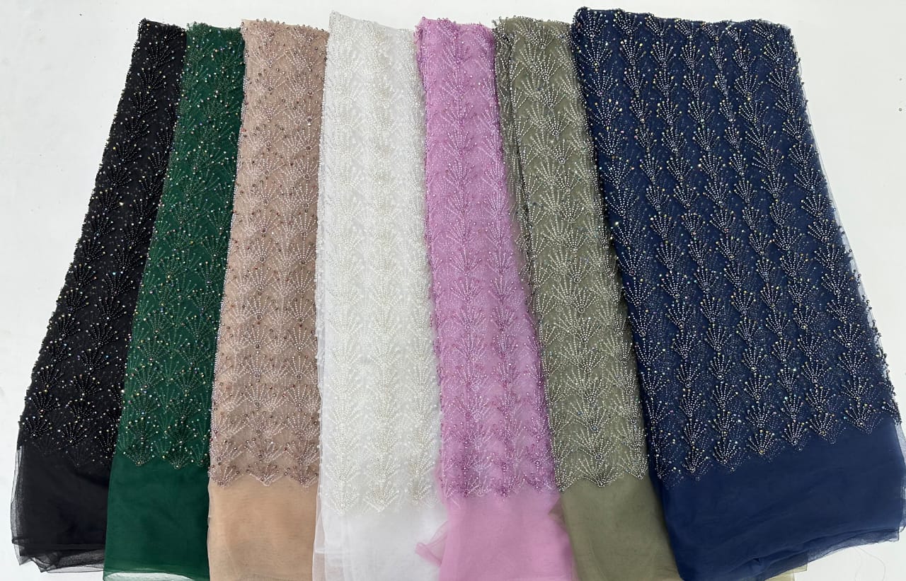 Esta tela de alta calidad está hecha con pedrería bordada a la moda y se puede usar para hacer vestidos de novia, faldas, chales, bufandas y otras prendas de moda que desee.
