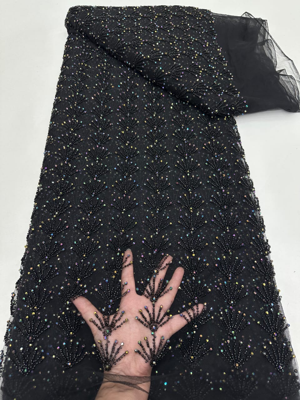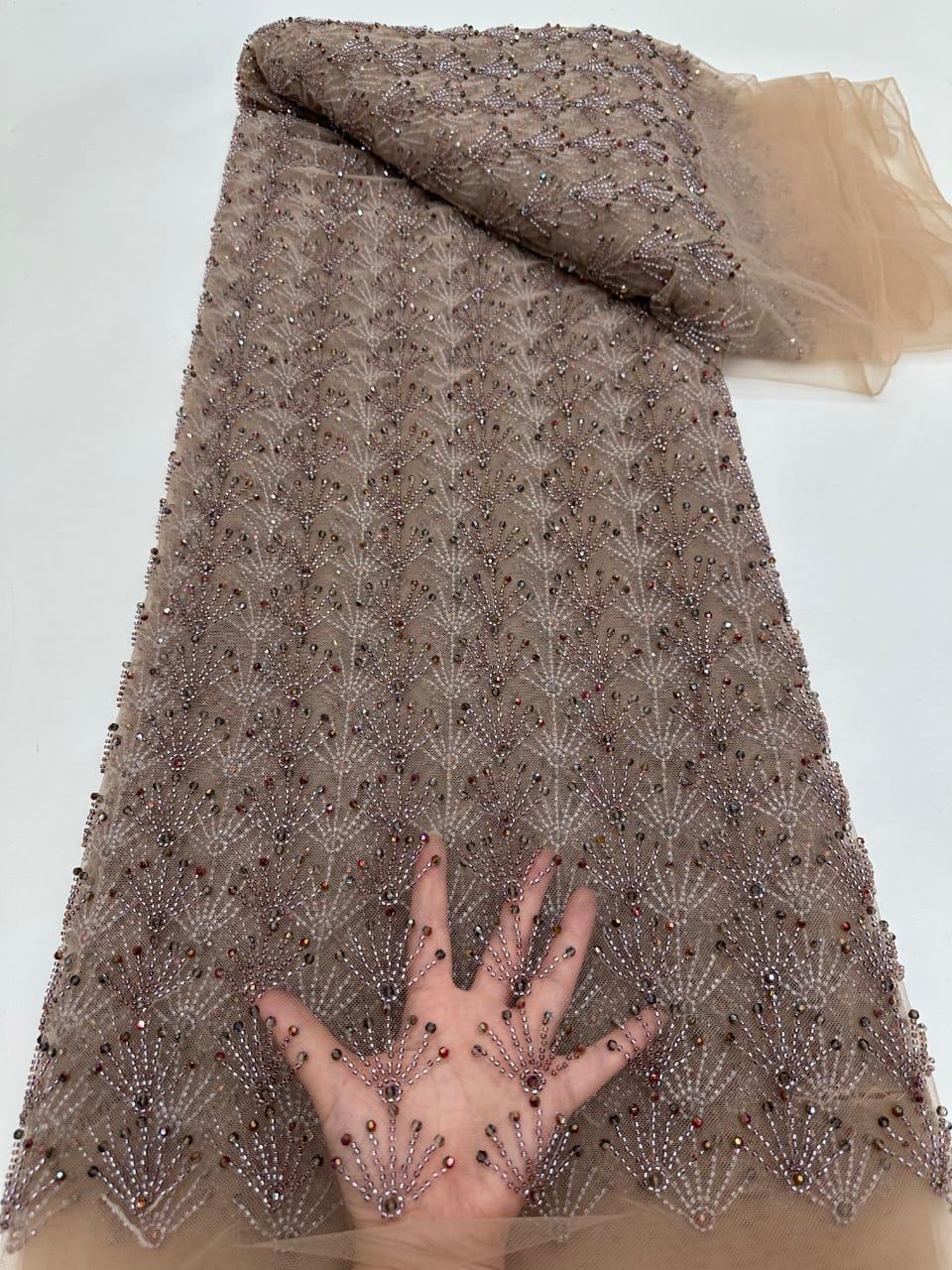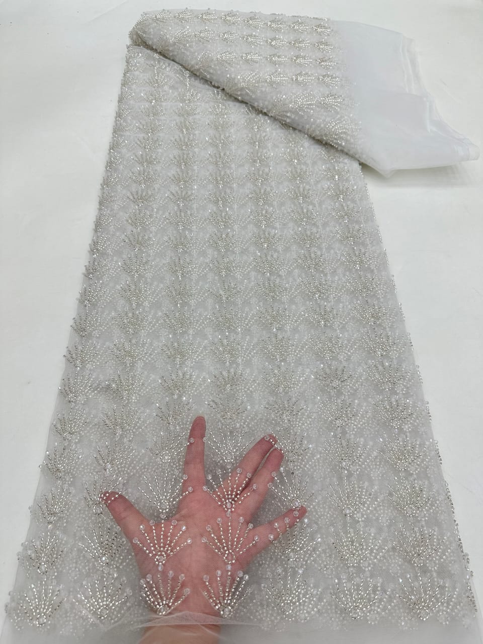 Esta tela de alta calidad se mide en 5 yardas con cuentas bordadas y lentejuelas. Es suave, muy delicado y bonito.