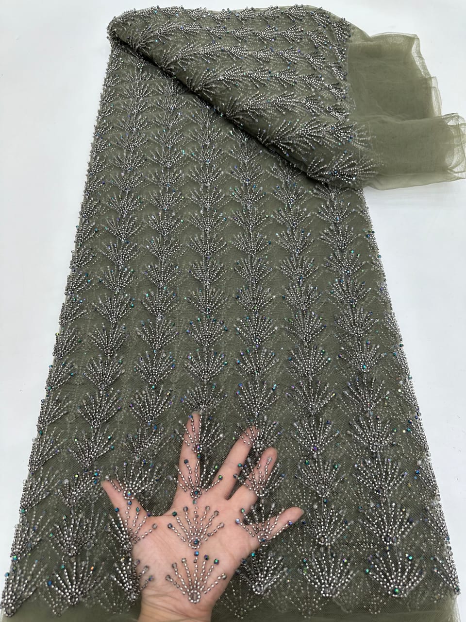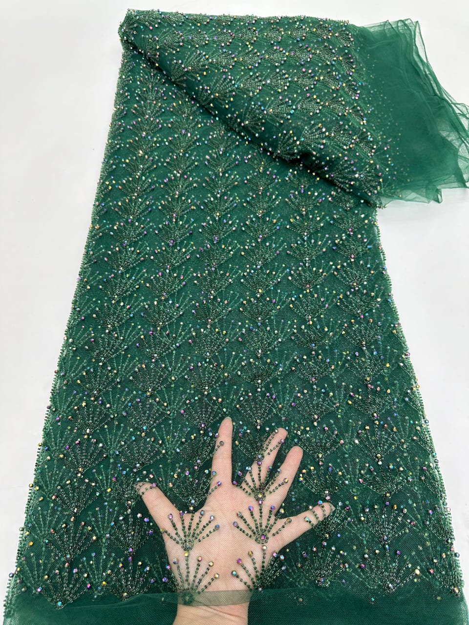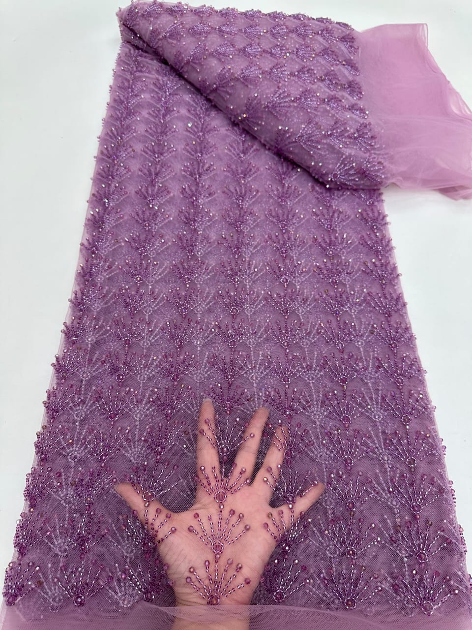 Esta tela de alta calidad se mide en 5 yardas con cuentas bordadas y lentejuelas. Es suave, muy delicado y bonito.