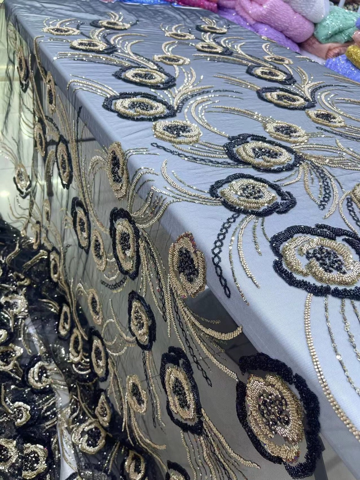 This high Quality Fabric is made with Fashion embroidered rhinestones can be used in making party wedding dresses, skirts, shawls, scarves and other other fashion apparels as you would like.