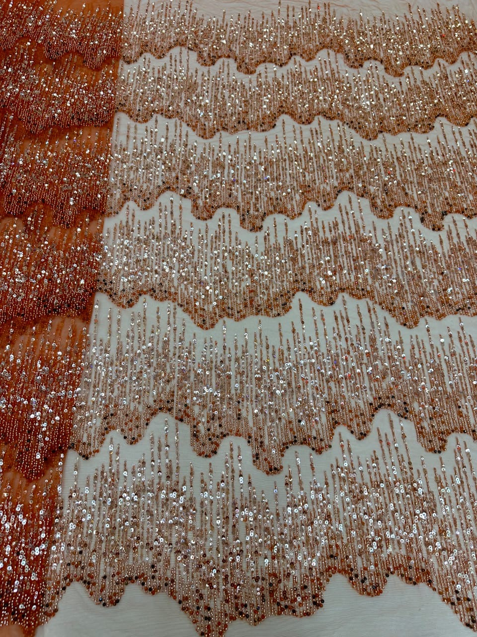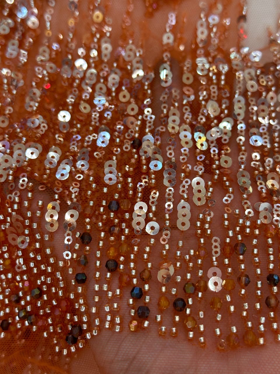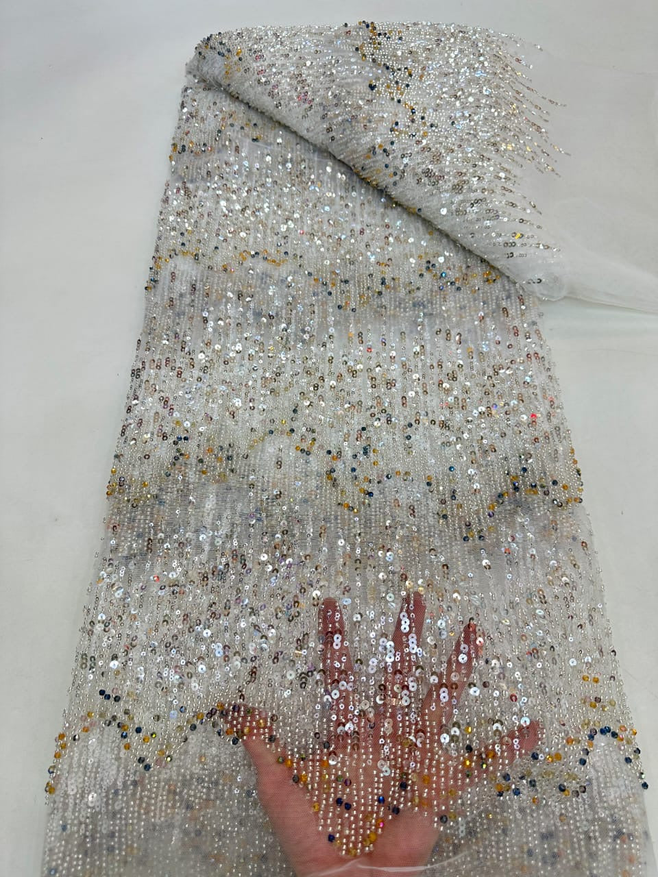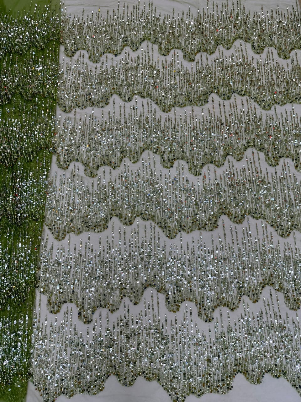 Esta tela de alta calidad se mide en 5 yardas con cuentas bordadas y lentejuelas. Es suave, muy delicado y bonito.