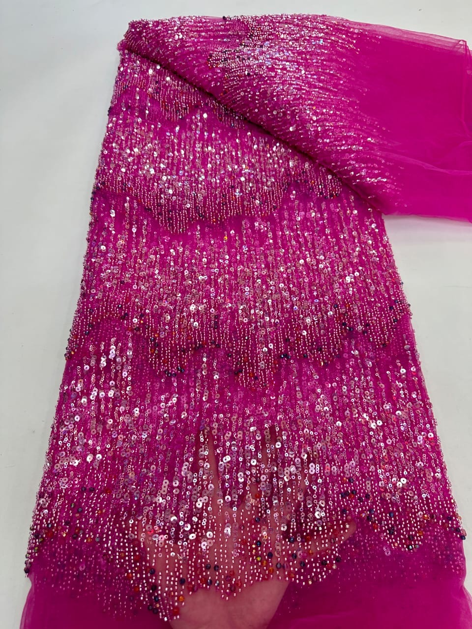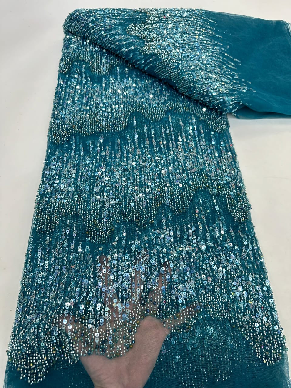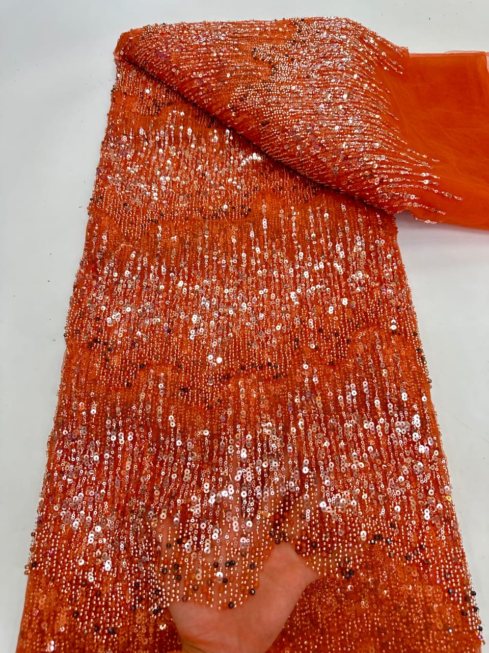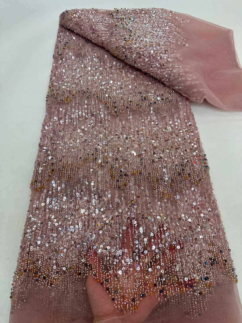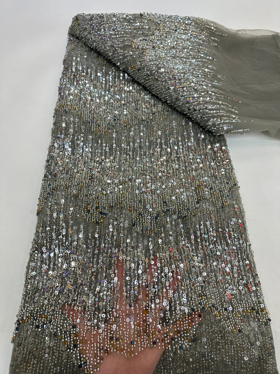 Esta tela de alta calidad se mide en 5 yardas con cuentas bordadas y lentejuelas. Es suave, muy delicado y bonito.