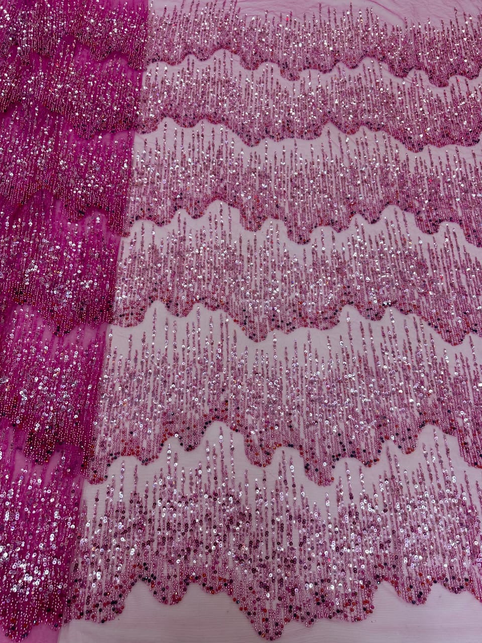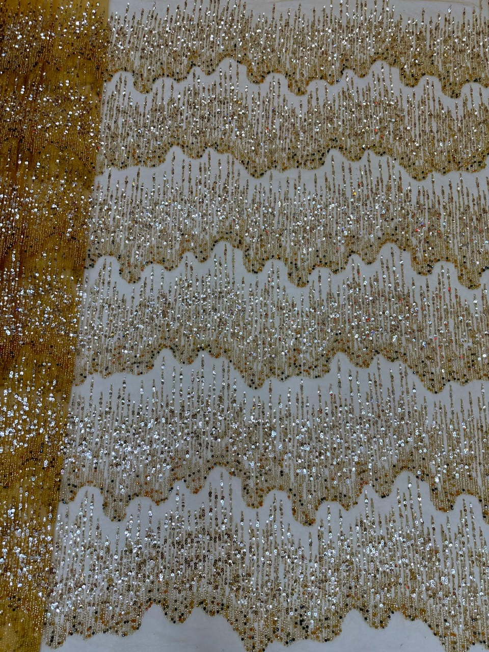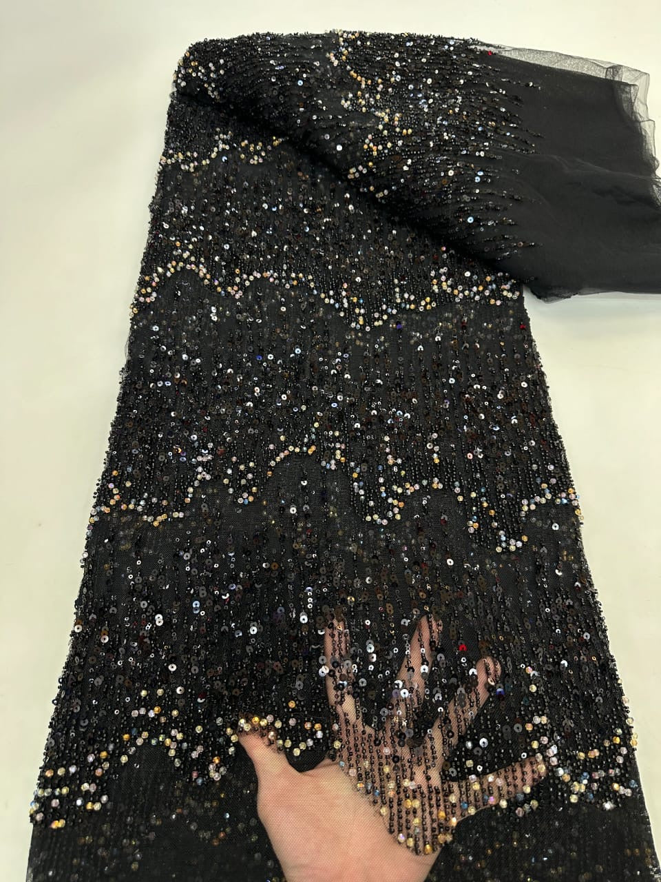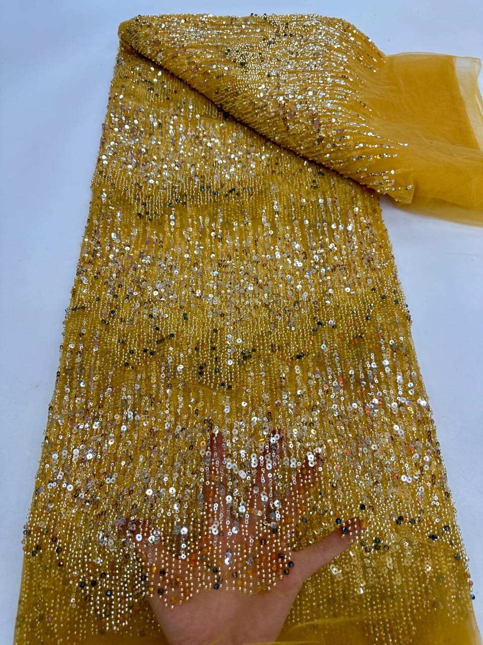 Esta tela de alta calidad se mide en 5 yardas con cuentas bordadas y lentejuelas. Es suave, muy delicado y bonito.