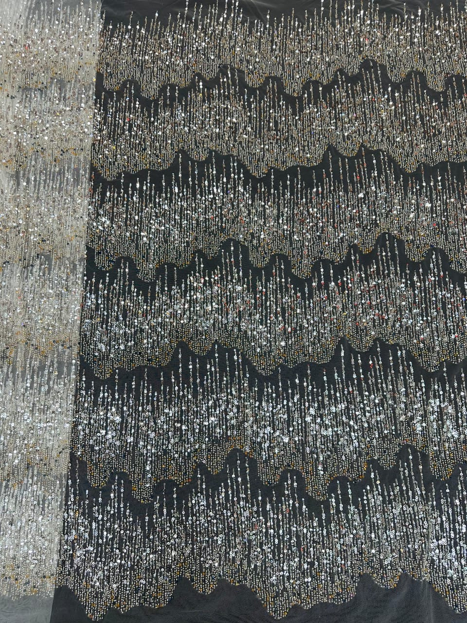 Esta tela de alta calidad está hecha con pedrería bordada a la moda y se puede usar para hacer vestidos de novia, faldas, chales, bufandas y otras prendas de moda que desee.