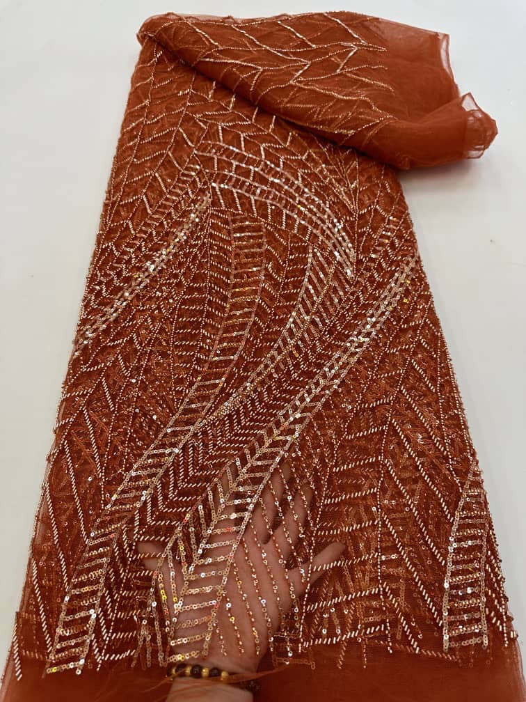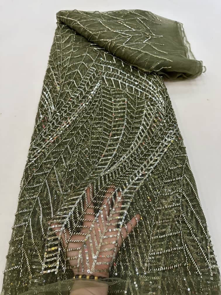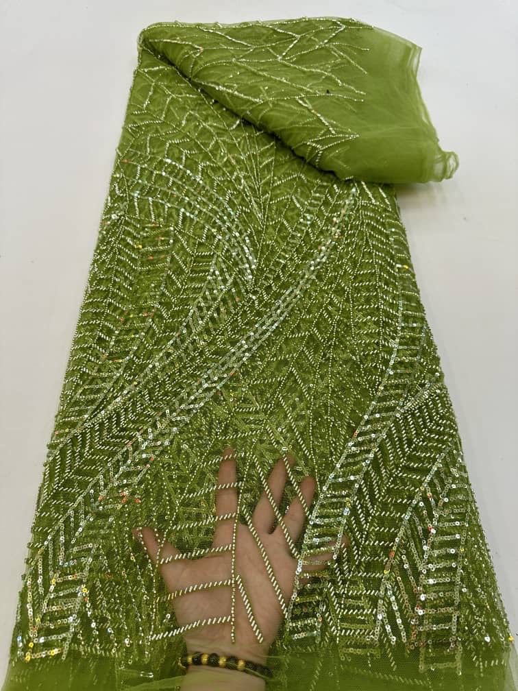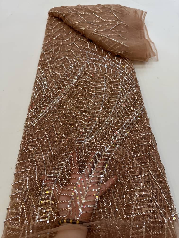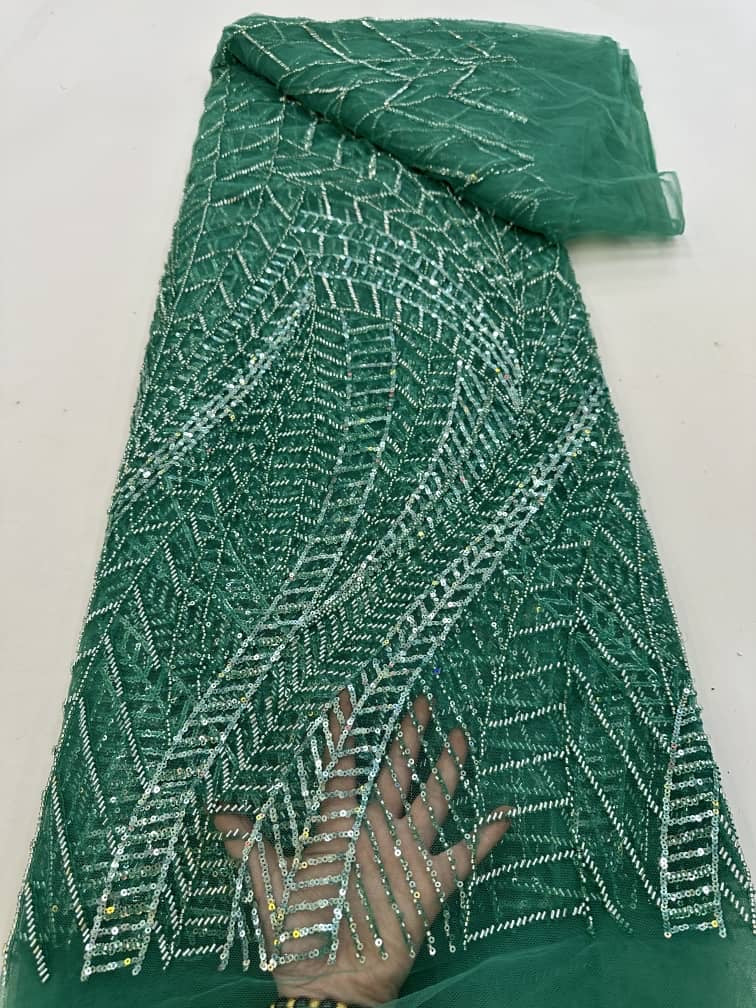 Esta tela de alta calidad se mide en 5 yardas con cuentas bordadas y lentejuelas. Es suave, muy delicado y bonito.