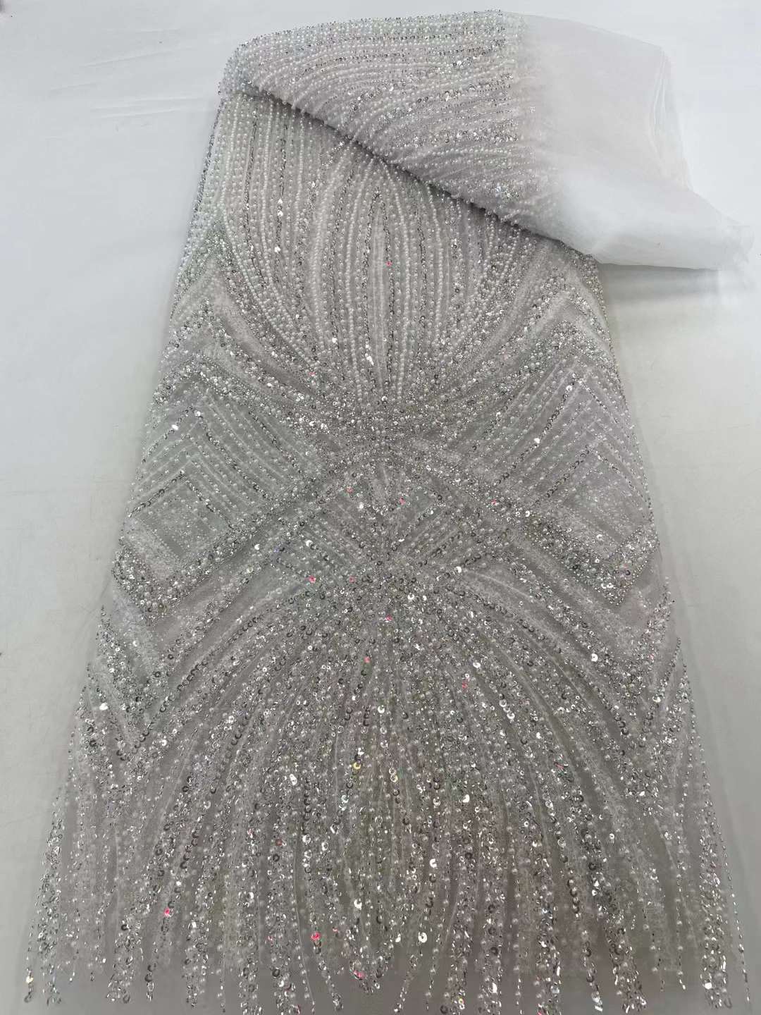 This high Quality Fabric is made with Fashion embroidered rhinestones can be used in making party wedding dresses, skirts, shawls, scarves and other other fashion apparels as you would like.