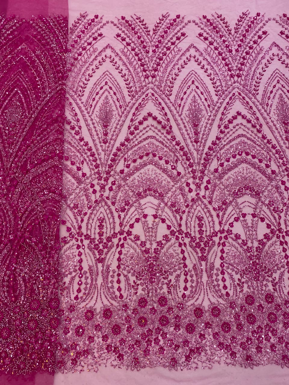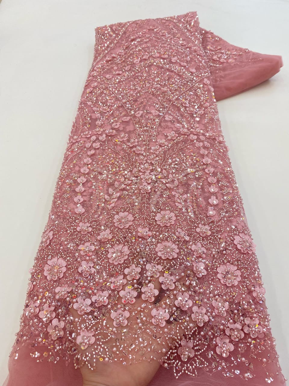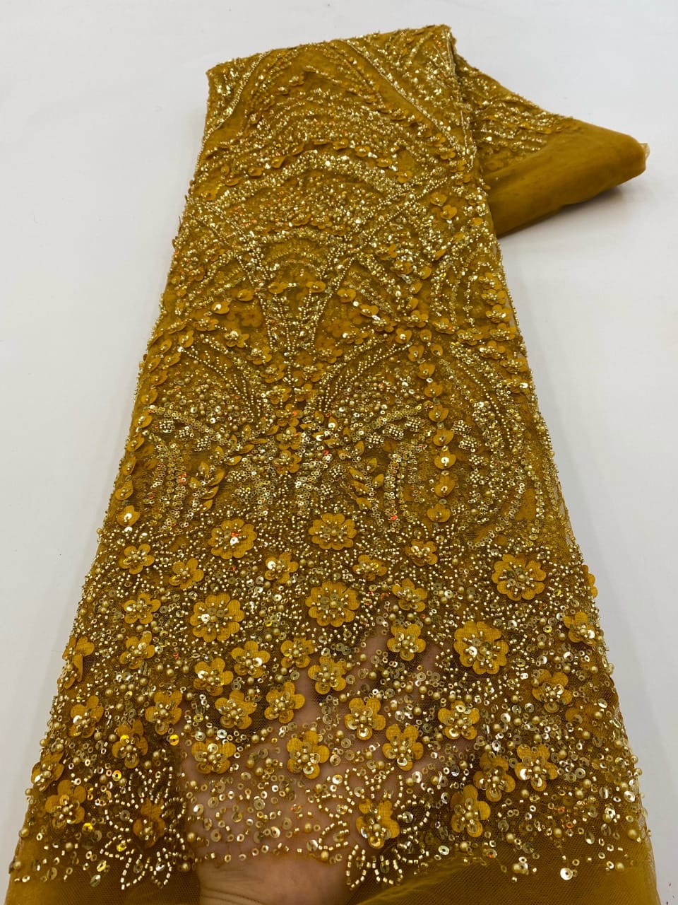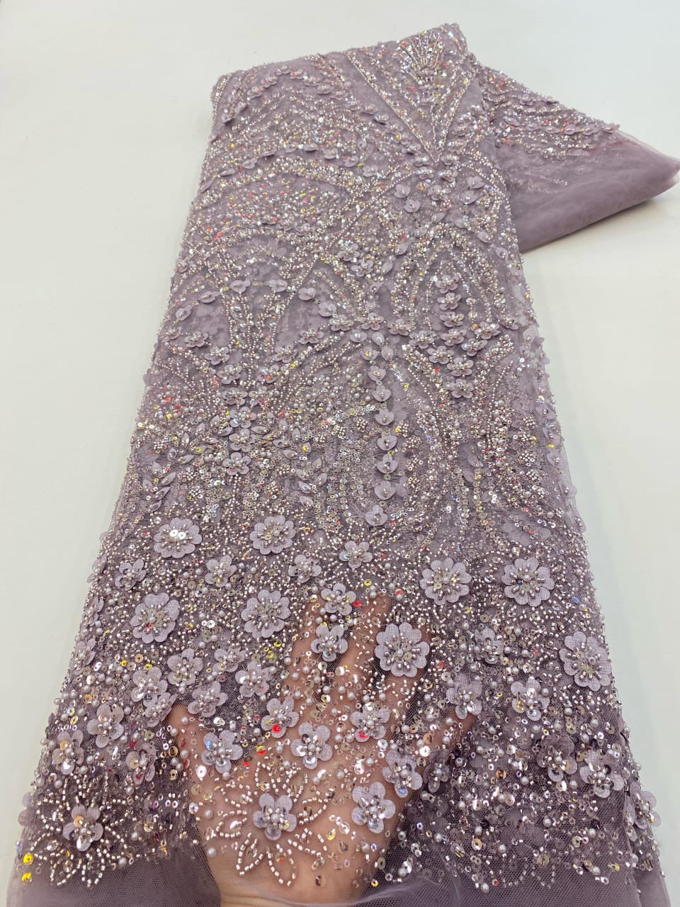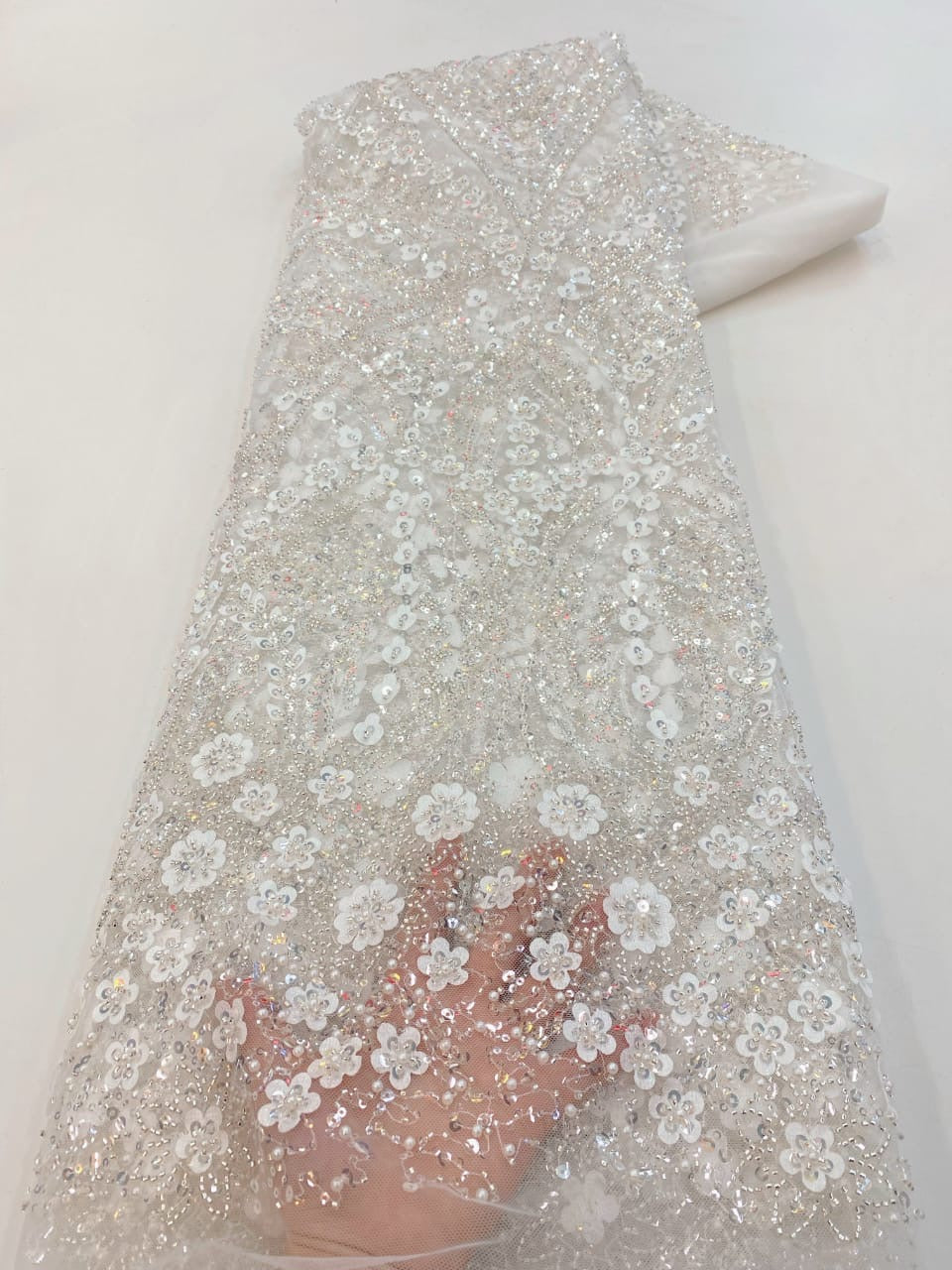Esta tela de alta calidad se mide en 5 yardas con cuentas bordadas y lentejuelas. Es suave, muy delicado y bonito.