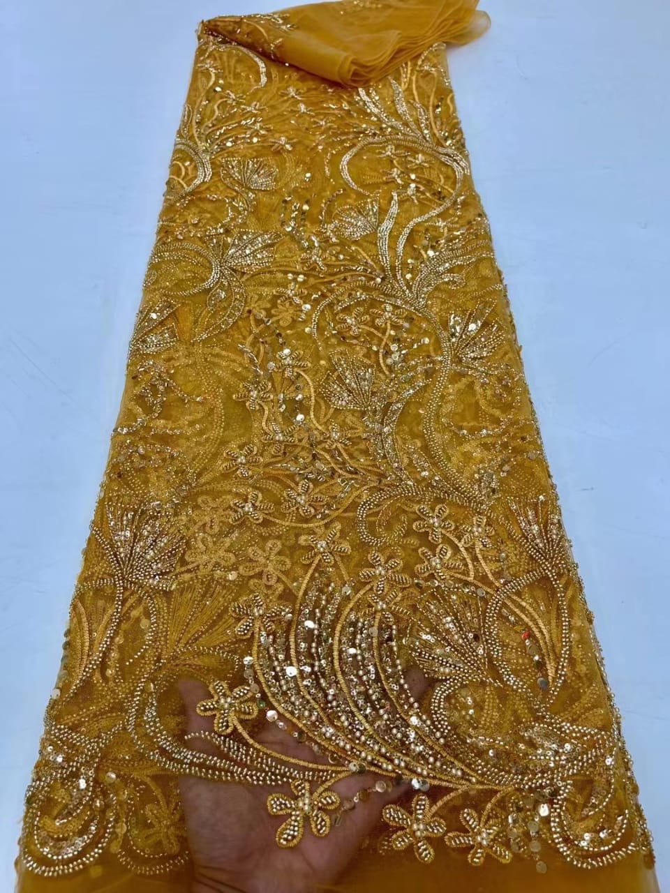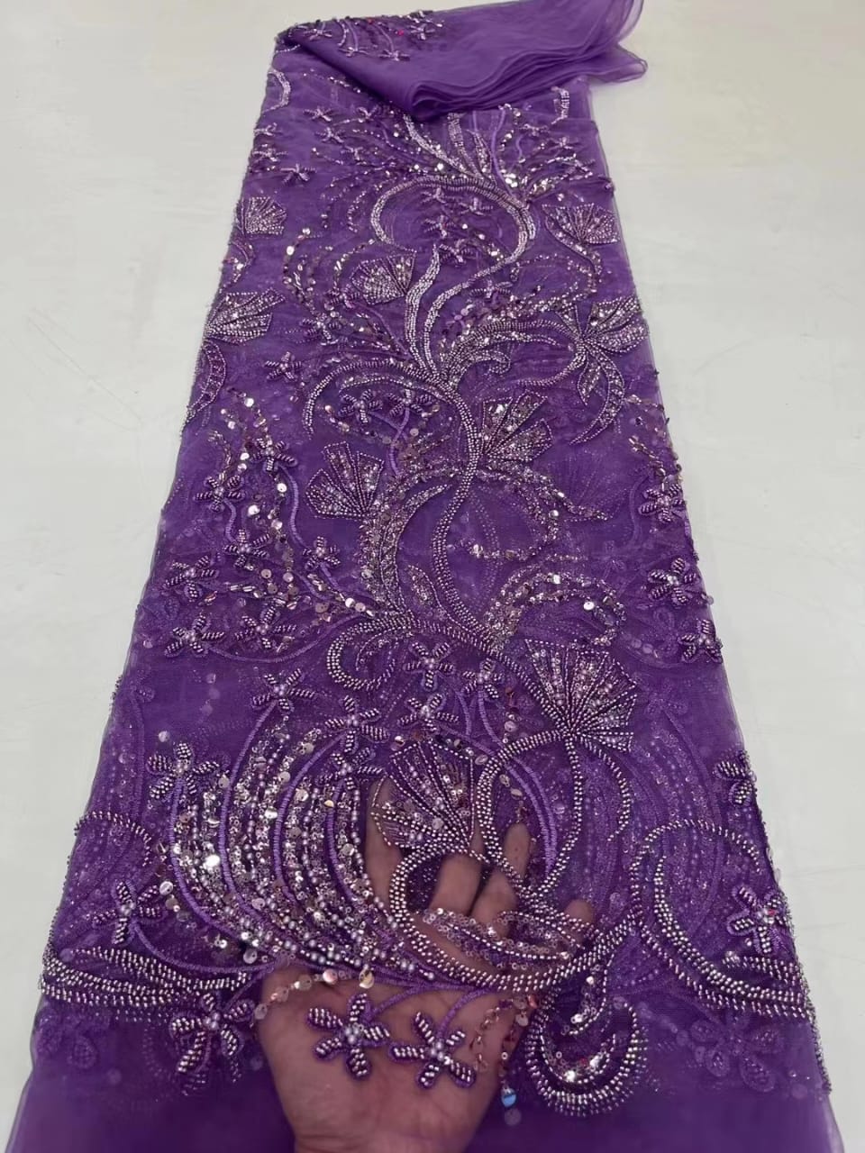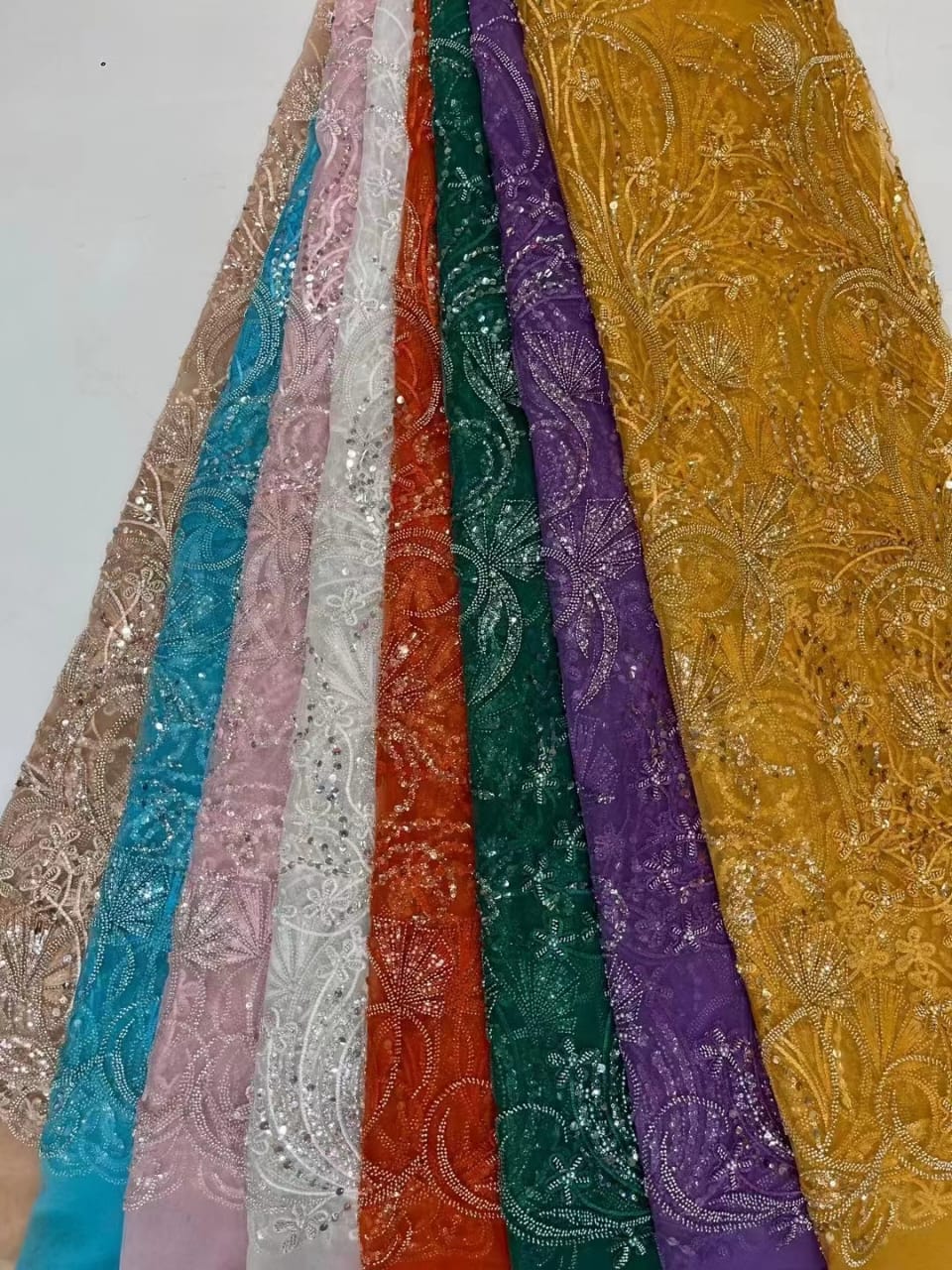 Esta tela de alta calidad se mide en 5 yardas con cuentas bordadas y lentejuelas. Es suave, muy delicado y bonito.