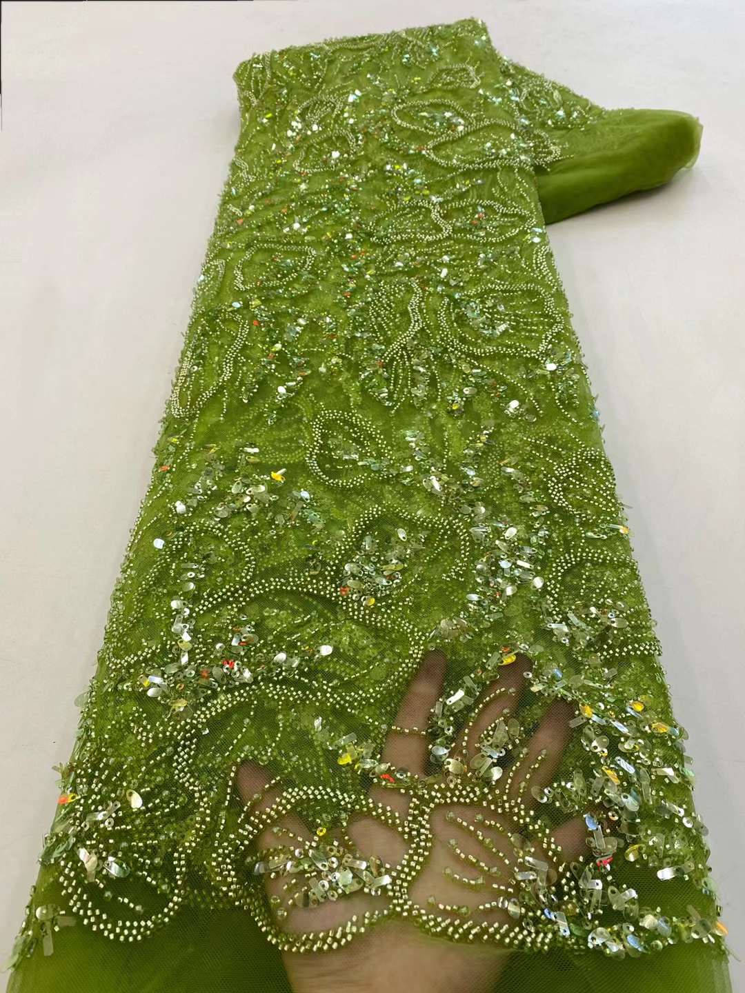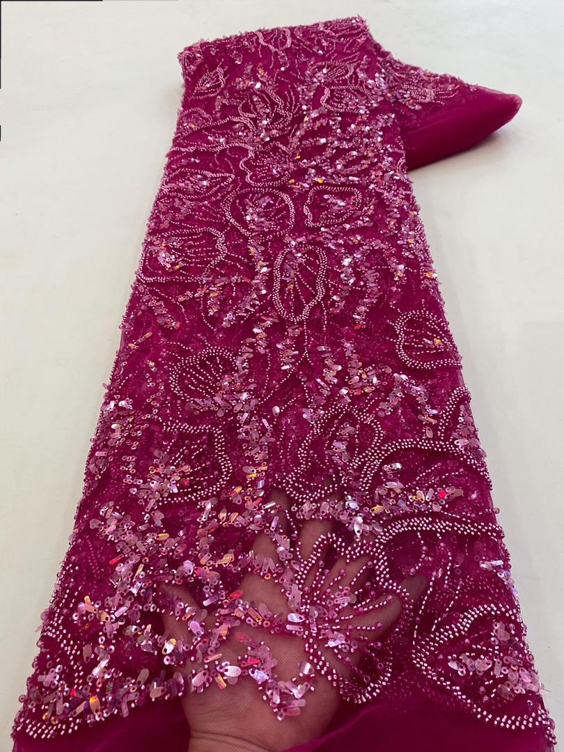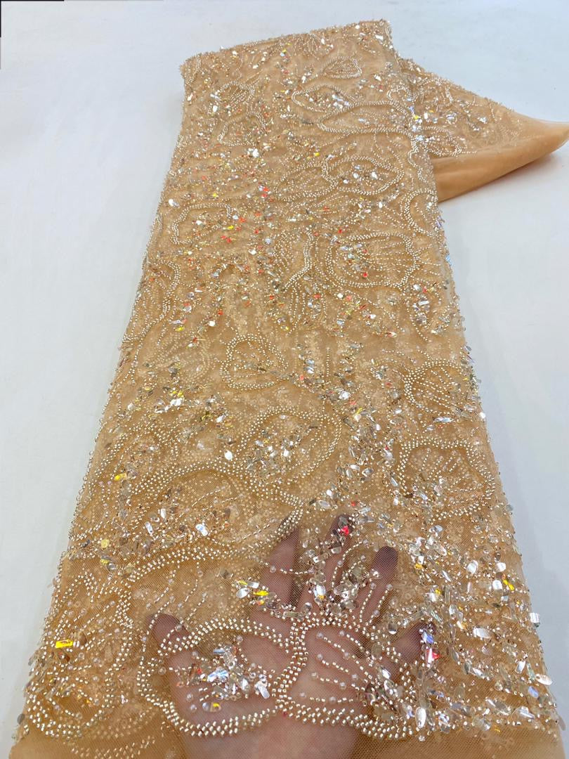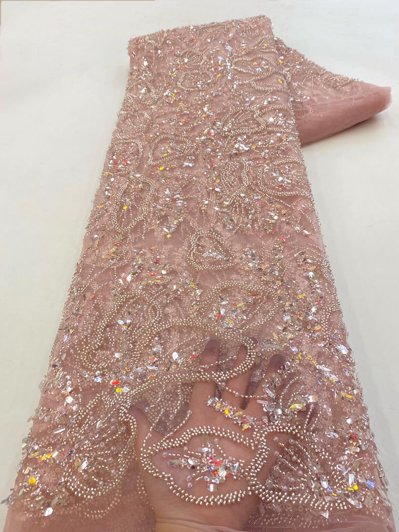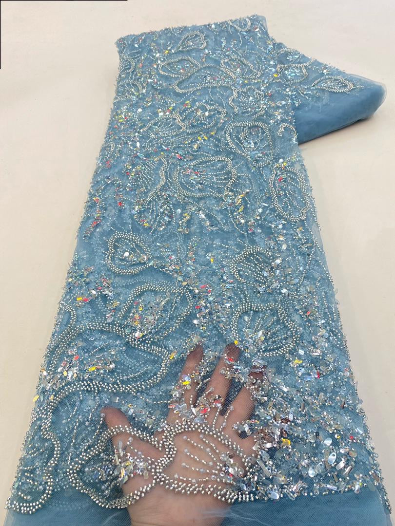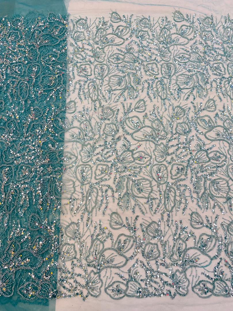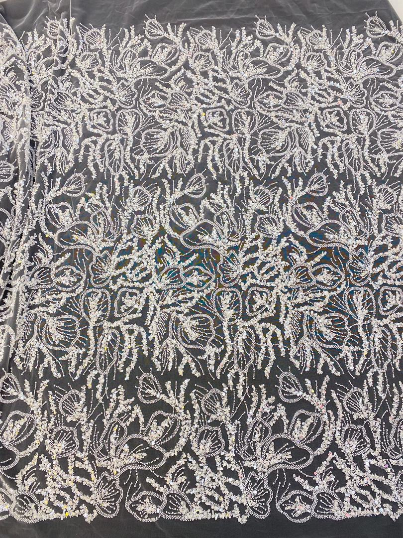Esta tela de alta calidad se mide en 5 yardas con cuentas bordadas y lentejuelas. Es suave, muy delicado y bonito.