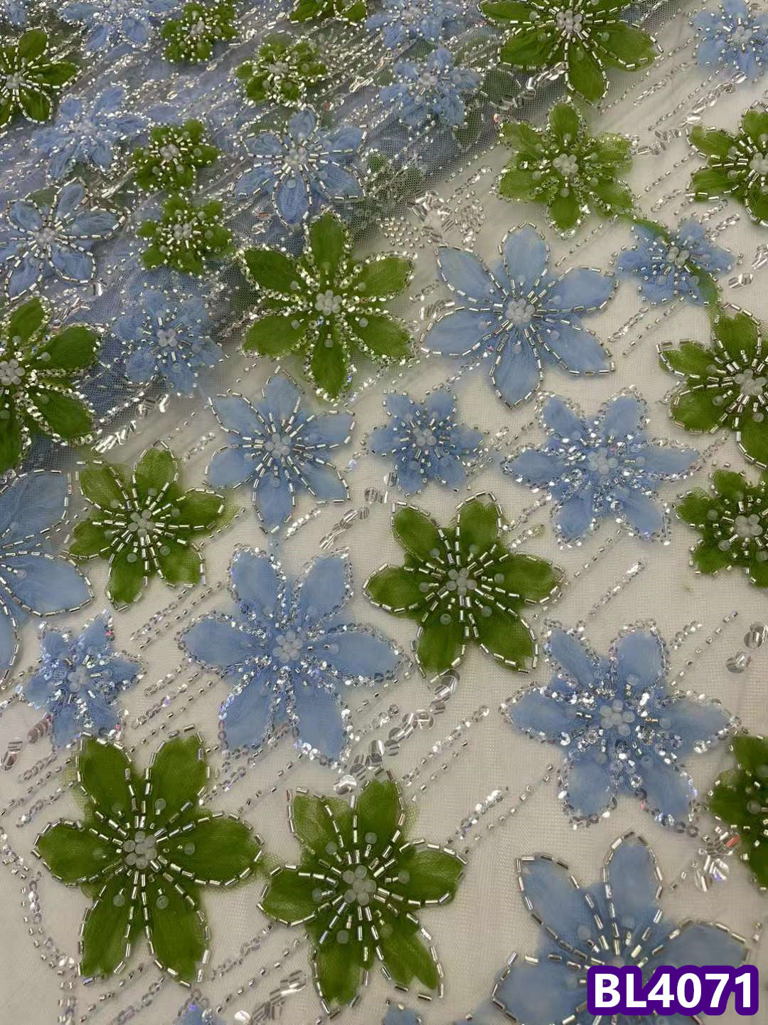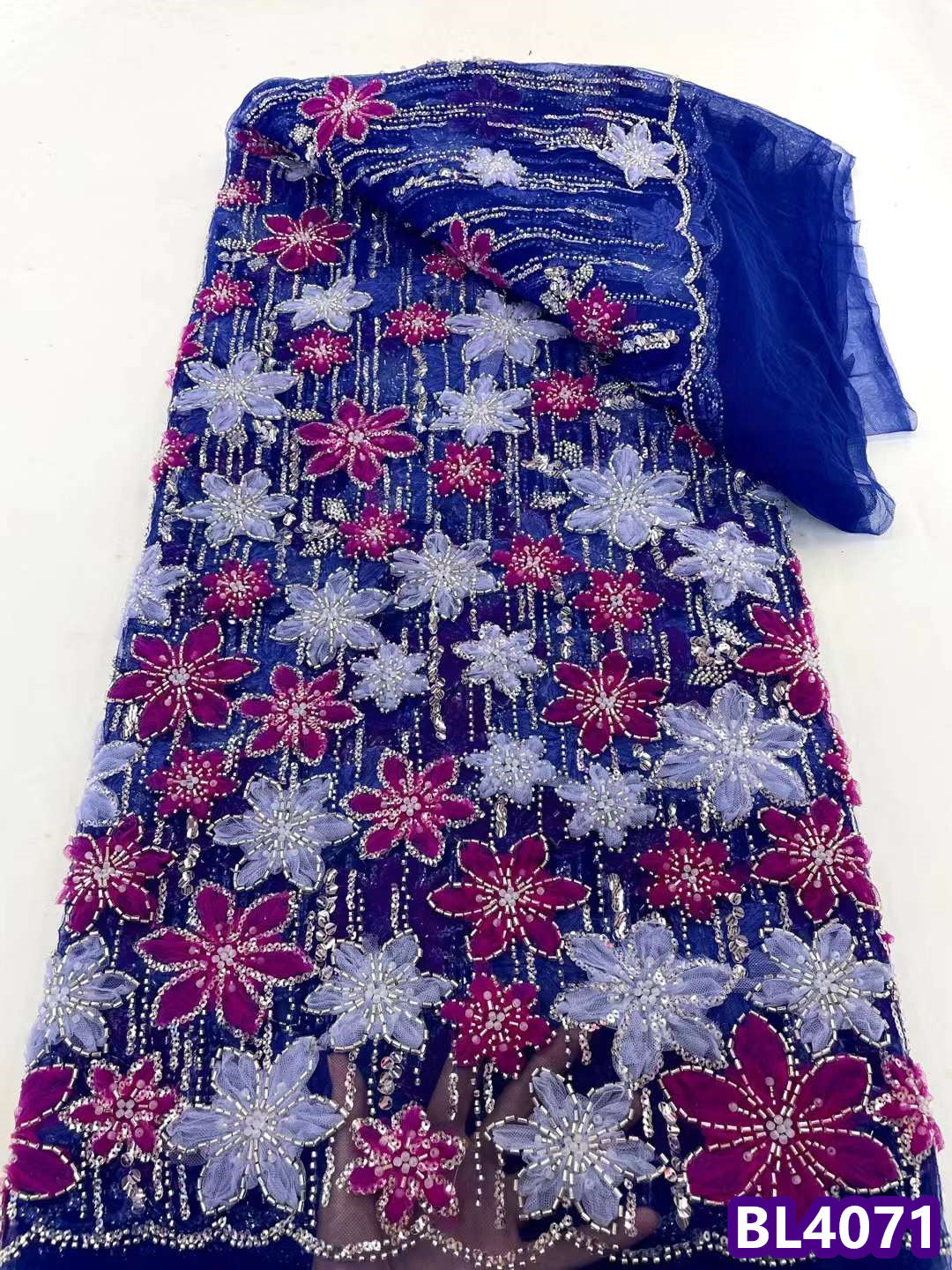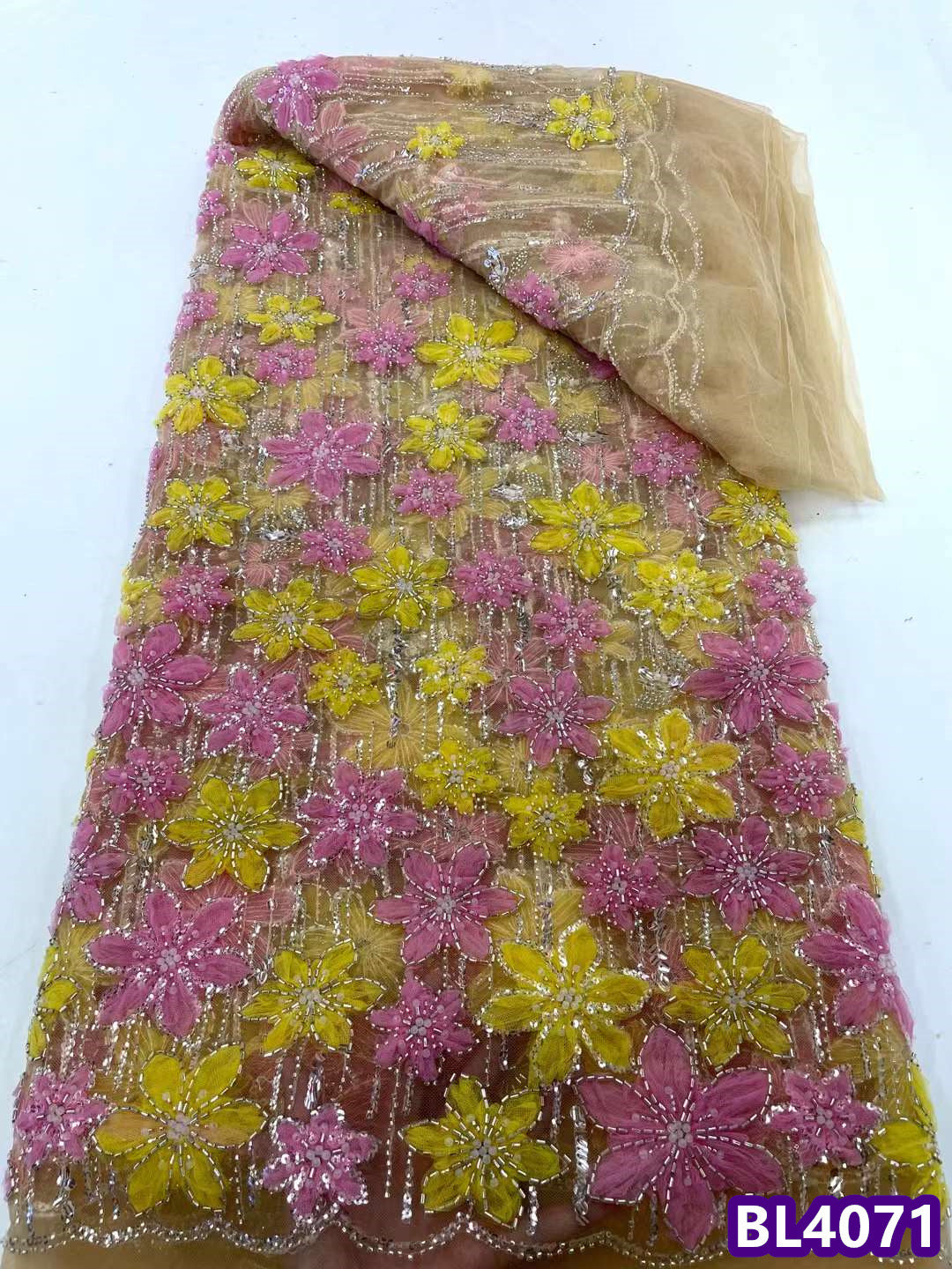 Esta tela de alta calidad se mide en 5 yardas con cuentas bordadas y lentejuelas. Es suave, muy delicado y bonito.
