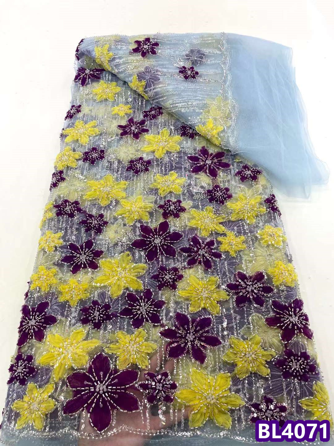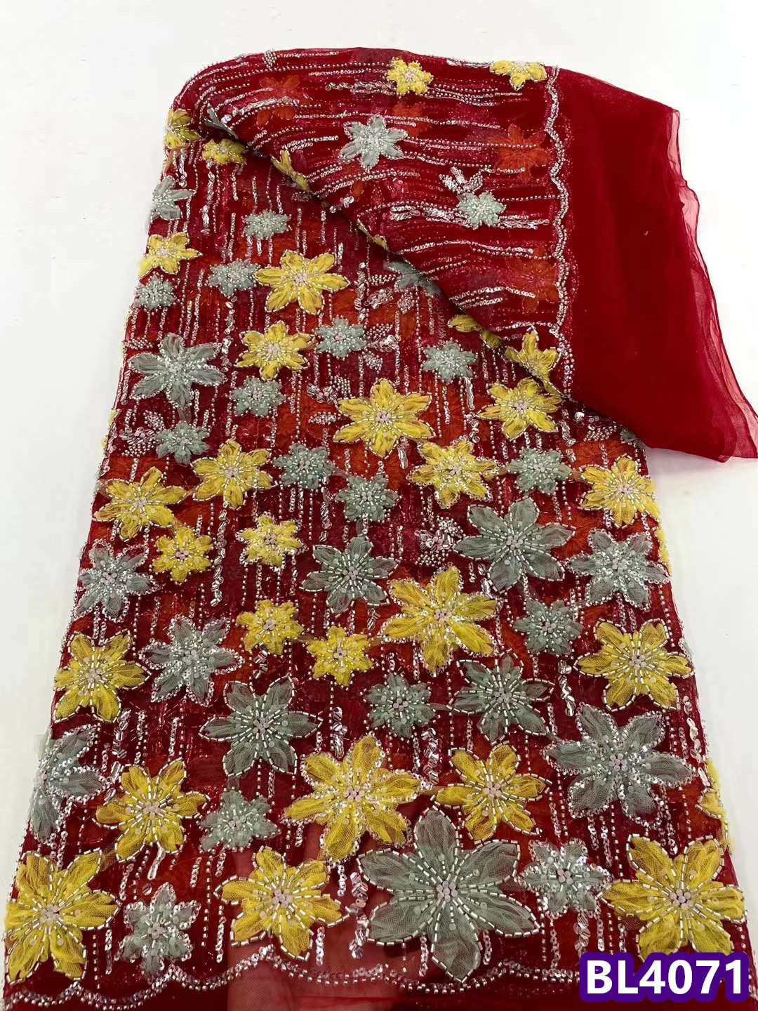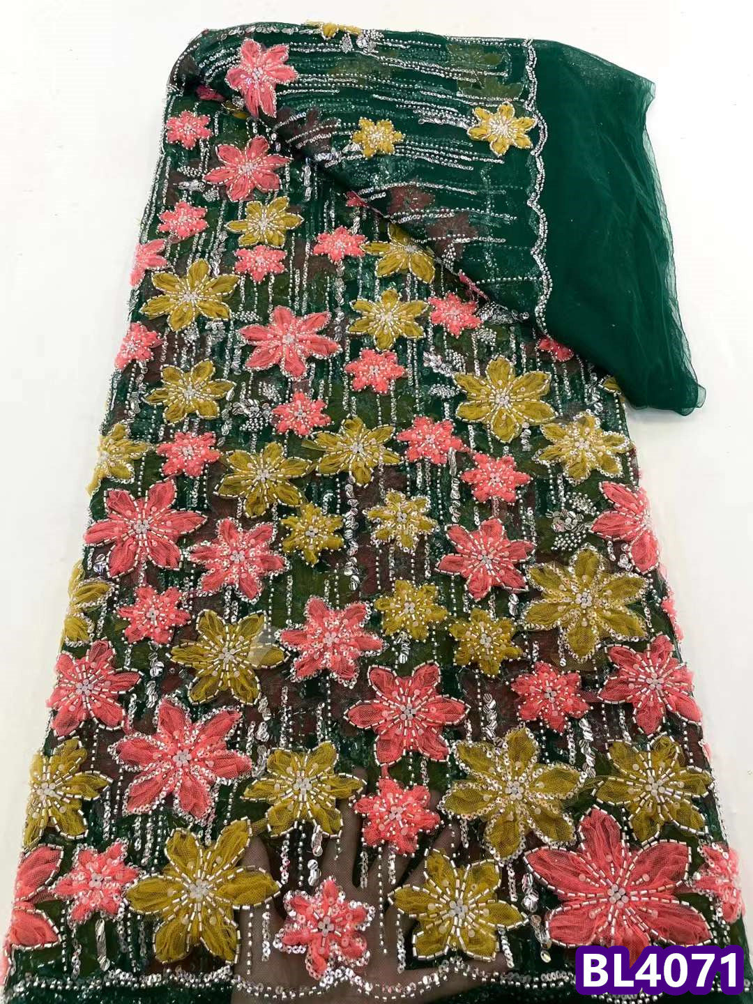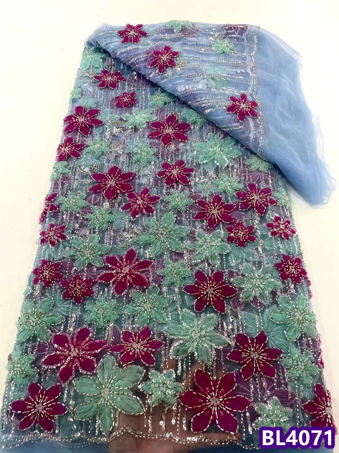 Esta tela de alta calidad se mide en 5 yardas con cuentas bordadas y lentejuelas. Es suave, muy delicado y bonito.