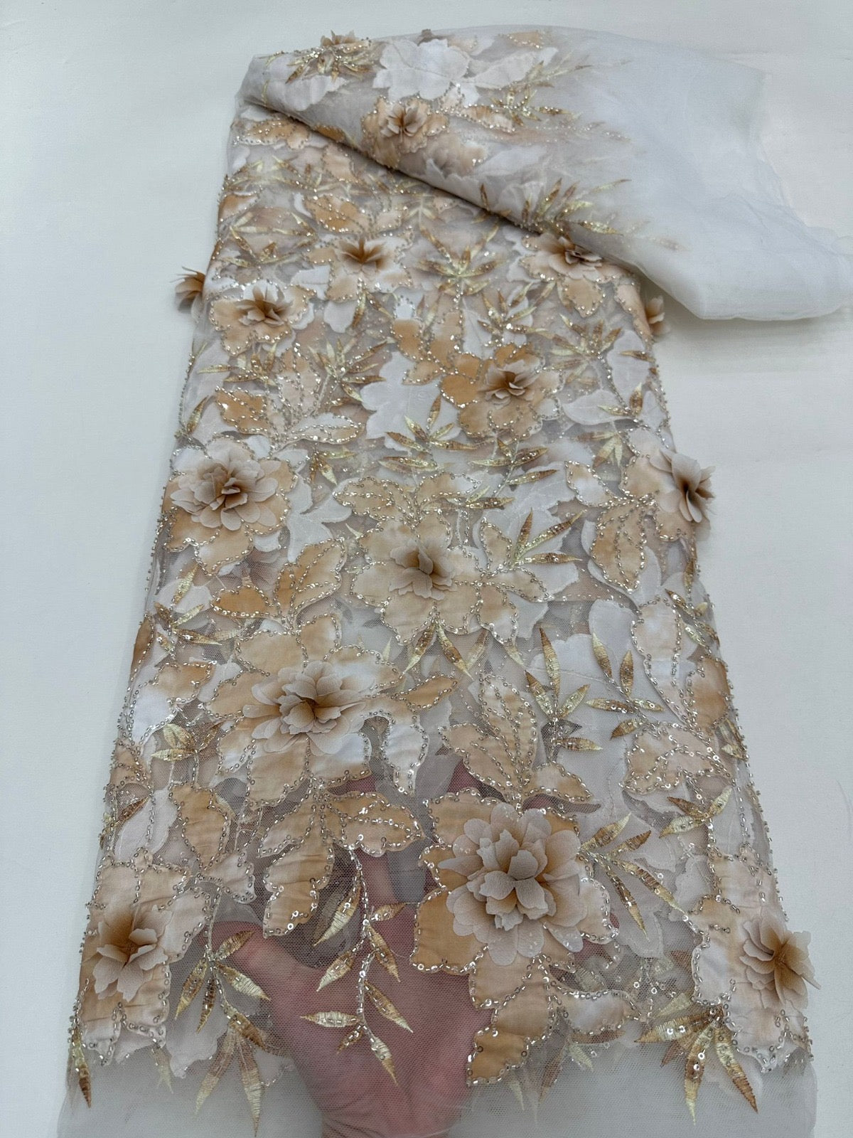 This high quality Fabric is measured in 5 Yards With Beading and Sequin. It is soft, very delicate and beautiful.